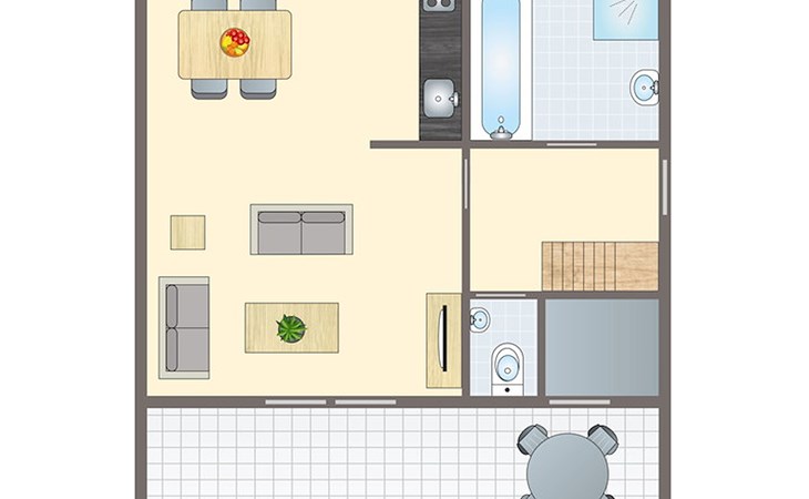 The accommodation could have a different layout and furnishings. The maps and images are indicative only.