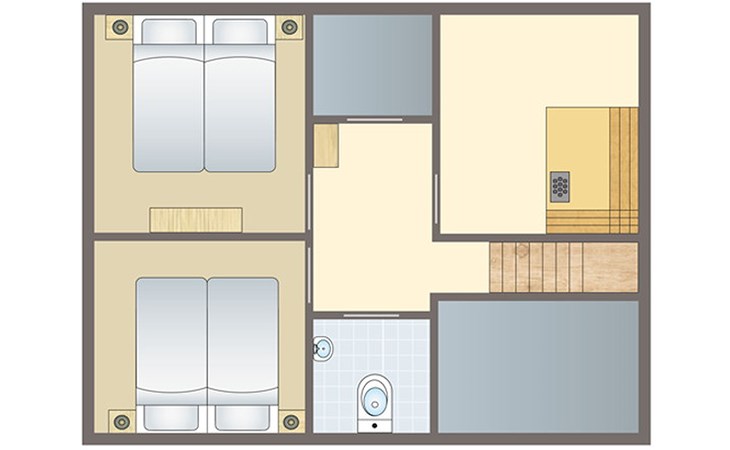 On the first floor are two bedrooms. One bedroom has a double bed and the other bedroom has two single beds. The beds are made upon arrival. There is also a separate toilet. Furthermore, the bungalow has a private infrared sauna for up to 2 persons.