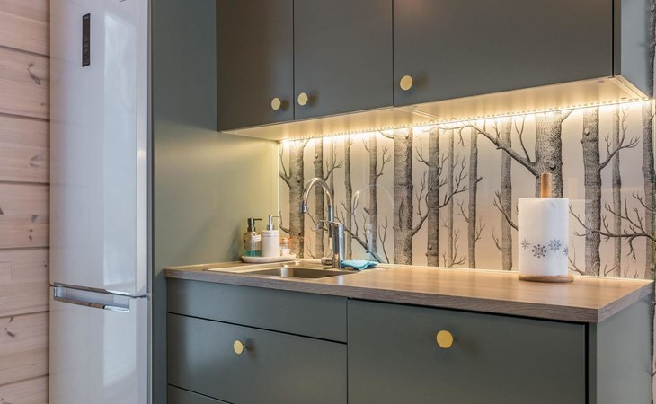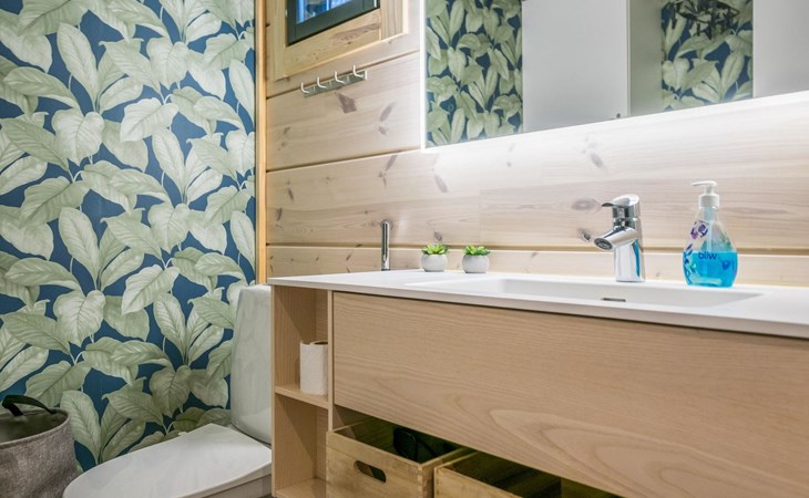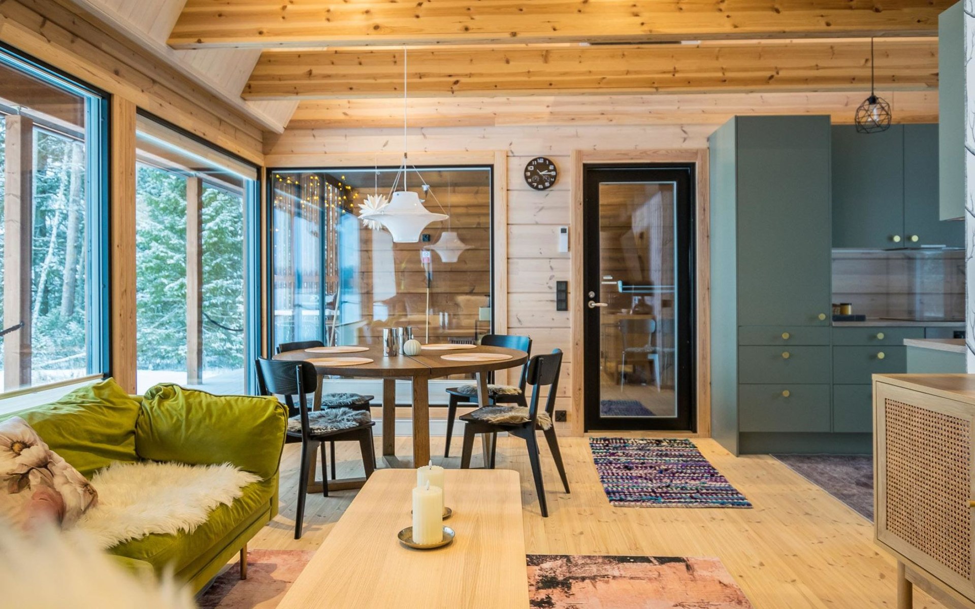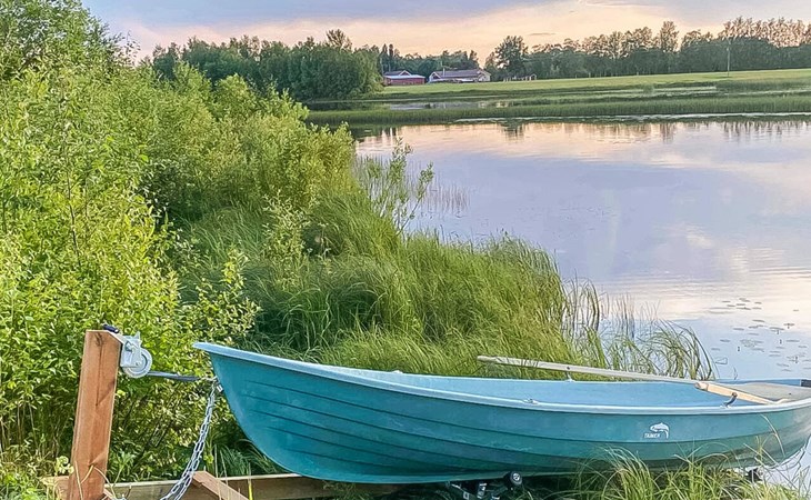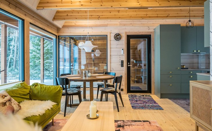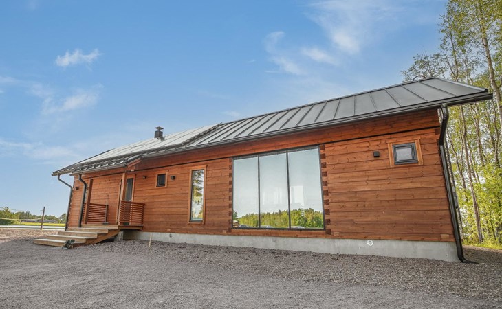 This log-constructed villa (2023) is equipped with modern comforts. The property features a shallow, soft sandy-bottomed shoreline, a private dock, and a rowing boat. In winter, guests can enjoy ice swimming right by the villa, with an ice hole pump keeping the opening clear throughout the season.