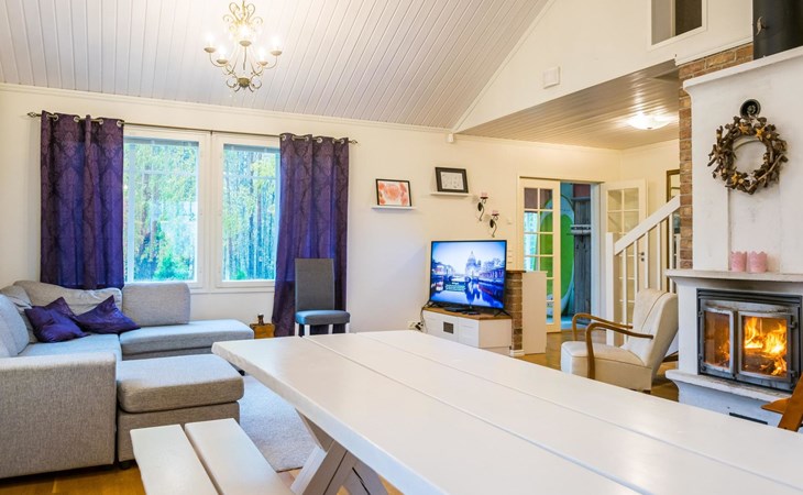 Located 10 km west of Kankaanpää, Lake Venesjärvi 550 m, featuring a public swimming beach and a private rowing boat. Tyttelsson is a spacious wooden villa (built in 2009) with an entrance hall, a large living room, and a combined kitchen/dining area. The kitchen is well-equipped with a long dining table that accommodates all guests for meals at once. The living room has a fireplace.