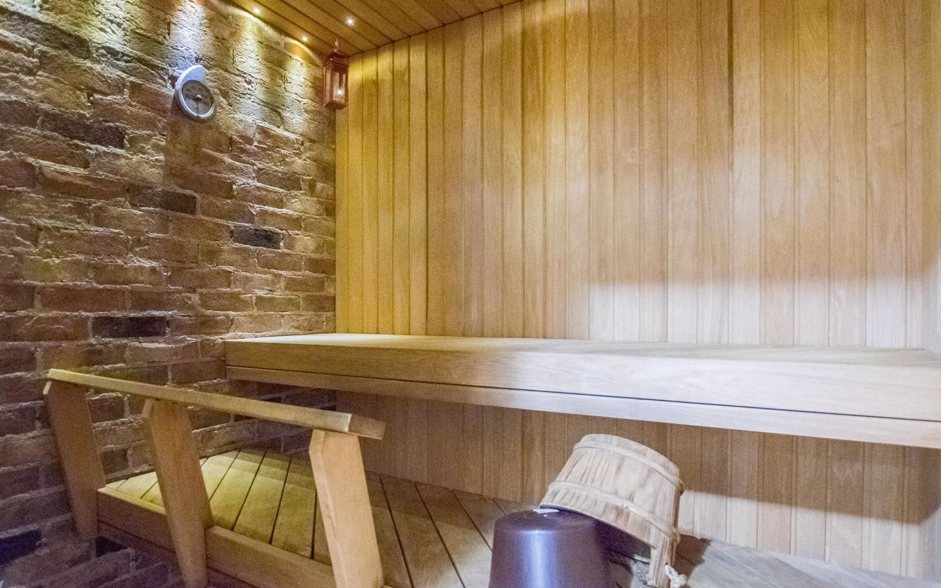 The villa includes a separate WC, a utility room with a washing machine, and a sauna (with an electric stove). The washroom features two showers.