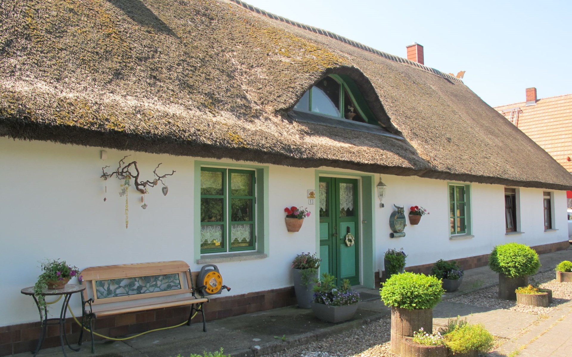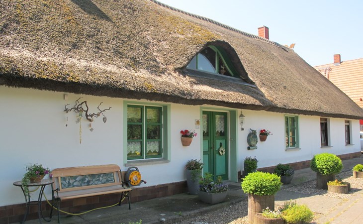 Beautiful, historical farmhouse. In the resort Katzow, 8 km from the centre of Wolgast, 15 km from the centre of Lubmin, 15 km from the sea, in the countryside. For shared use: property 1'200 m2 (fenced), well-kept garden with lawn and trees. Storeroom available. Shop 8 km, supermarket 8 km, restaurant 8 km, bus stop "Hohendorf" 5 km, railway station "Wolgast" 8 km, sandy beach 15 km, indoor swimming pool 25 km. Please note: the owner lives in the same residence.