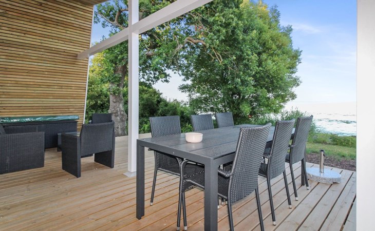 Single-family house, built in 2018. 10 m from the sea. Private: property 320 m2, well-kept garden. Terrace (50 m2), parking at the house. Grocery 1.5 km. The owner does not accept any youth groups.
