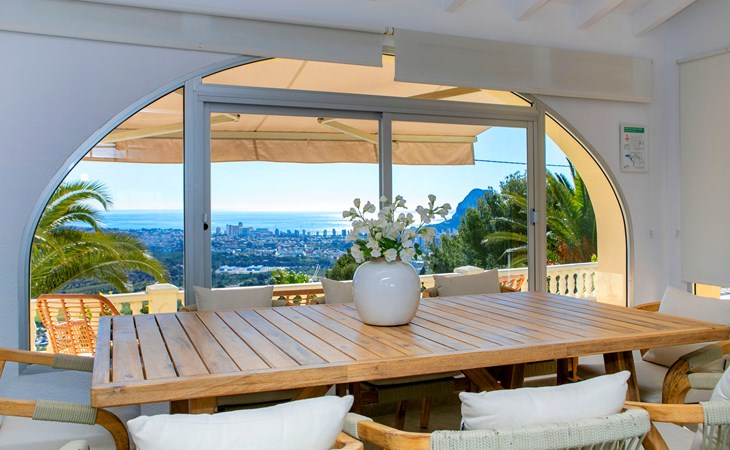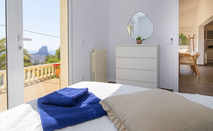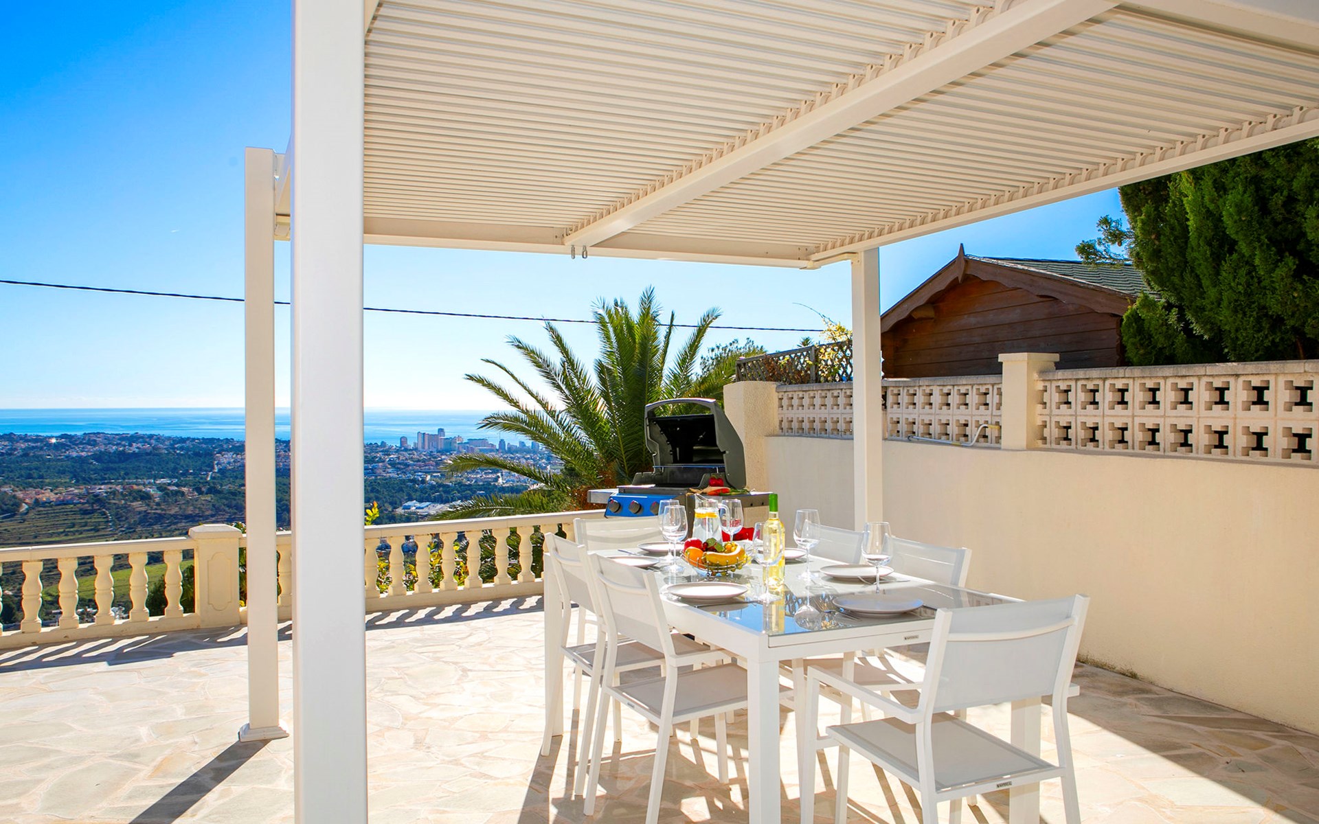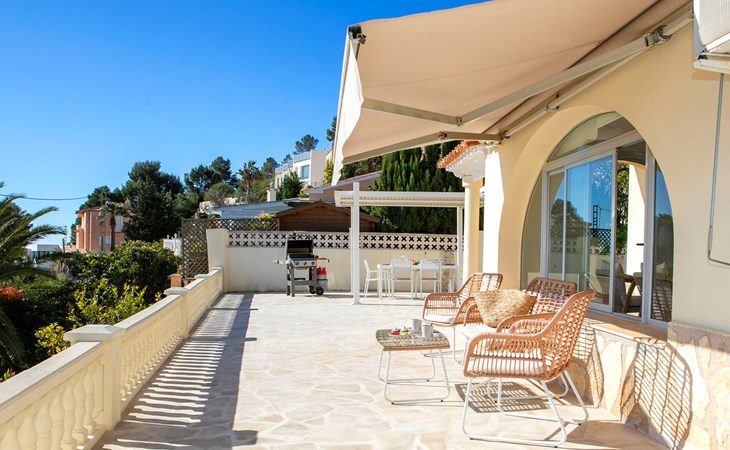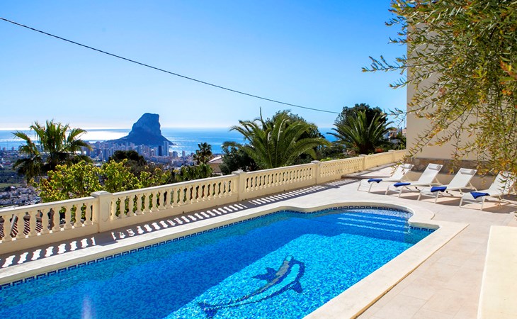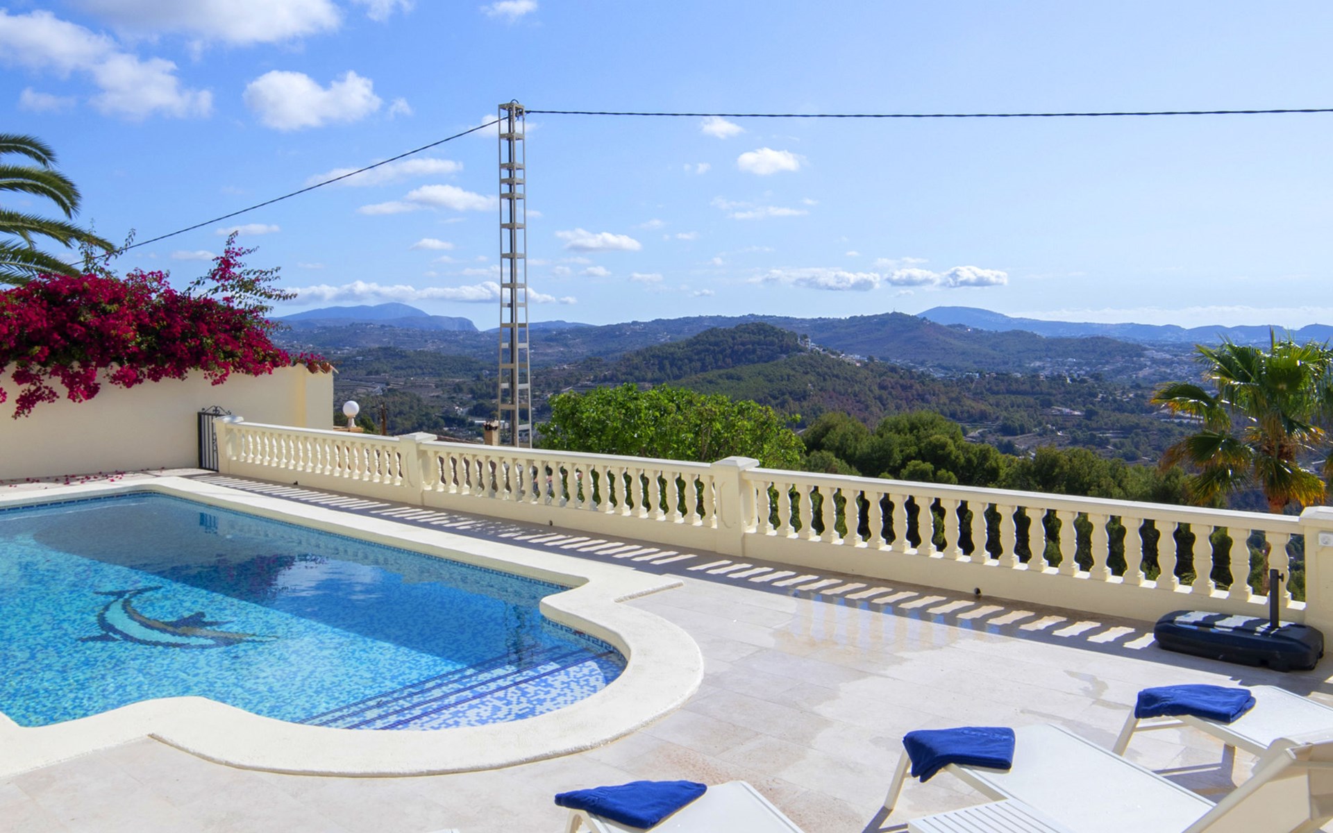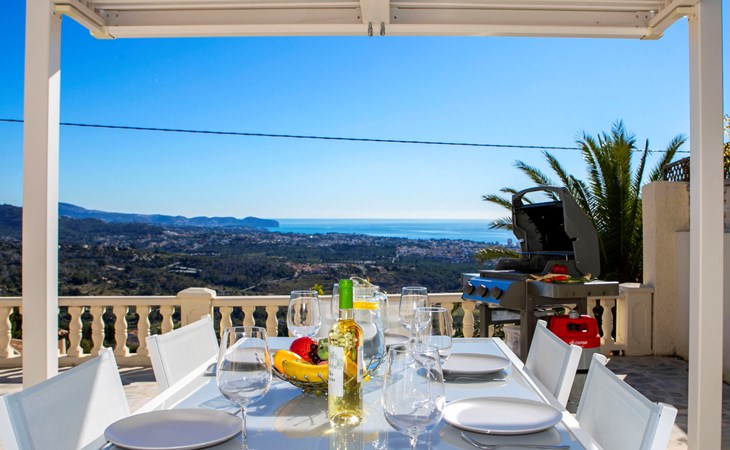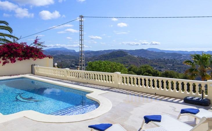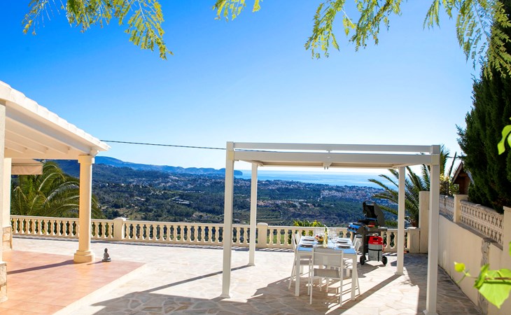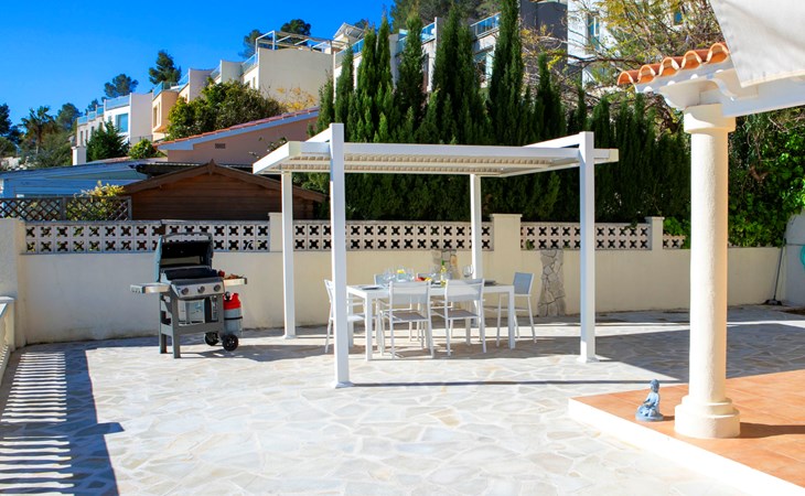 Oltamar: Beautiful villa "Tequila", 2 storeys. 4 km from the centre of Calpe, in a quiet, sunny, elevated position residential area (villas), traffic calmed area, 4 km from the sea, 4 km from the beach, in a cul-de-sac. Private: property 780 m2 (fenced), garden, swimming pool (8 x 4 m, depth 80 - 200 cm, seasonal availability: 01.Jan. - 31.Dec.) with internal staircase. Outdoor shower, terrace, barbecue. Grocery 3 km, supermarket 3 km, restaurant 3 km, bus stop "Parada Bus" 1.8 km, railway station "Estacion Tren Calp" 1.8 km, sandy beach "Playa Arenal" 4 km. Nearby attractions: Aqualandia, Mundomar, Terra MÃtica, Terra Natura, Benidorm Palace (Benidorm), Les Fonts de l'Algar, Castillo de Guadalest. The owner does not accept any youth groups.