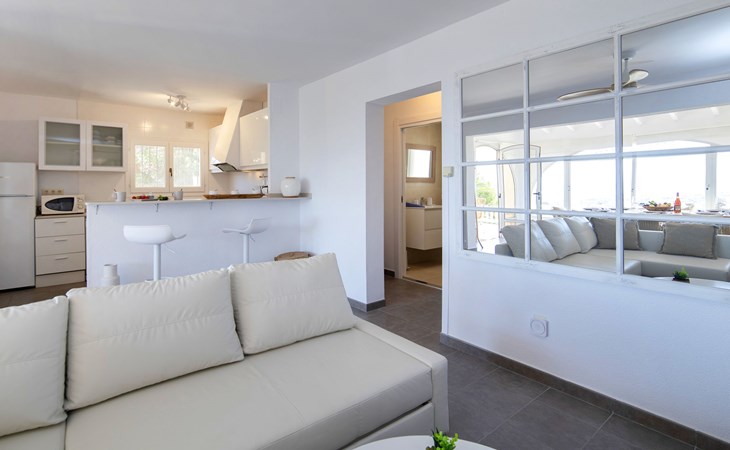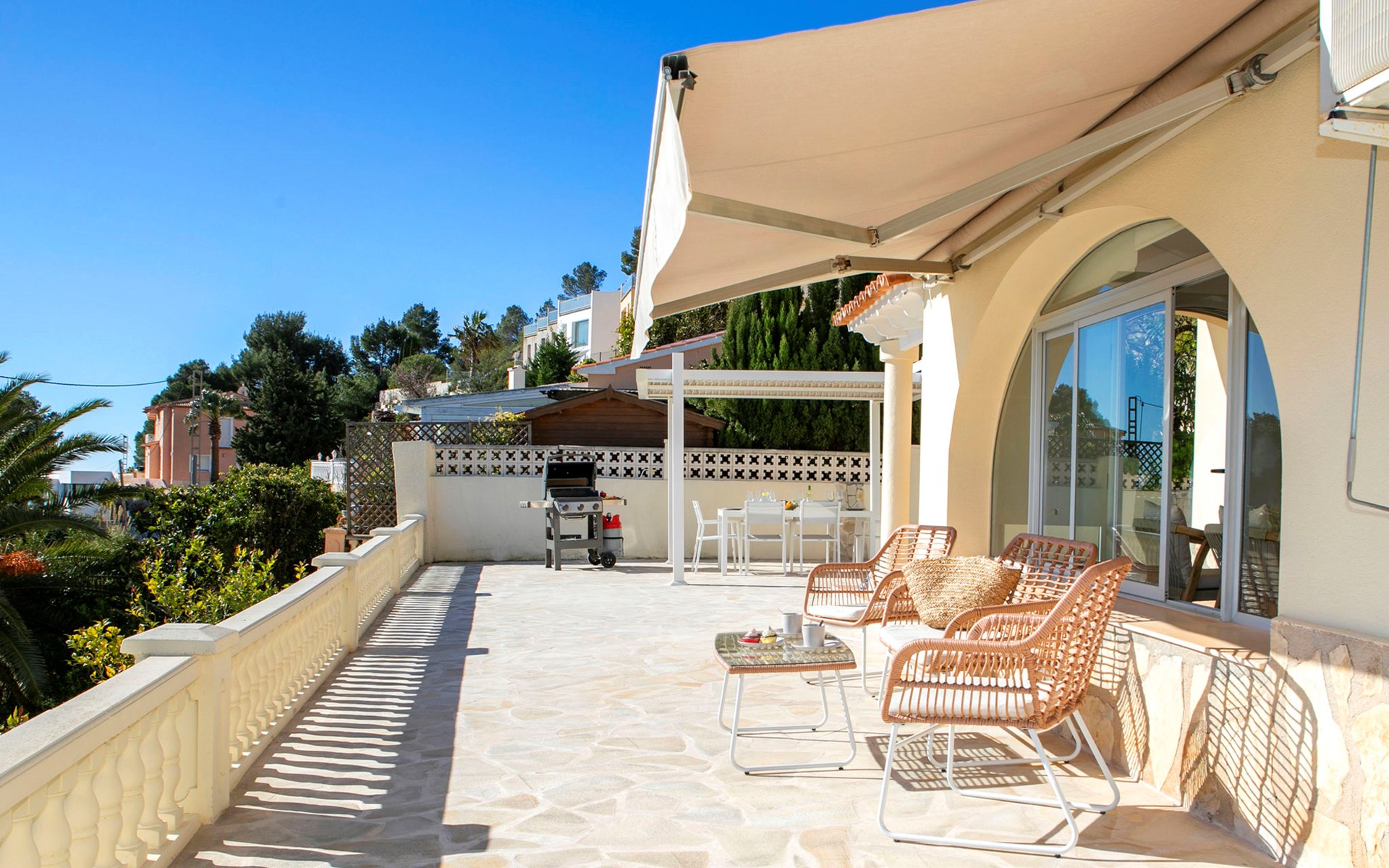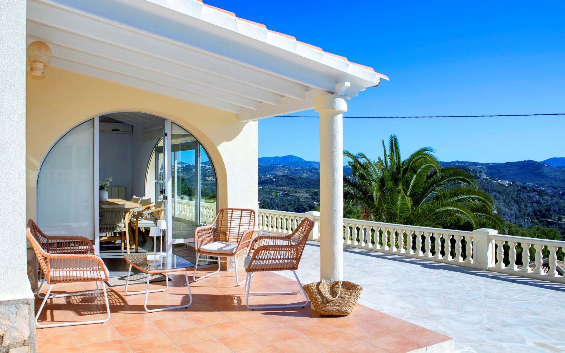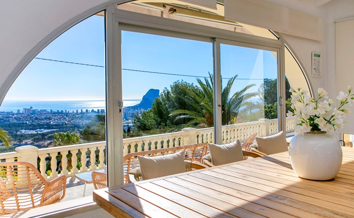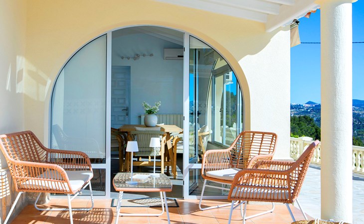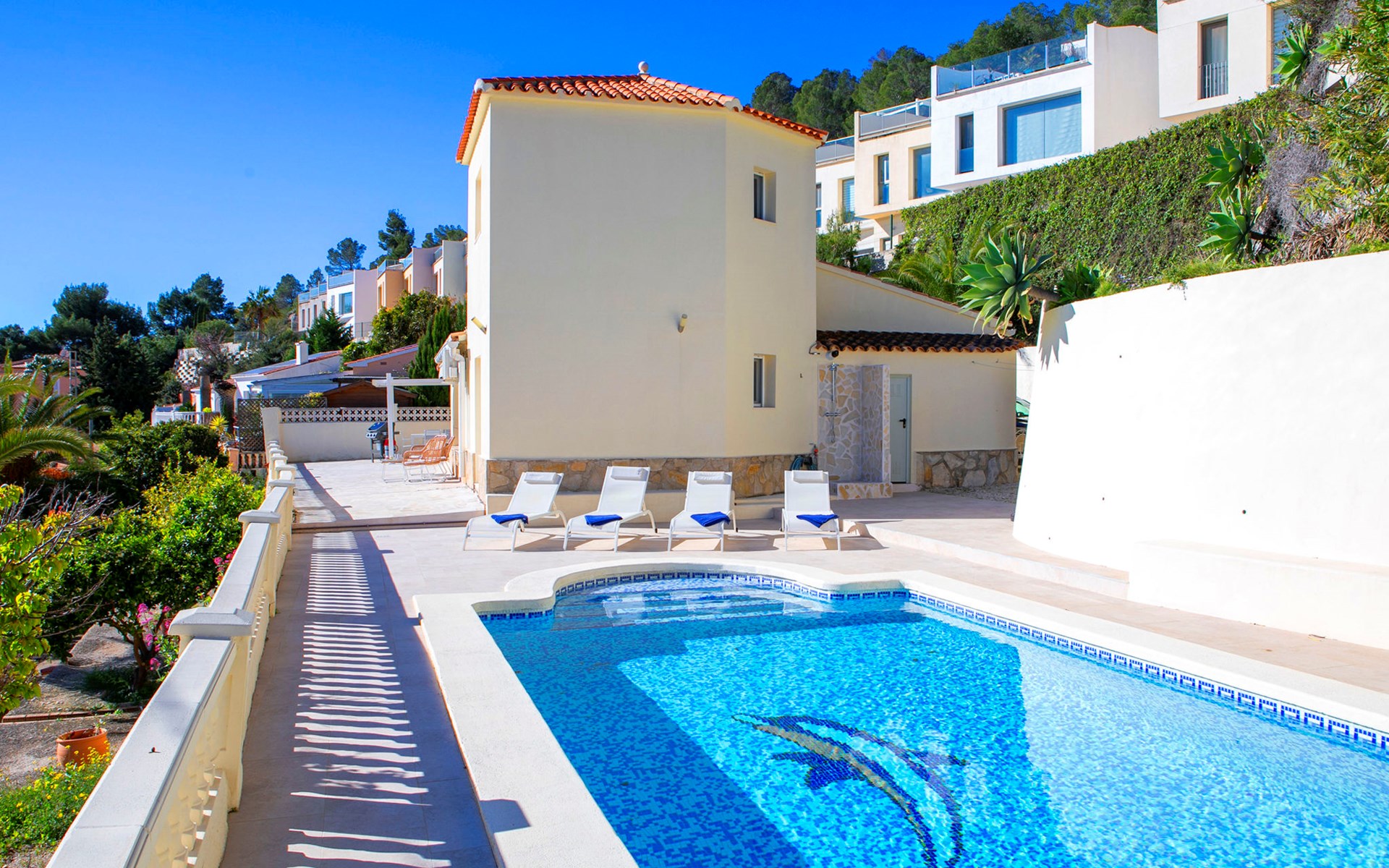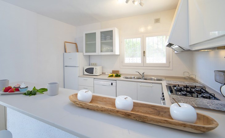 Oltamar: Beautiful villa "Tequila", 2 storeys. 4 km from the centre of Calpe, in a quiet, sunny, elevated position residential area (villas), traffic calmed area, 4 km from the sea, 4 km from the beach, in a cul-de-sac. Private: property 780 m2 (fenced), garden, swimming pool (8 x 4 m, depth 80 - 200 cm, seasonal availability: 01.Jan. - 31.Dec.) with internal staircase. Outdoor shower, terrace, barbecue. Grocery 3 km, supermarket 3 km, restaurant 3 km, bus stop "Parada Bus" 1.8 km, railway station "Estacion Tren Calp" 1.8 km, sandy beach "Playa Arenal" 4 km. Nearby attractions: Aqualandia, Mundomar, Terra MÃtica, Terra Natura, Benidorm Palace (Benidorm), Les Fonts de l'Algar, Castillo de Guadalest. The owner does not accept any youth groups.