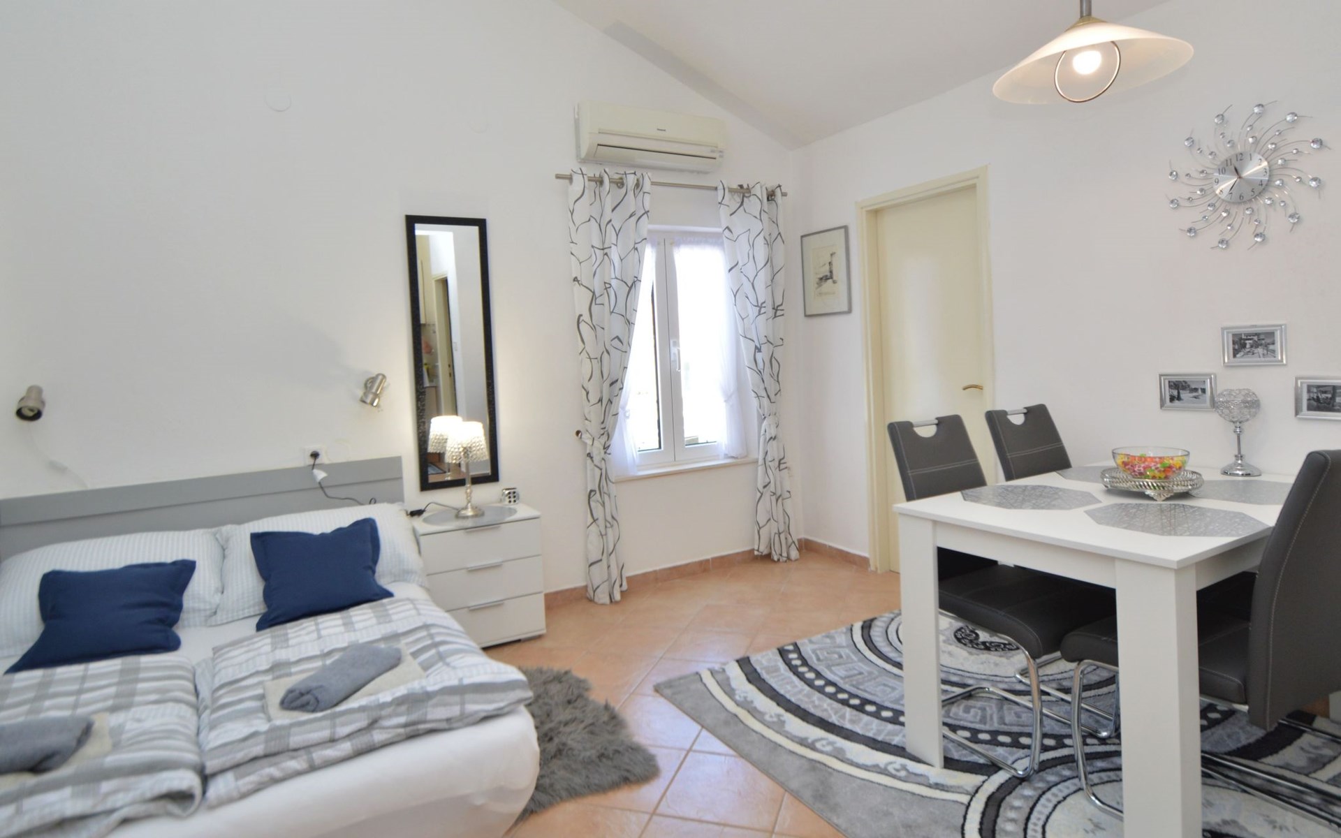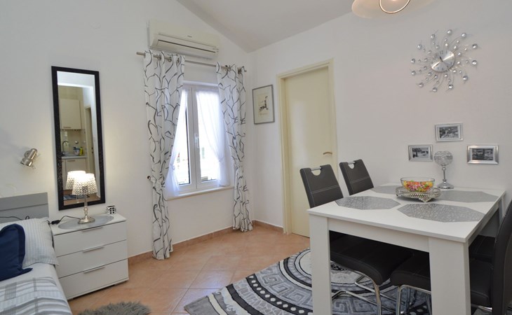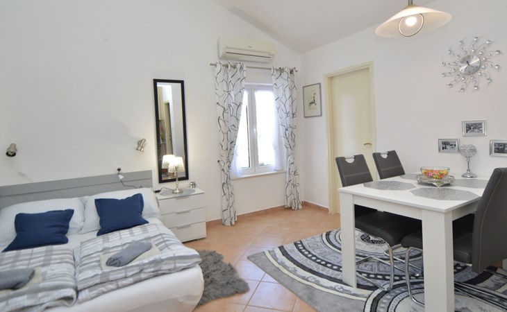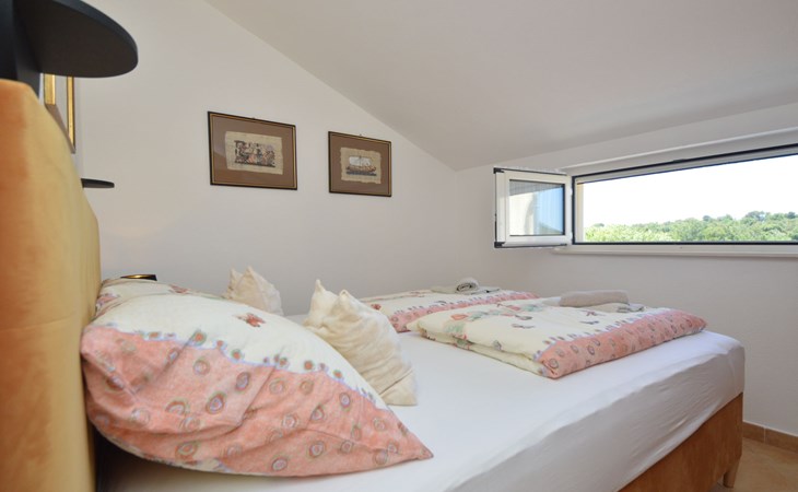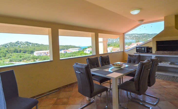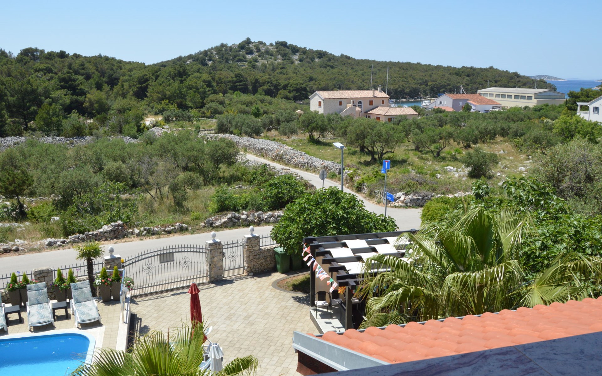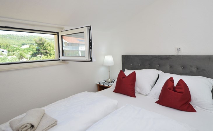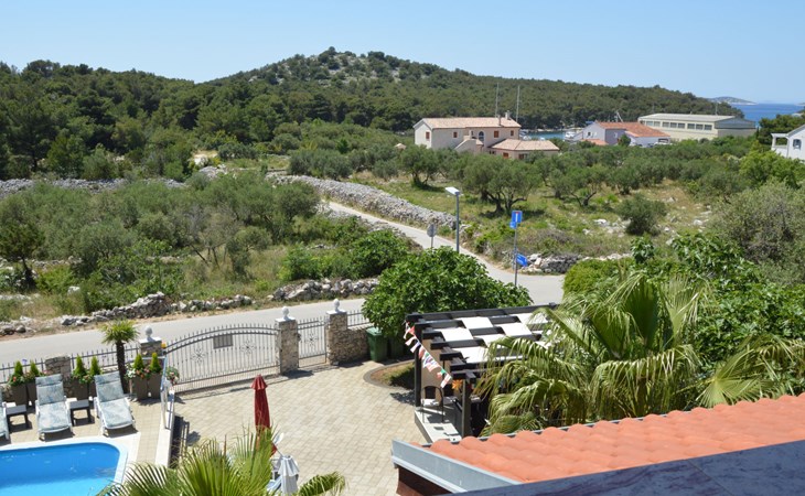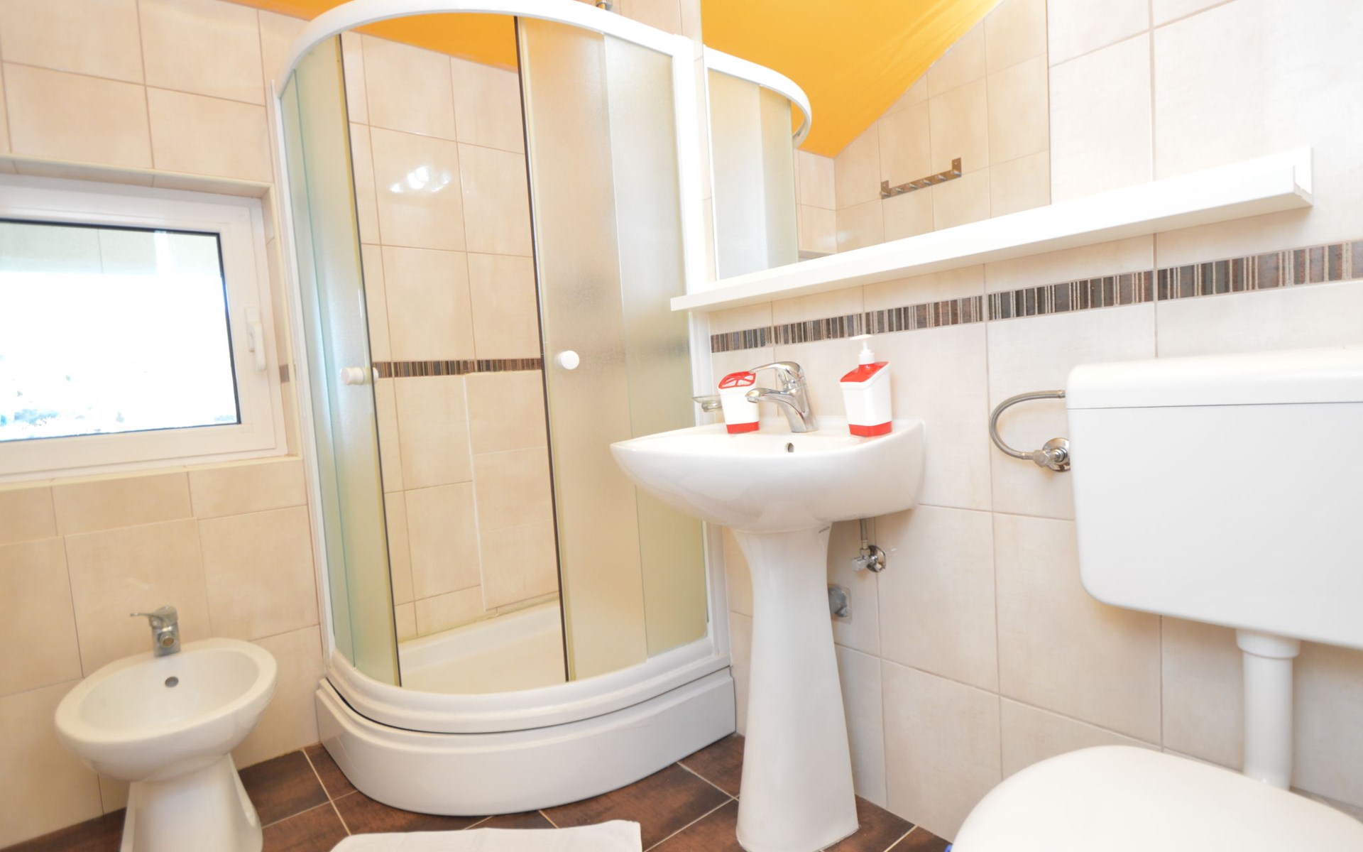 Tribunj 3 km from Vodice: Beautiful apartment house "Friedrich". In the hamlet Sovlje 1.5 km from the centre of Tribunj, in a quiet, sunny position, 250 m from the sea, 300 m from the beach. For shared use: well-kept garden (fenced), swimming pool (24 m2, depth 150 cm, seasonal availability: 01.May. - 22.Oct.) with internal staircase. Outdoor shower, arbour, garden furniture, children's playground. In the house: internet access, washing machine (for shared use, extra). Parking at the house. Shop 1.3 km, restaurant 350 m, bus stop 5.4 km, pebble beach 400 m, rocky beach 300 m, concrete beach 400 m. For shared use: deck chairs and parasols. Parking for trailer available.