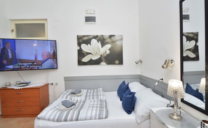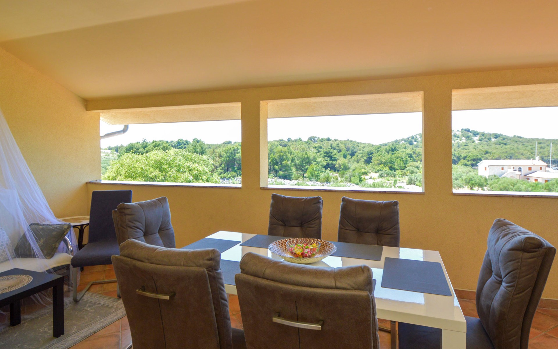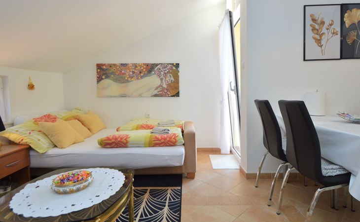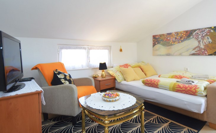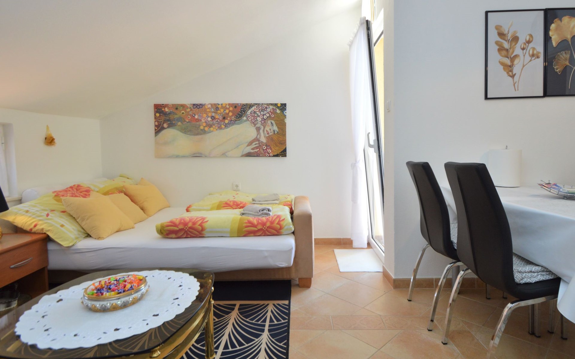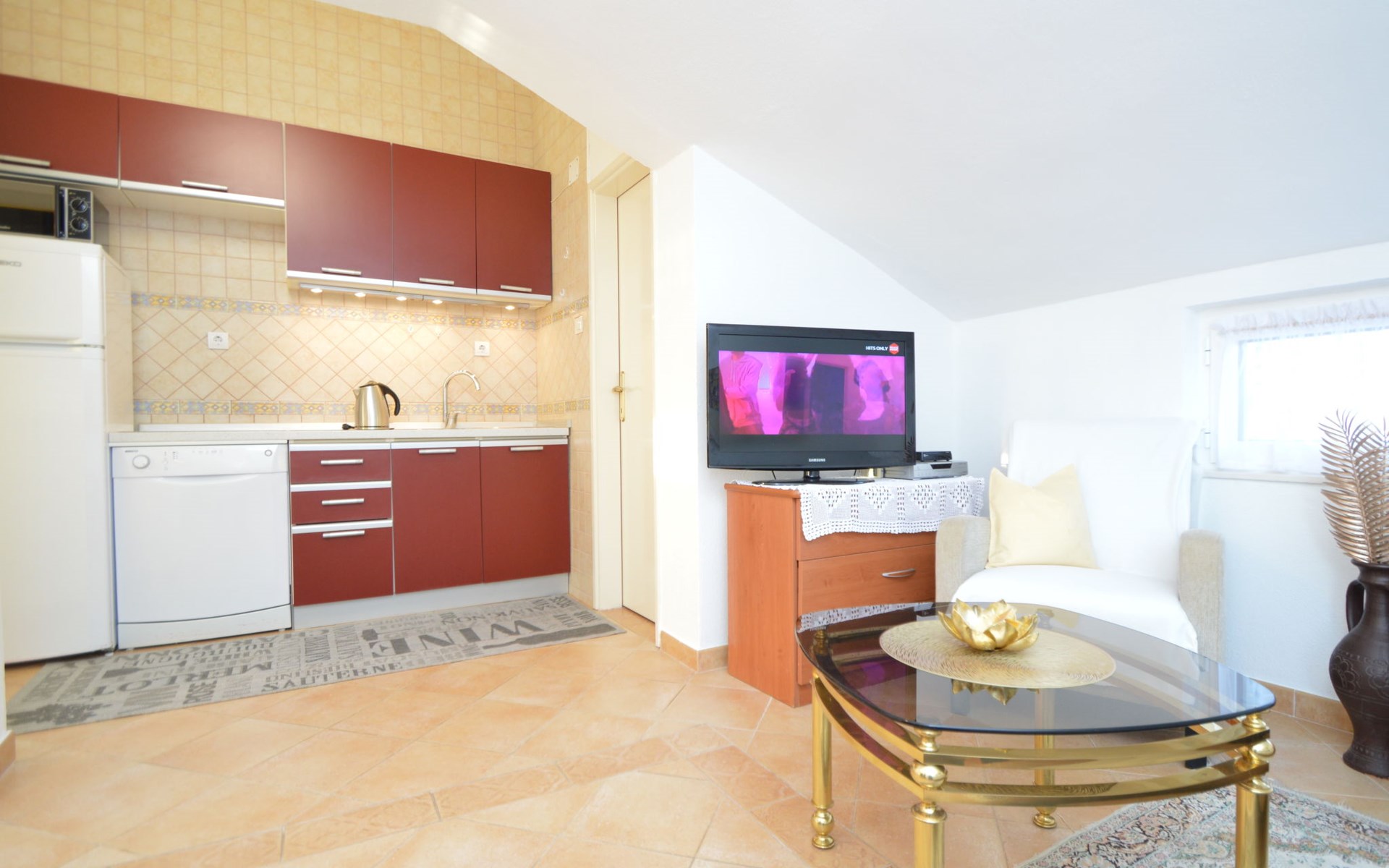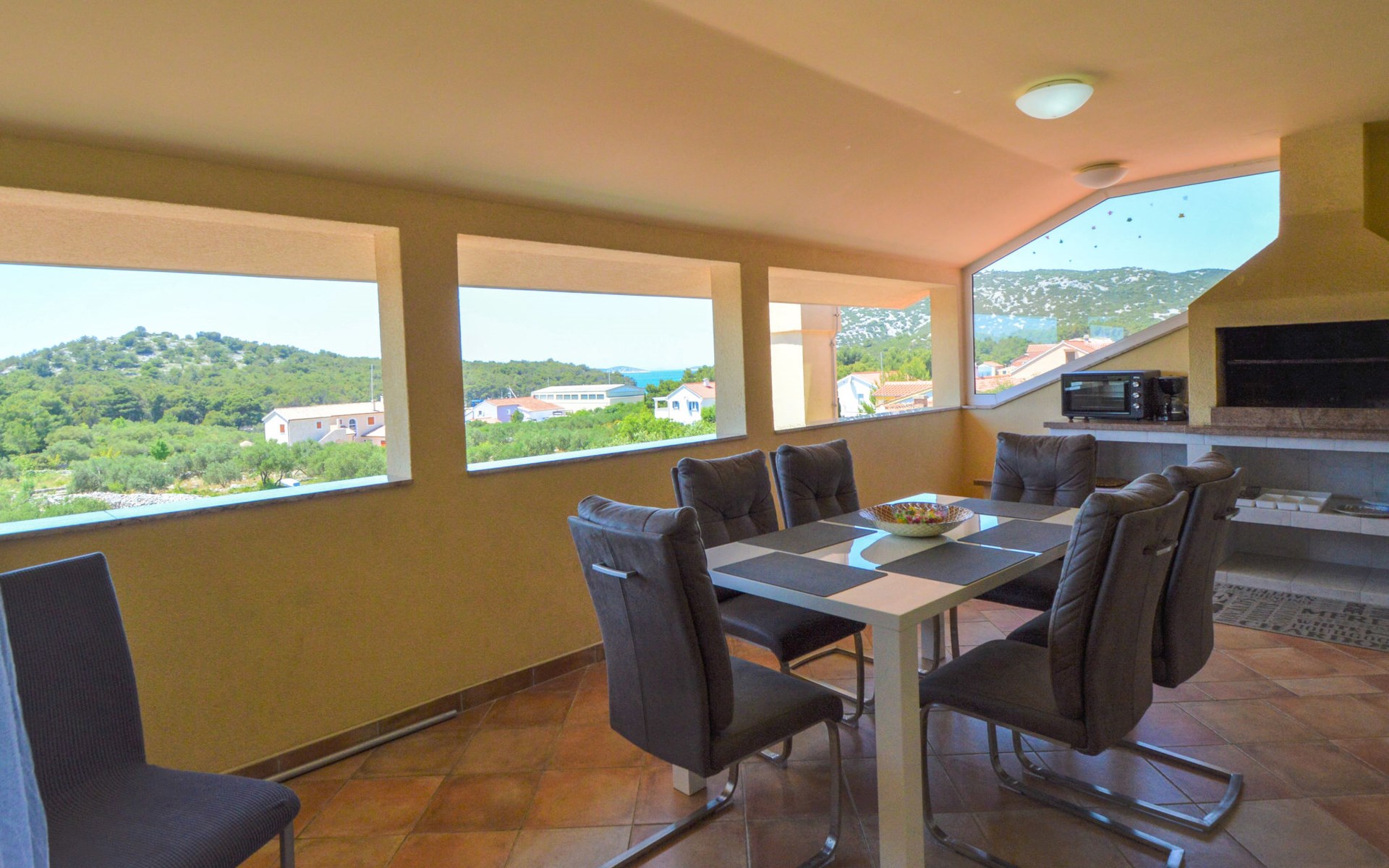 Tribunj 3 km from Vodice: Beautiful apartment house "Friedrich". In the hamlet Sovlje 1.5 km from the centre of Tribunj, in a quiet, sunny position, 250 m from the sea, 300 m from the beach. For shared use: well-kept garden (fenced), swimming pool (24 m2, depth 150 cm, seasonal availability: 01.May. - 22.Oct.) with internal staircase. Outdoor shower, arbour, garden furniture, children's playground. In the house: internet access, washing machine (for shared use, extra). Parking at the house. Shop 1.3 km, restaurant 350 m, bus stop 5.4 km, pebble beach 400 m, rocky beach 300 m, concrete beach 400 m. For shared use: deck chairs and parasols. Parking for trailer available.