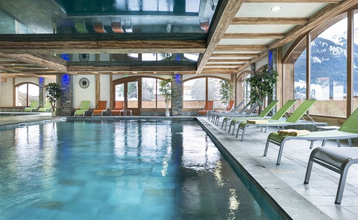 Beautiful, rustic, comfortable residence "CGH Rés & Spa Les Chalets d'Angèle", 1'200 m a.s.l., 3 storeys. 4 houses in the residence. 71 apartments in the residence. 800 m from the centre of Châtel, 40 km from the centre of Evian-les-Bains, outside the resort, 75 km from the centre of Genf, 2 km from the lake, 800 m from the skiing area. For shared use: indoor pool heated (15 x 8 m, seasonal availability: 01.Jan. - 31.Dec.). Children's pool. In the complex: reception, lounge, WiFi, sauna, fitness room, massage (extra). Steam room, hot tub, lift, storage room for skis, washing machine (extra), ski boot dryer. Bread roll service. Storeroom available. Communal covered parking (extra). Parking space or garage only for small to medium-sized cars. Dimension: height 190 cm. Shop 1.6 km, supermarket 100 m, restaurant, bar 100 m, lake Lac de Vonnes 2 km. Ski lift 800 m, slopes, ski bus stop 10 m. Well-known ski regions can easily be reached: Portes du Soleil. Please note: baby equipment on request (included). Ski bus (free of charge). Free ski bus service to the ski region Portes du Soleil. The photo is just an example. The holiday properties may differ in living space, floorplan, equipment and furnishing.