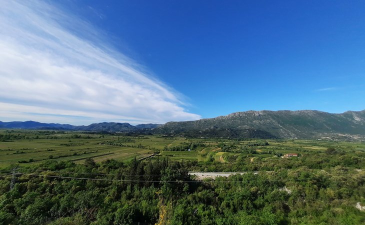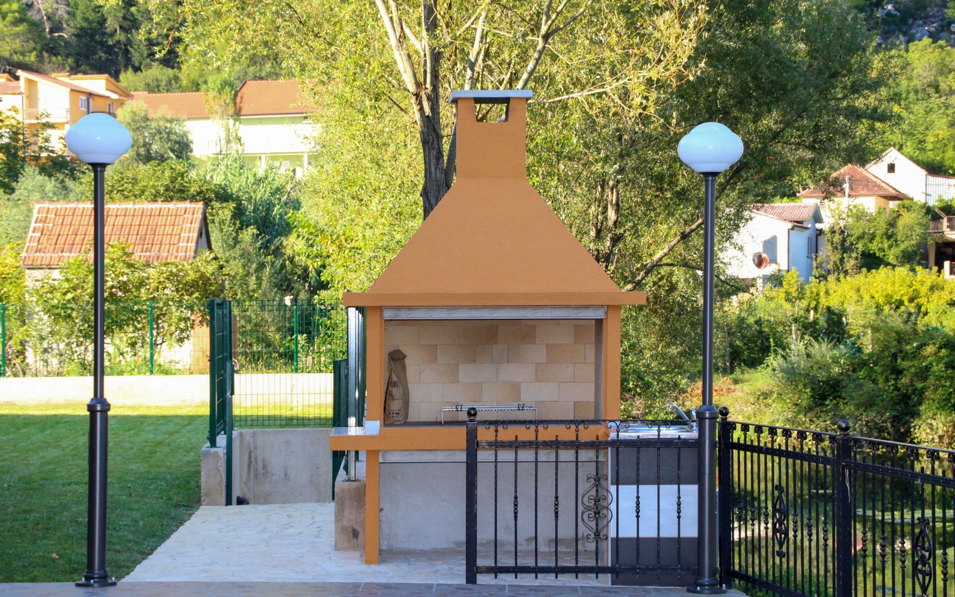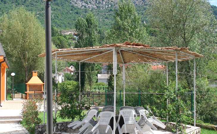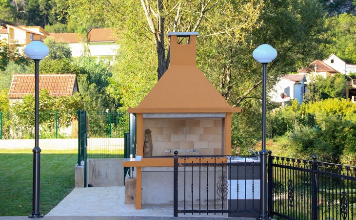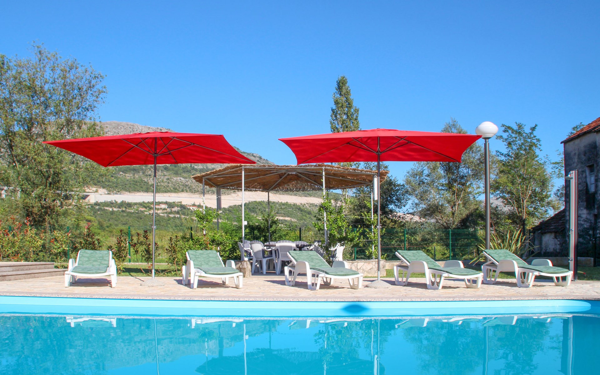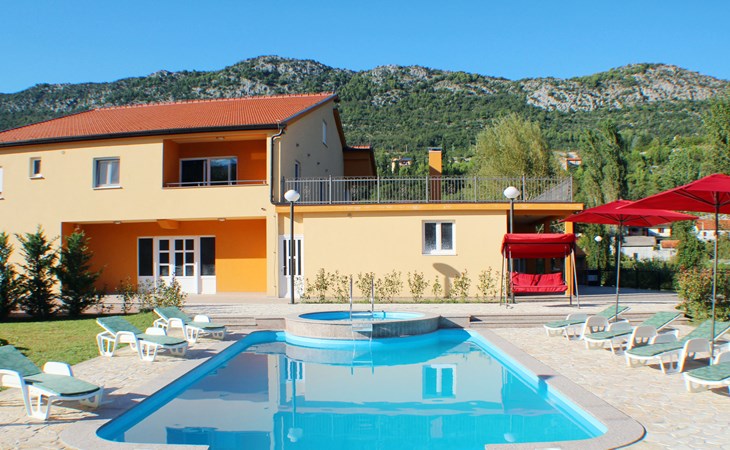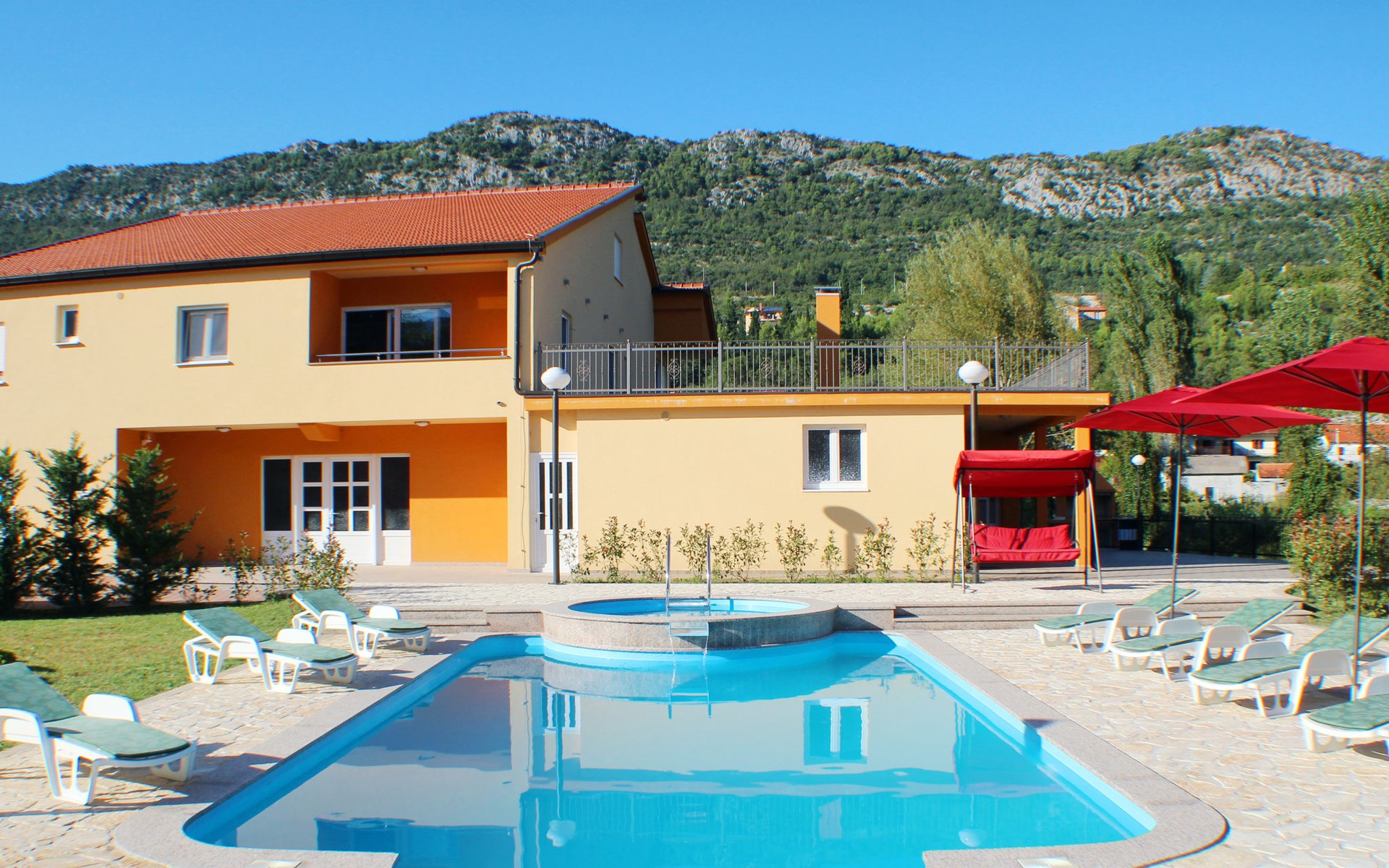Single-family house "Villa Kikiza", 2 storeys. 400 m from the centre of Dušina, 5 km from the centre of Vrgorac, 18 km from the centre of Ploče, 18 km from the sea. Private: property 3'500 m2 with lawn and wildlife garden, swimming pool (9 x 5 m, depth 150 cm, seasonal availability: 01.May. - 01.Oct.) with internal staircase. Paddling pool, outdoor shower, hot tub, terrace (100 m2), garden furniture, barbecue, pool maintenance by the owner/gardener. In the house: internet access, sauna (extra). Hot tub (extra). Washing machine, tumble dryer, bicycle rental. Parking (for 4 cars) on the premises. Shop 400 m, supermarket 18 km, bus stop 3.3 km, pebble beach 28 km.