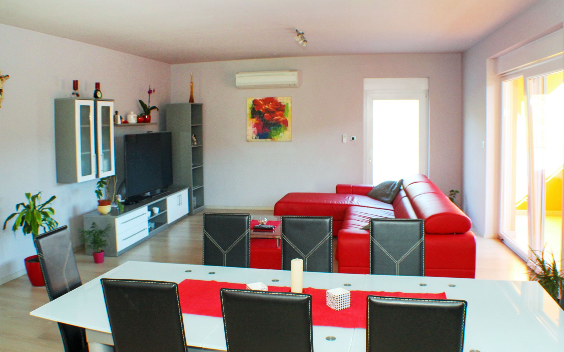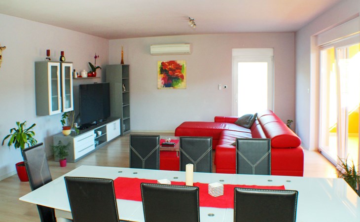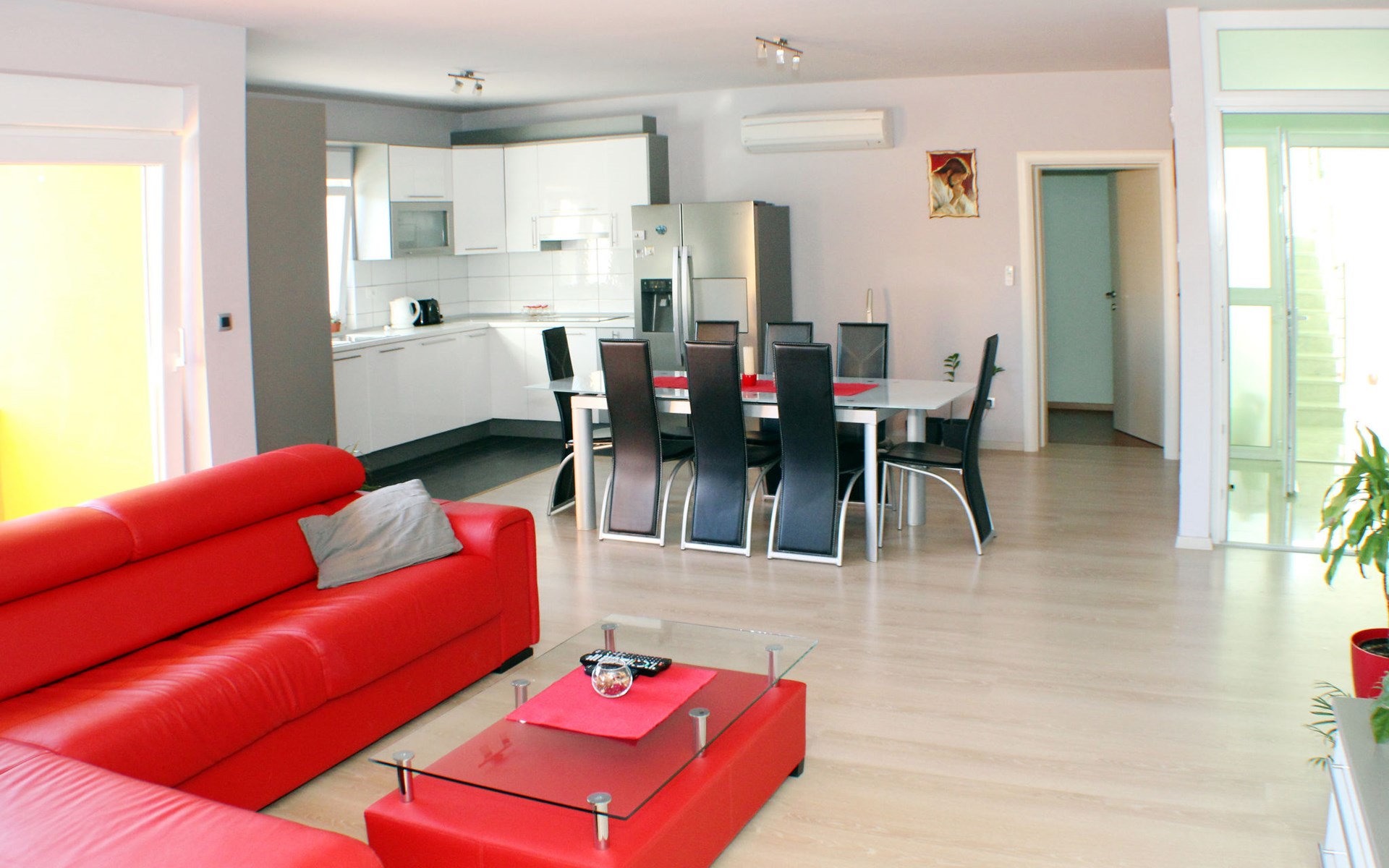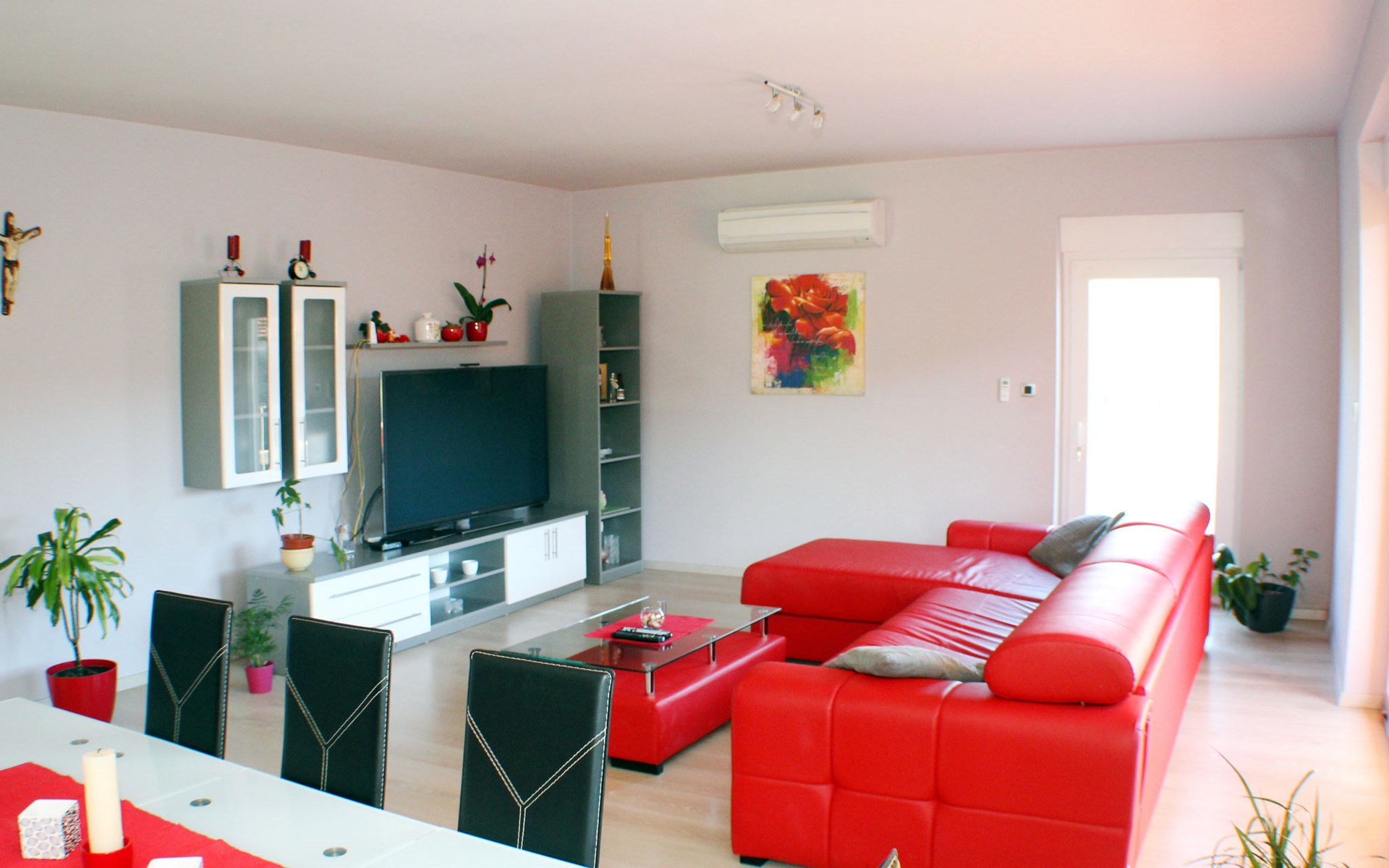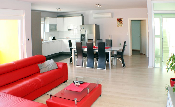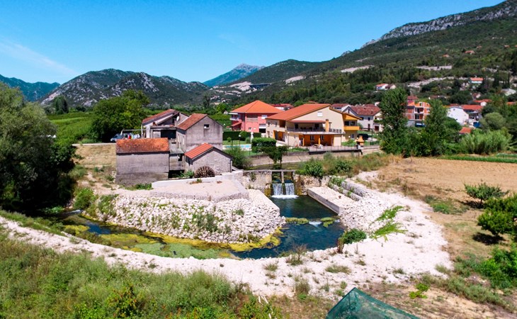 Single-family house "Villa Kikiza", 2 storeys. 400 m from the centre of Dušina, 5 km from the centre of Vrgorac, 18 km from the centre of Ploče, 18 km from the sea. Private: property 3'500 m2 with lawn and wildlife garden, swimming pool (9 x 5 m, depth 150 cm, seasonal availability: 01.May. - 01.Oct.) with internal staircase. Paddling pool, outdoor shower, hot tub, terrace (100 m2), garden furniture, barbecue, pool maintenance by the owner/gardener. In the house: internet access, sauna (extra). Hot tub (extra). Washing machine, tumble dryer, bicycle rental. Parking (for 4 cars) on the premises. Shop 400 m, supermarket 18 km, bus stop 3.3 km, pebble beach 28 km.