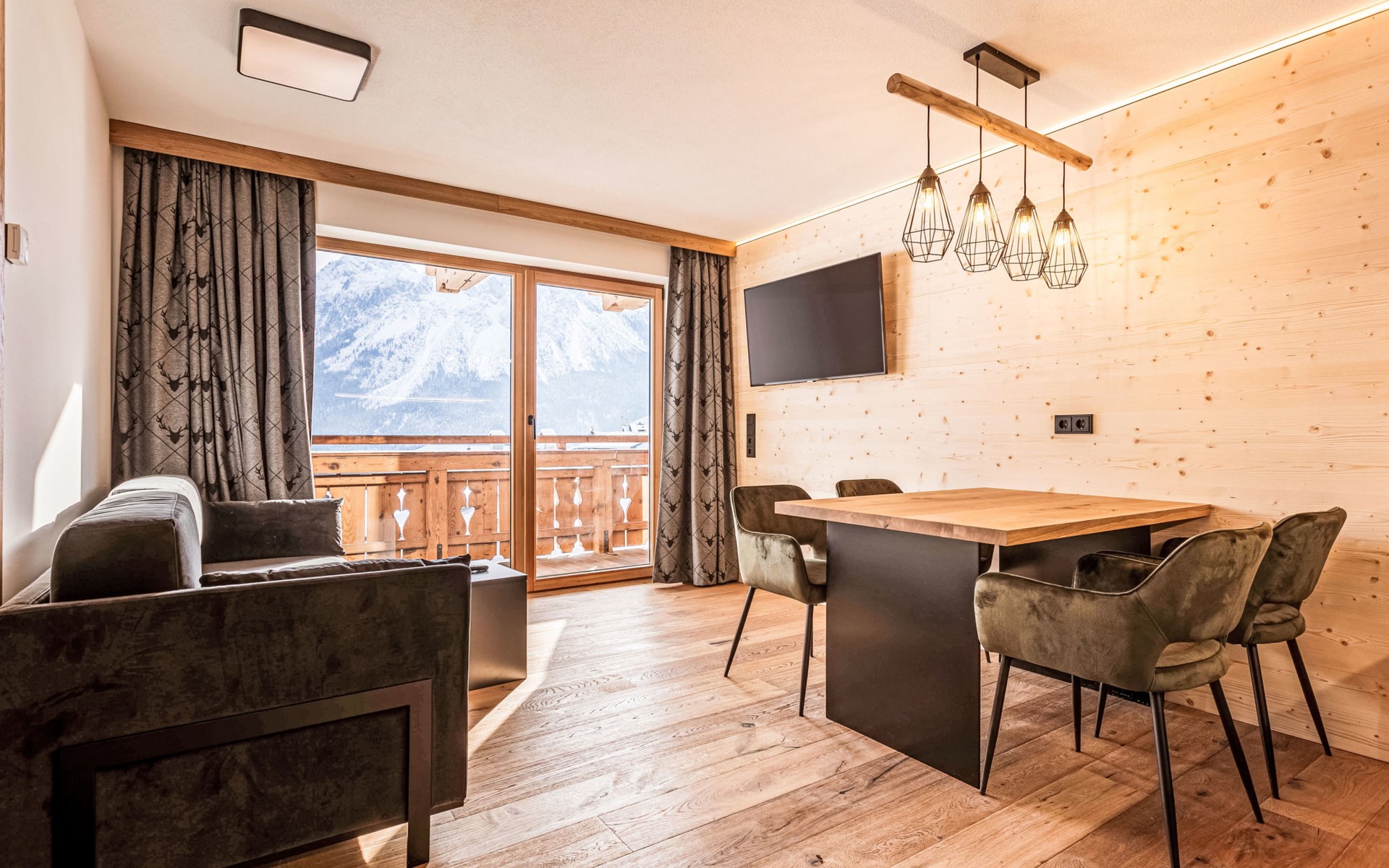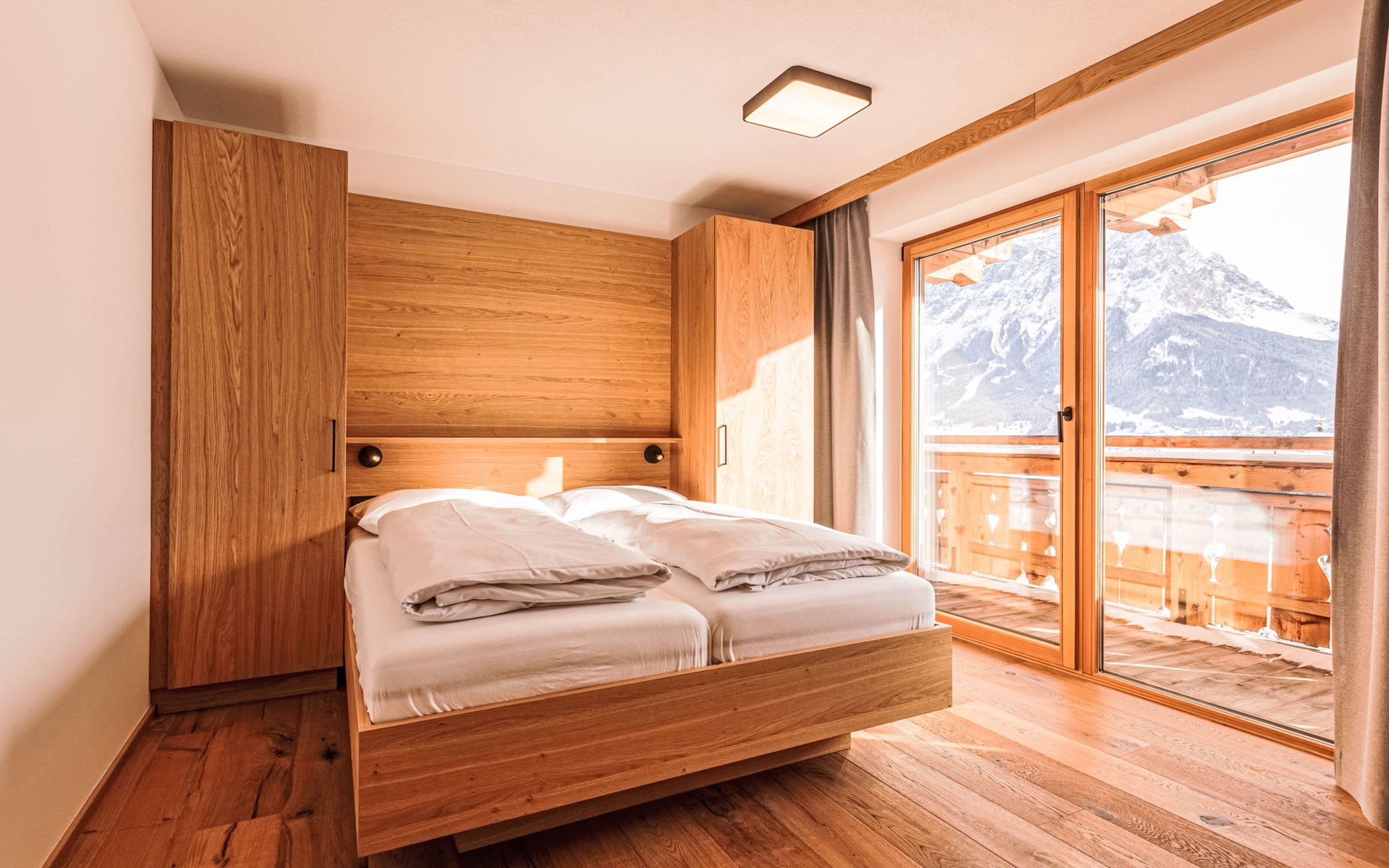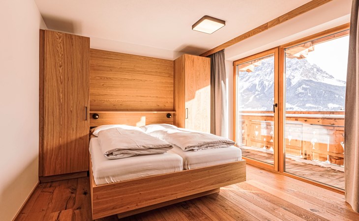 Lermoos: Located at the foot of the Zugspitze and on the ski slope, the sunny holiday apartments of the Zugspitz Suites Lermoos promise exclusive holiday moments in Tyrol cosy, comfortable apartment block "Zugspitz Suites by Alps Resorts". 100 m from the centre of Lermoos, directly by the skiing area. In the house: sauna, steam room, hot tub, relaxation room, spa area. Parking at the house. Supermarket 600 m, bathing lake "Heiterwangersee" 15 km. Golf course (18 hole) 2.4 km, skisport facilities 1 km, ski rental 1 km, ski school 1 km, cross country ski track 1 km. Nearby attractions: Garmisch Partenkirchen 20 km. Well-known ski regions can easily be reached: Zugspitz Arena, Grubigsteinbahn 1 km. Well-known lakes can easily be reached: Heiterwangersee 15 km. Hiking paths: Zugspitze, Zugspitzarena. The photo is just an example.