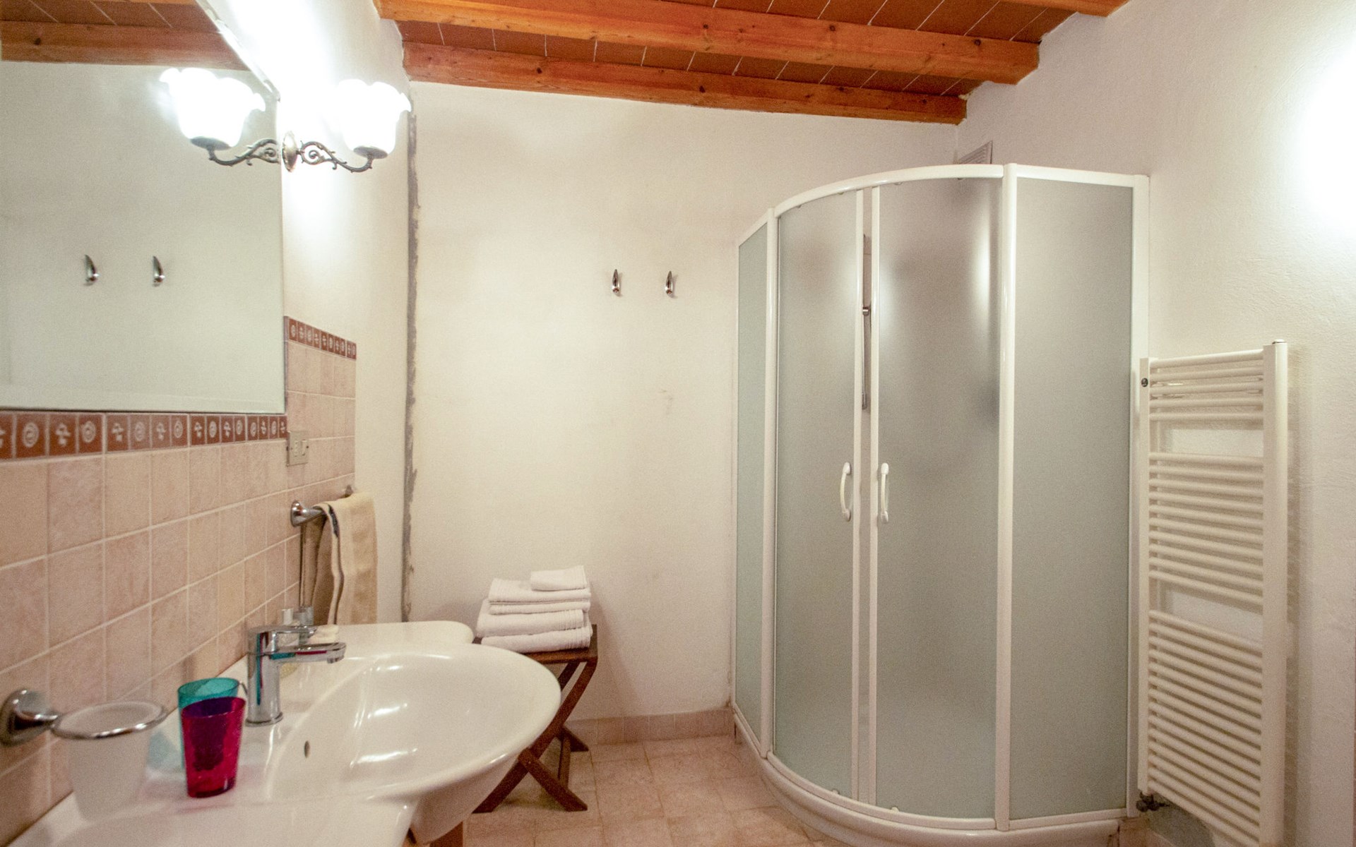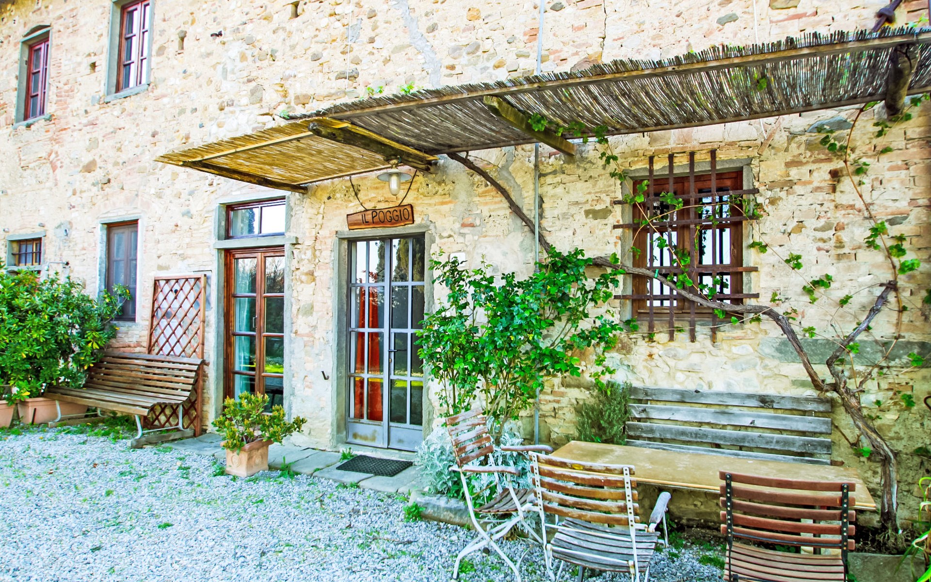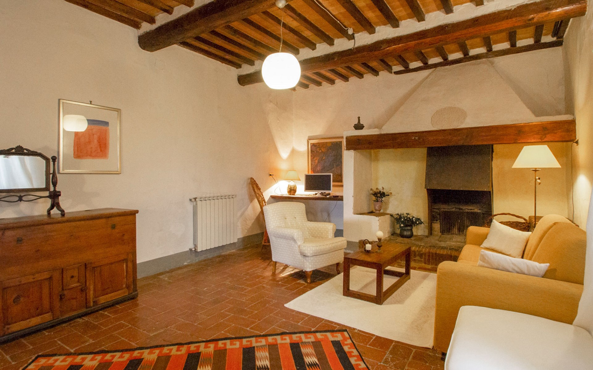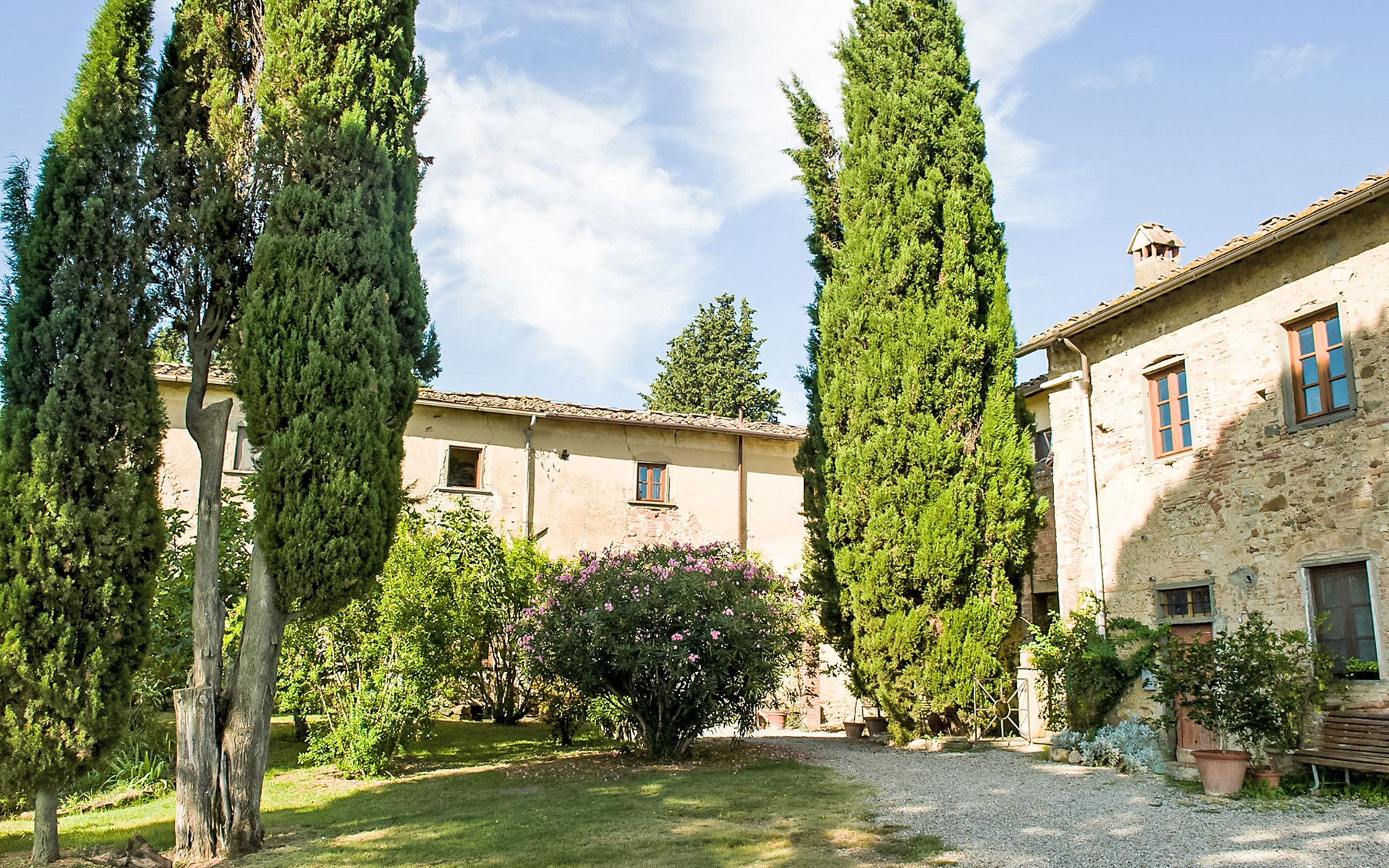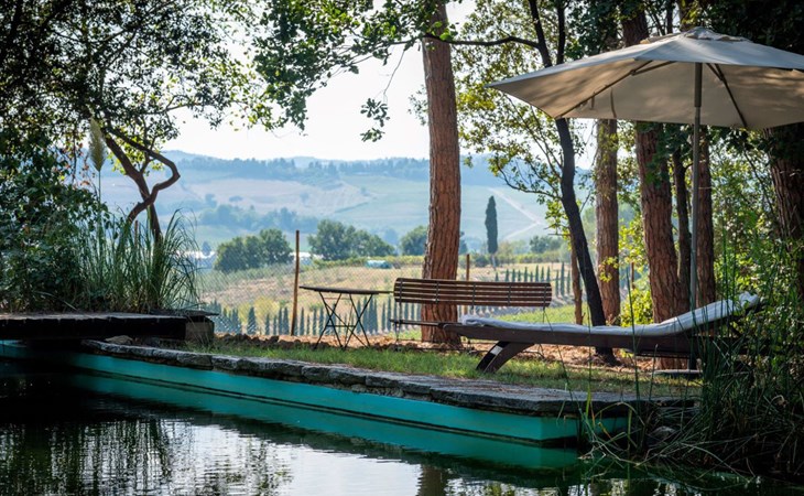 San Vincenzo a Torri 2 km from Ginestra Fiorentina: Near Florence, ideally situated for excursions to the most important art towns in the region. The sea is an hour away by car. Eco-pool in the shade of pine trees, with water plants and ecological water reulation without chemical products. Ceramic courses on request in the workroom of the house. Very old country house "Il Poggio", from the 15th century, surrounded by trees and fields. 3 km from the centre of Ginestra Fiorentina, 40 km from the centre of Siena, 50 km from the centre of Pisa, in a secluded, quiet, sunny position on top of a hill, in a cul-de-sac, in the countryside. For shared use: property, garden, swimming pool with privacy (12 x 6 m, depth 90 - 160 cm, seasonal availability: 04.May. - 05.Oct.). In the house: central heating system, heating to be paid on the spot, heating available only from 01.Nov. - 07.Apr.. Room cleaning on request (extra). Motor access to the house (1 km via unmade road). Parking at the house. Grocery 2 km, restaurant 2 km, bus stop 500 m, railway station "Montelupo Fiorentino" 10 km, sandy beach "Marina di Pisa" 80 km. Golf course (18 hole) 28 km, tennis 3 km, riding stable 4 km. Nearby attractions: San Casciano in Val di Pesa 10 km, Montespertoli 12 km, Carmignano 18 km, Firenze 23 km, Vinci 27 km. Please note: the owner lives on the same property.