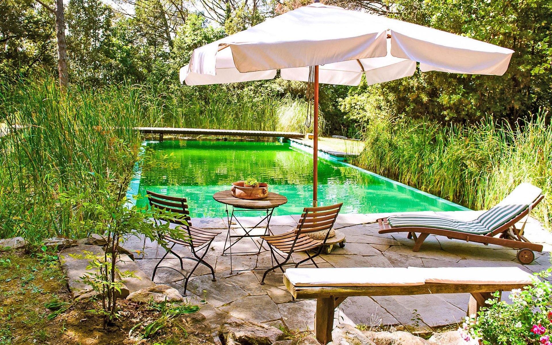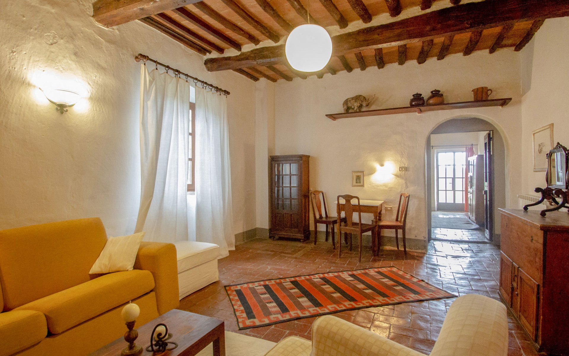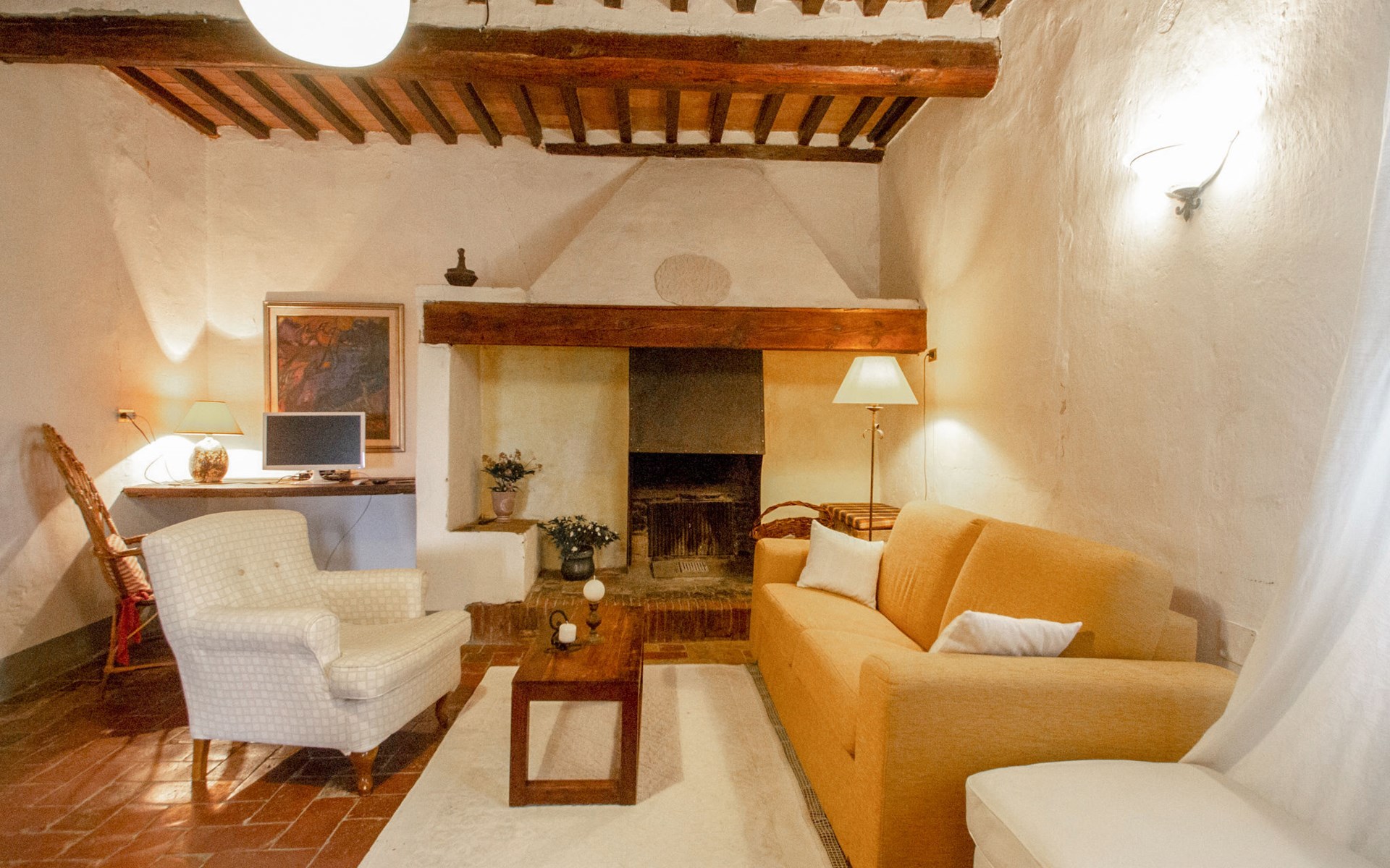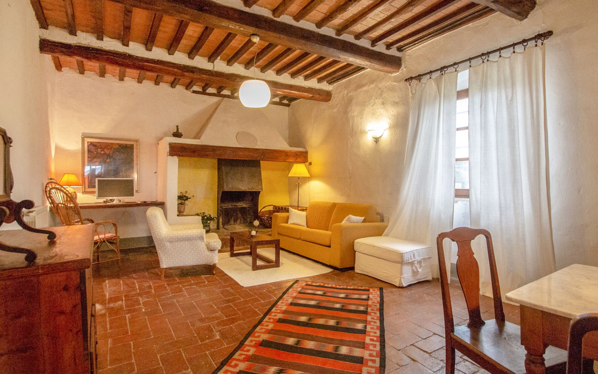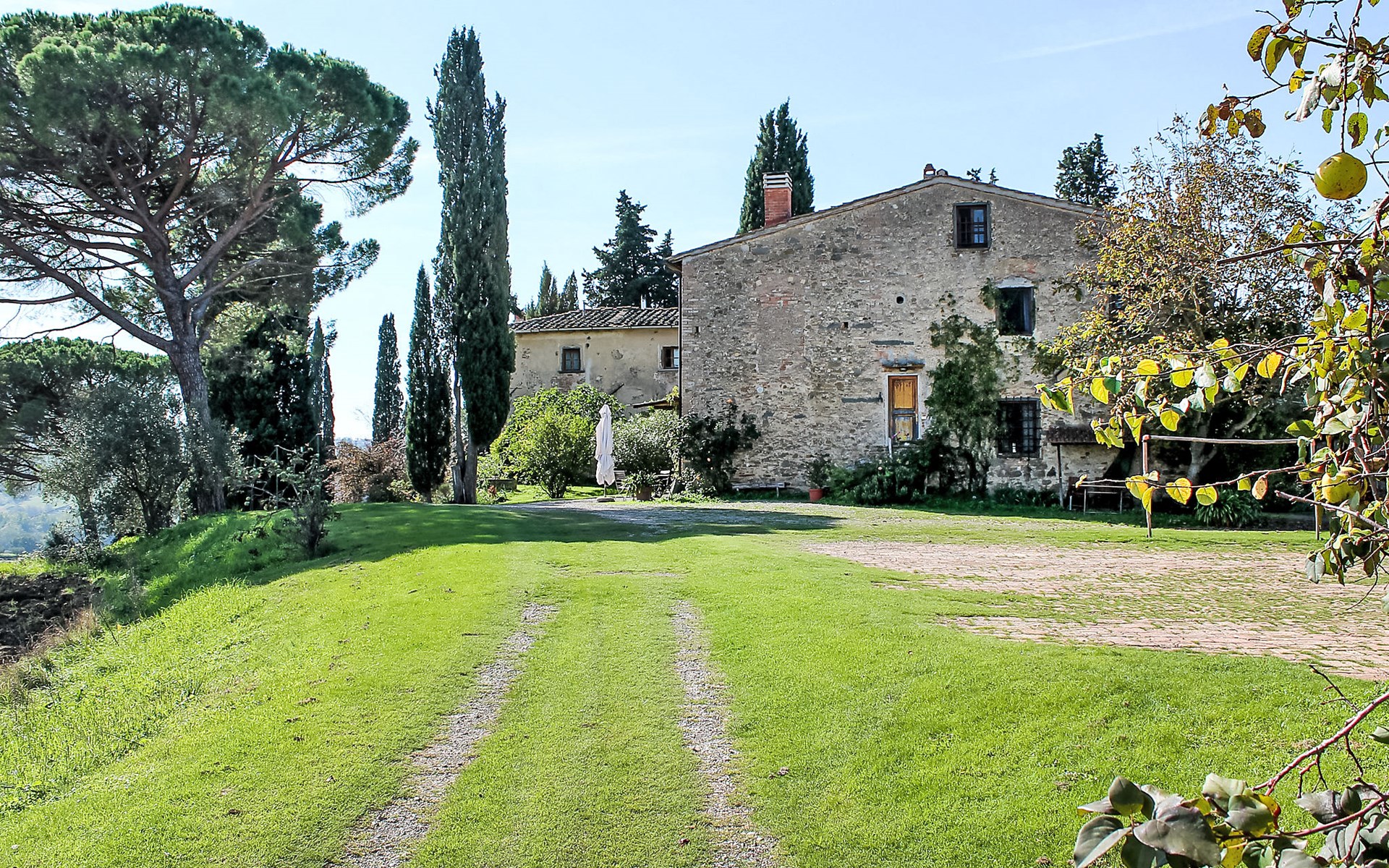 San Vincenzo a Torri 2 km from Ginestra Fiorentina: Near Florence, ideally situated for excursions to the most important art towns in the region. The sea is an hour away by car. Eco-pool in the shade of pine trees, with water plants and ecological water reulation without chemical products. Ceramic courses on request in the workroom of the house. Very old country house "Il Poggio", from the 15th century, surrounded by trees and fields. 3 km from the centre of Ginestra Fiorentina, 40 km from the centre of Siena, 50 km from the centre of Pisa, in a secluded, quiet, sunny position on top of a hill, in a cul-de-sac, in the countryside. For shared use: property, garden, swimming pool with privacy (12 x 6 m, depth 90 - 160 cm, seasonal availability: 04.May. - 05.Oct.). In the house: central heating system, heating to be paid on the spot, heating available only from 01.Nov. - 07.Apr.. Room cleaning on request (extra). Motor access to the house (1 km via unmade road). Parking at the house. Grocery 2 km, restaurant 2 km, bus stop 500 m, railway station "Montelupo Fiorentino" 10 km, sandy beach "Marina di Pisa" 80 km. Golf course (18 hole) 28 km, tennis 3 km, riding stable 4 km. Nearby attractions: San Casciano in Val di Pesa 10 km, Montespertoli 12 km, Carmignano 18 km, Firenze 23 km, Vinci 27 km. Please note: the owner lives on the same property.