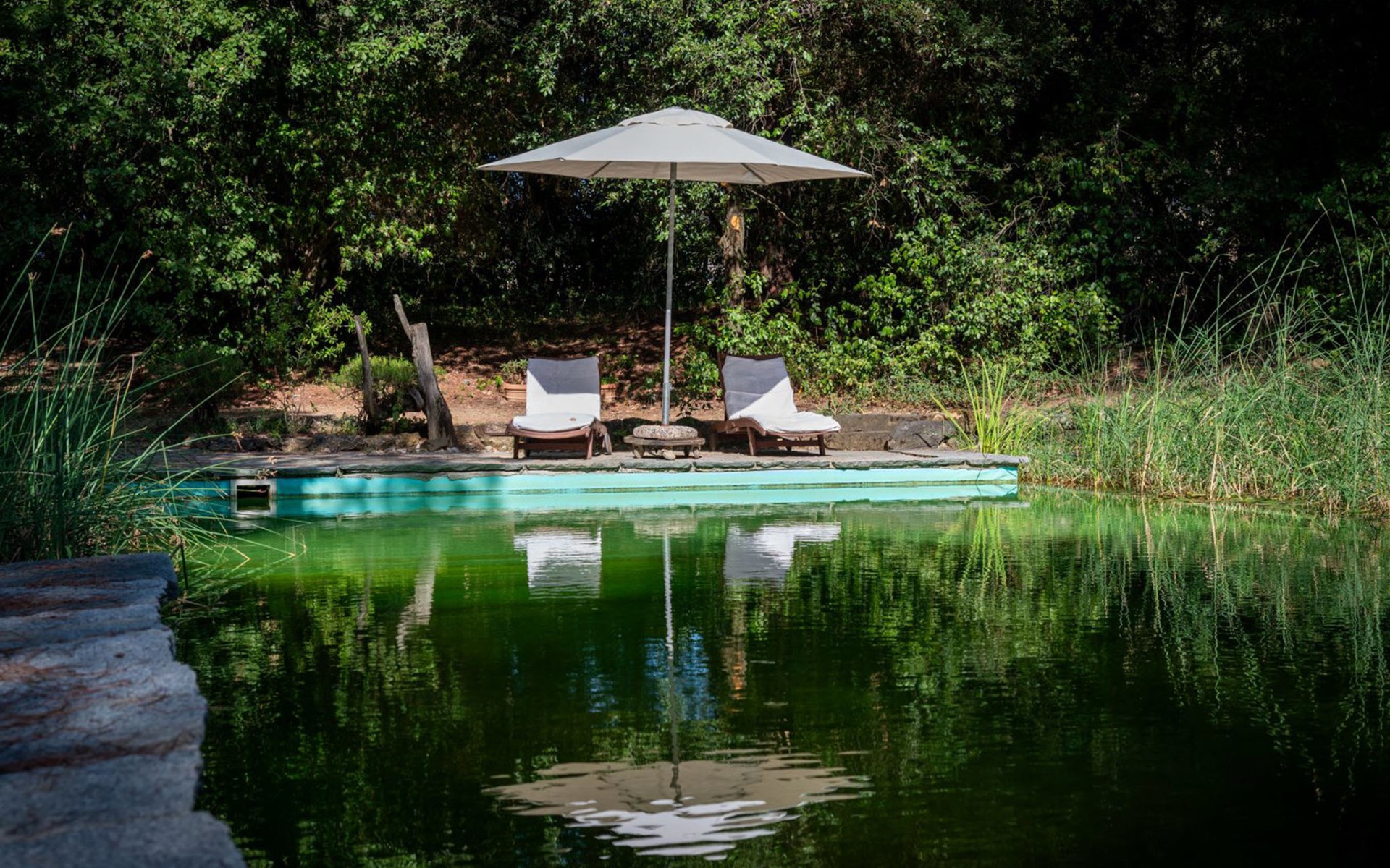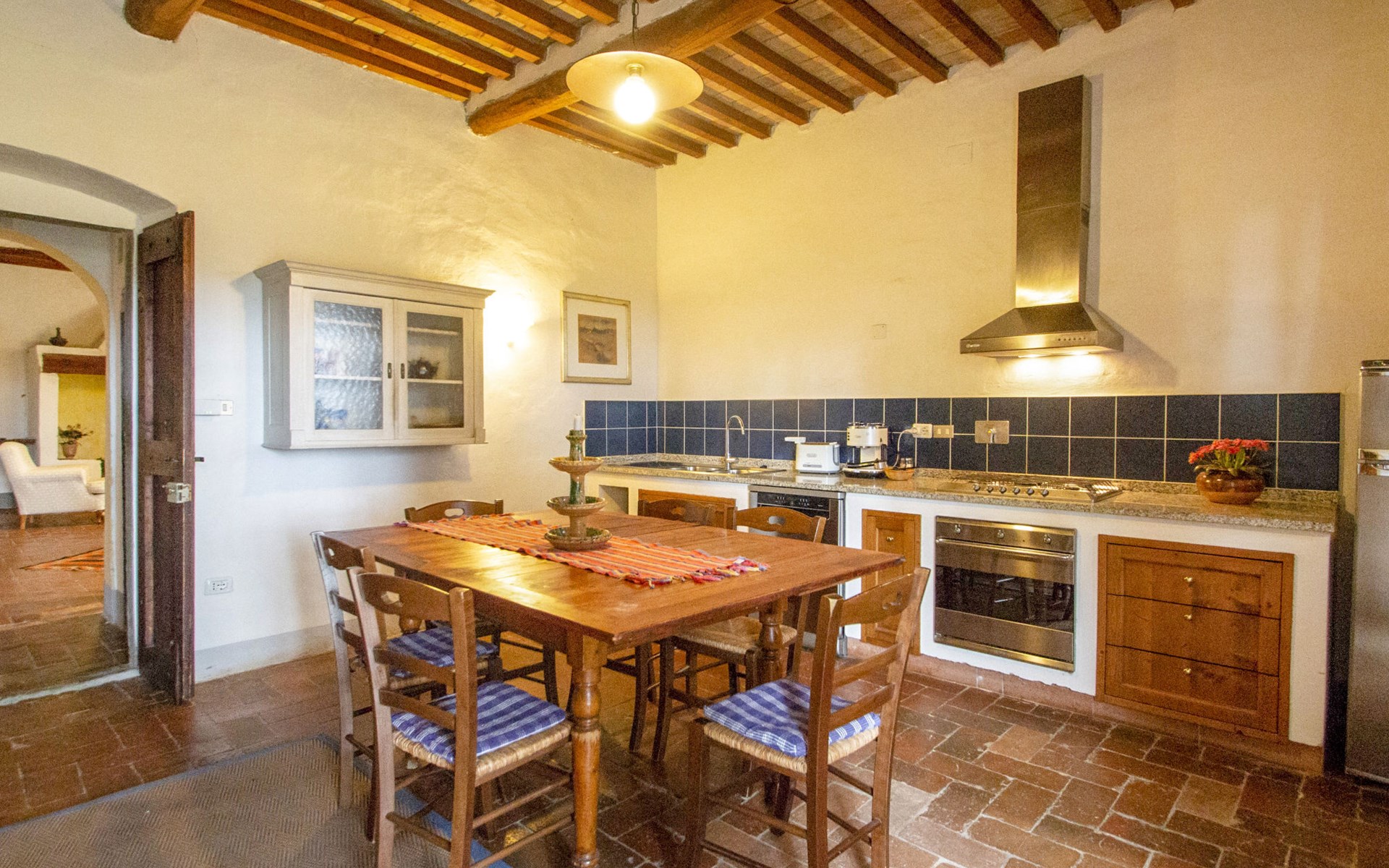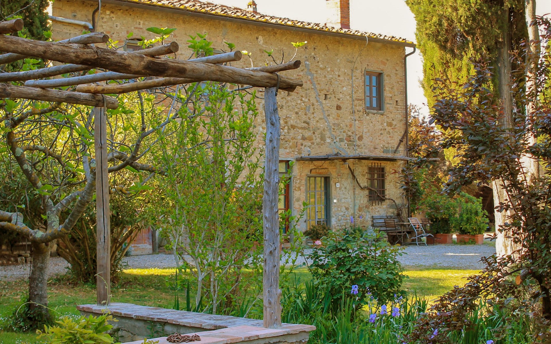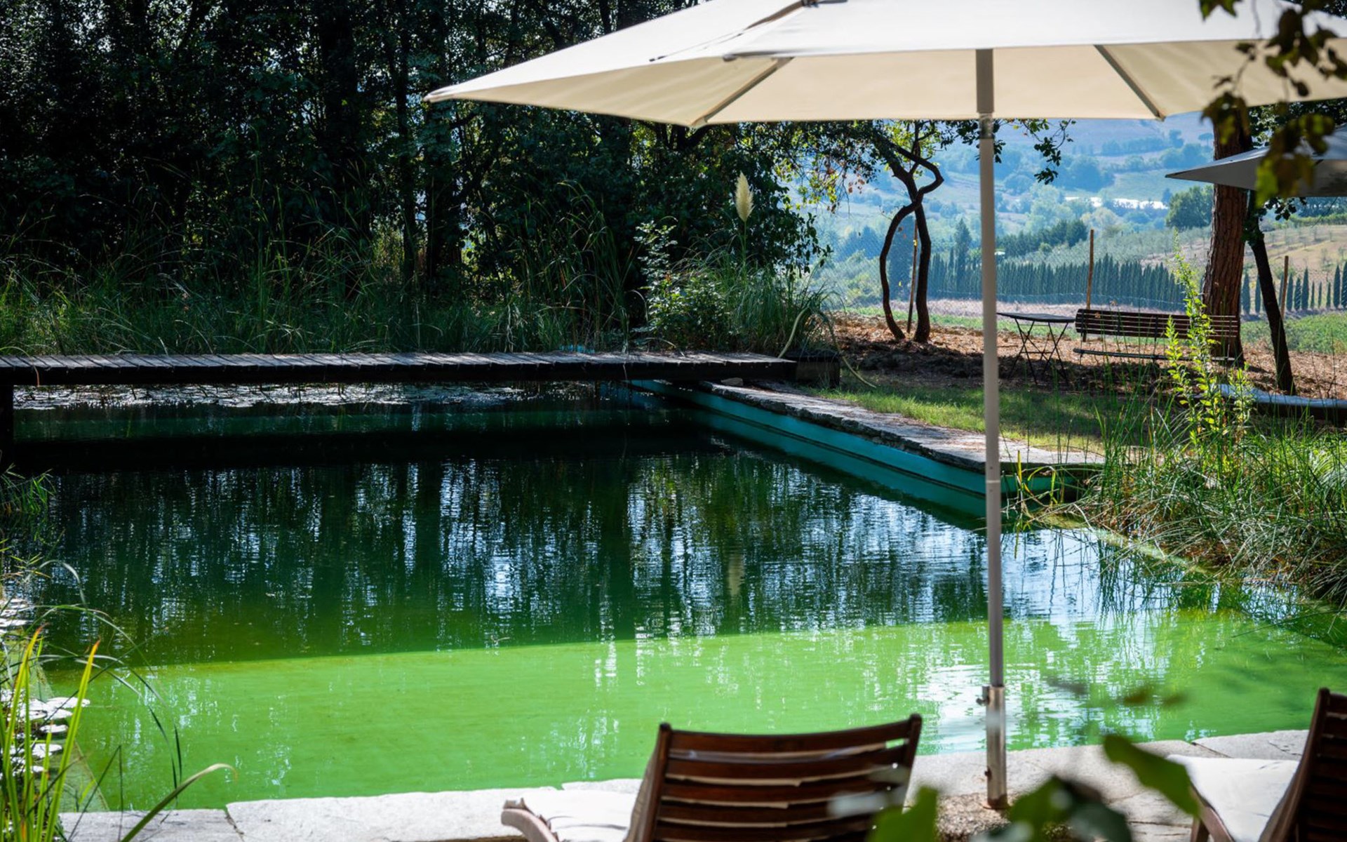 San Vincenzo a Torri 2 km from Ginestra Fiorentina: Near Florence, ideally situated for excursions to the most important art towns in the region. The sea is an hour away by car. Eco-pool in the shade of pine trees, with water plants and ecological water reulation without chemical products. Ceramic courses on request in the workroom of the house. Very old country house "Il Poggio", from the 15th century, surrounded by trees and fields. 3 km from the centre of Ginestra Fiorentina, 40 km from the centre of Siena, 50 km from the centre of Pisa, in a secluded, quiet, sunny position on top of a hill, in a cul-de-sac, in the countryside. For shared use: property, garden, swimming pool with privacy (12 x 6 m, depth 90 - 160 cm, seasonal availability: 04.May. - 05.Oct.). In the house: central heating system, heating to be paid on the spot, heating available only from 01.Nov. - 07.Apr.. Room cleaning on request (extra). Motor access to the house (1 km via unmade road). Parking at the house. Grocery 2 km, restaurant 2 km, bus stop 500 m, railway station "Montelupo Fiorentino" 10 km, sandy beach "Marina di Pisa" 80 km. Golf course (18 hole) 28 km, tennis 3 km, riding stable 4 km. Nearby attractions: San Casciano in Val di Pesa 10 km, Montespertoli 12 km, Carmignano 18 km, Firenze 23 km, Vinci 27 km. Please note: the owner lives on the same property.