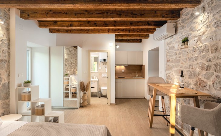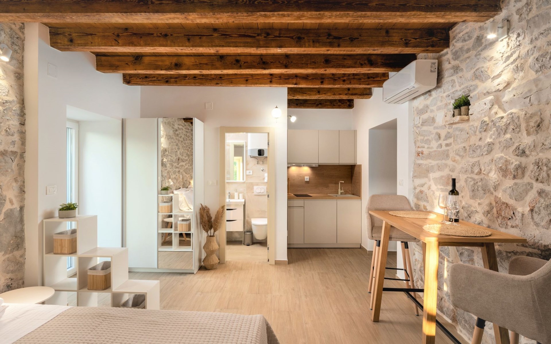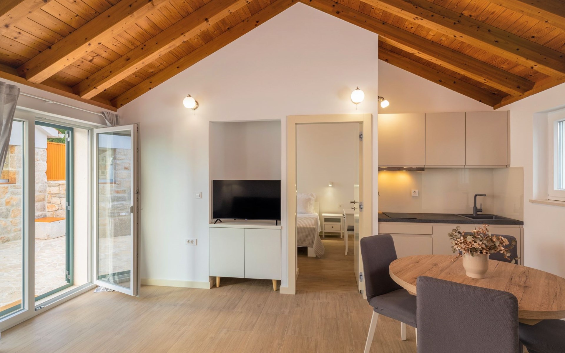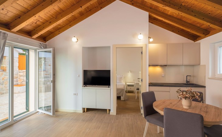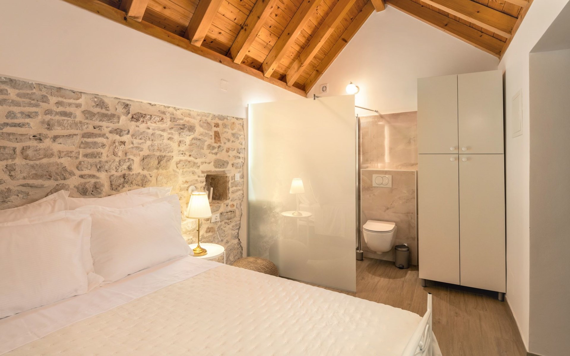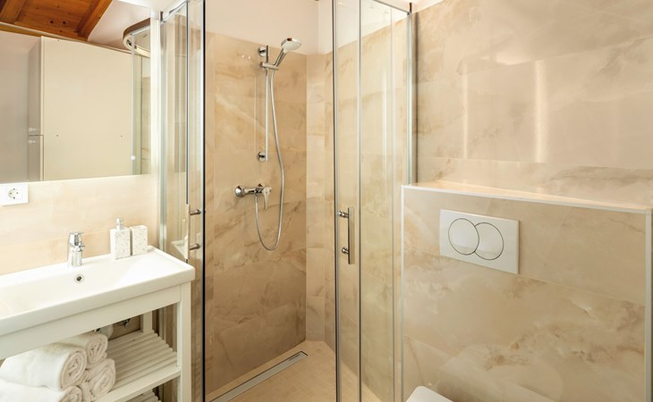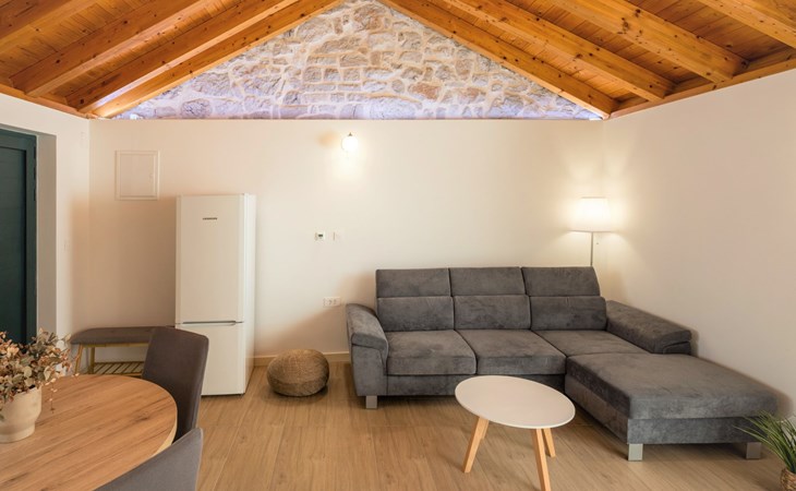 Beautiful single-family house "Villa di Perla", built in 2024. 3.5 km from the centre of Primošten, in a sunny position, 3 km from the sea, 3 km from the beach. Private: property 620 m2 (fenced), garden with trees, swimming pool angular (38 m2, depth 150 cm, seasonal availability: 01.May. - 31.Oct.). Outdoor shower, pool house with fridge and cooking stove, terrace (30 m2), garden furniture, children's playground (swing). In the house: internet access, washing machine. Parking (for 2 cars) at the house on the premises. Shop 3 km, restaurant 3 km, bus stop 3.3 km, pebble beach 3 km. Marina 6 km. Please note: suitable for families. The owner does not accept any youth groups. The unit consists of the small, separate house and the main house rented as one unit.