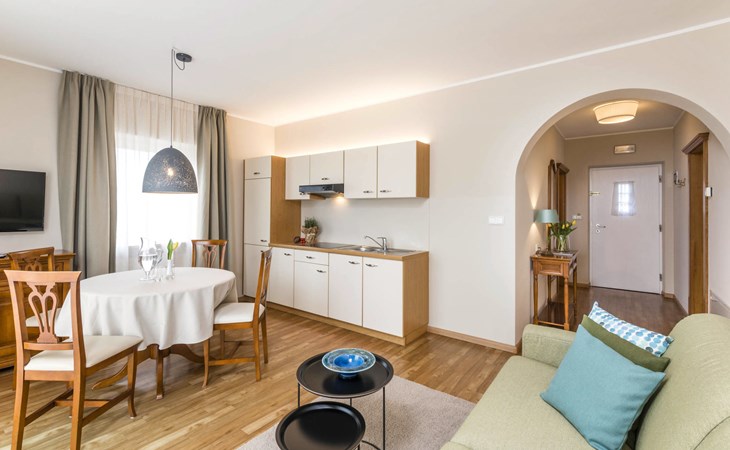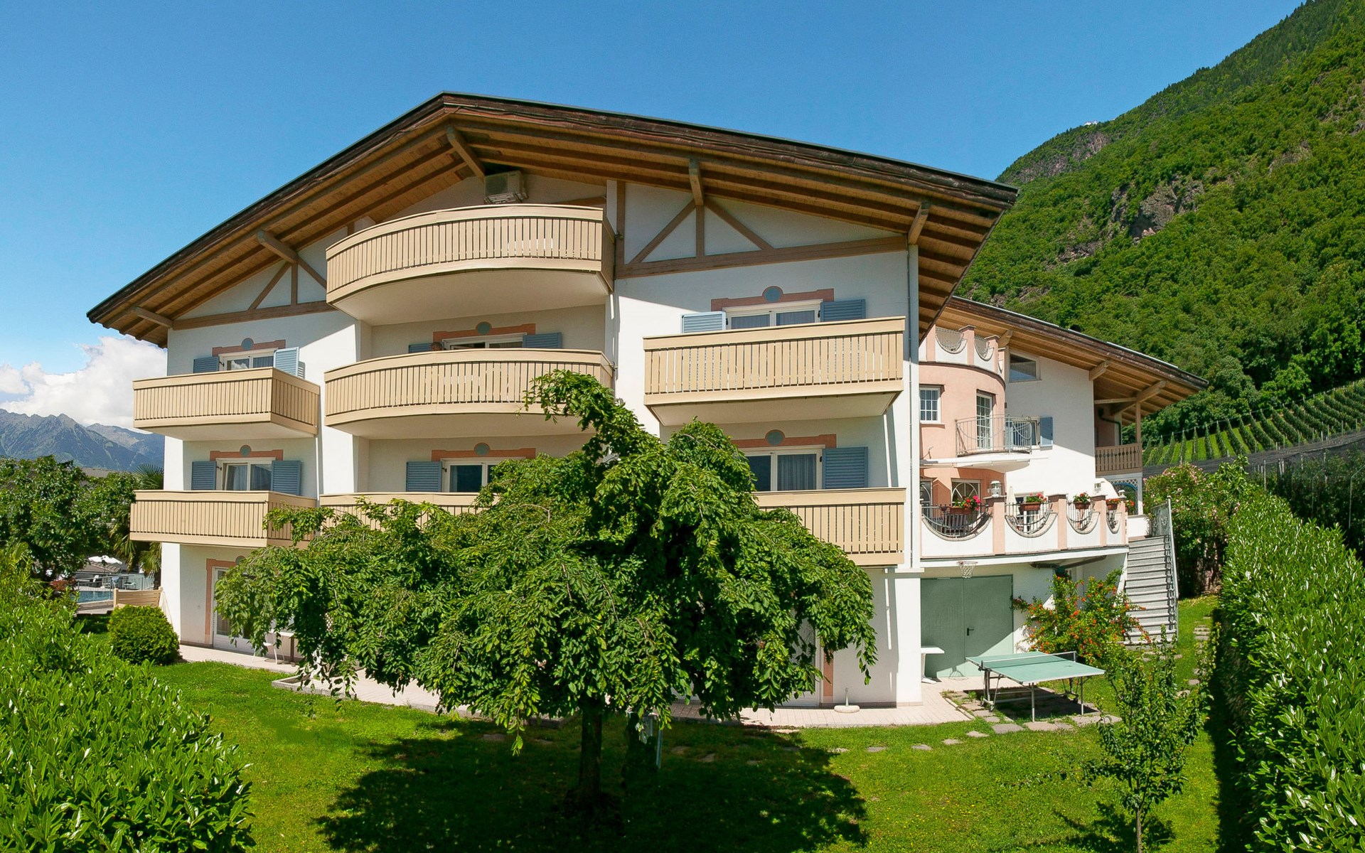 Cosy, comfortable residence "Graf Volkmar", 270 m a.s.l., 4 storeys. 12 apartments in the residence. On the outskirts, 1 km from the centre of Postal / Burgstall, 10 km from the centre of Merano / Merano, on a slope, in the countryside, south-west facing position. For shared use: property 2'000 m2, well-kept terraced garden with lawn, swimming pool, indoor pool (11 x 6 m, seasonal availability: 01.Apr. - 15.Oct.). Table tennis, children's playground. In the complex: reception, bar, breakfast room, sauna, steam room, hot tub (all included), storage room for bicycles. Linen change weekly. Towel change 2 times per week. Beverage service and breakfast possible on request (extra). Parking at the house on the premises, communal covered parking at the house. Supermarket 1.5 km, bus stop 150 m, railway station "Lana-Postal (Bolzano-Merano)" 2.4 km, outdoor swimming pool 2.5 km, thermal baths "Merano" 7 km. Golf course (9 hole) 5 km, cycle lane 50 m, cable car 5 km, mountain railway 2.6 km. Nearby attractions: Trauttmansdorff 5 km, Merano 7 km, Messner Mountain Museum 22 km, Bolzano 25 km. Well-known ski regions can easily be reached: Meran 2000 8 km, Val Senales / Schnalstal 55 km, Val Ultima Schwemmalm Area / Schnalstal 27 km. Hiking paths: Verano / Vöran 2.6 km, Monte San Vigilio / Vigiljoch 5 km. Please note: baby equipment on request (extra).