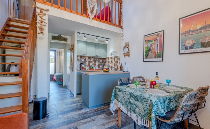 Residence "Les Brigantines 1 et 2". In the district of L'Aygual, 1 km from the sea. Shop 800 m, restaurant 1 km, bar 900 m, bakery 1 km, bus stop 1 km, railway station "Elne" 8 km, sandy beach "Plage Nord" 1 km. Sports harbour 2 km, golf course (27 hole) 2 km, sailing school 3.3 km, minigolf 1 km, sports centre 4 km. Nearby attractions: Aqualand 5 km.
