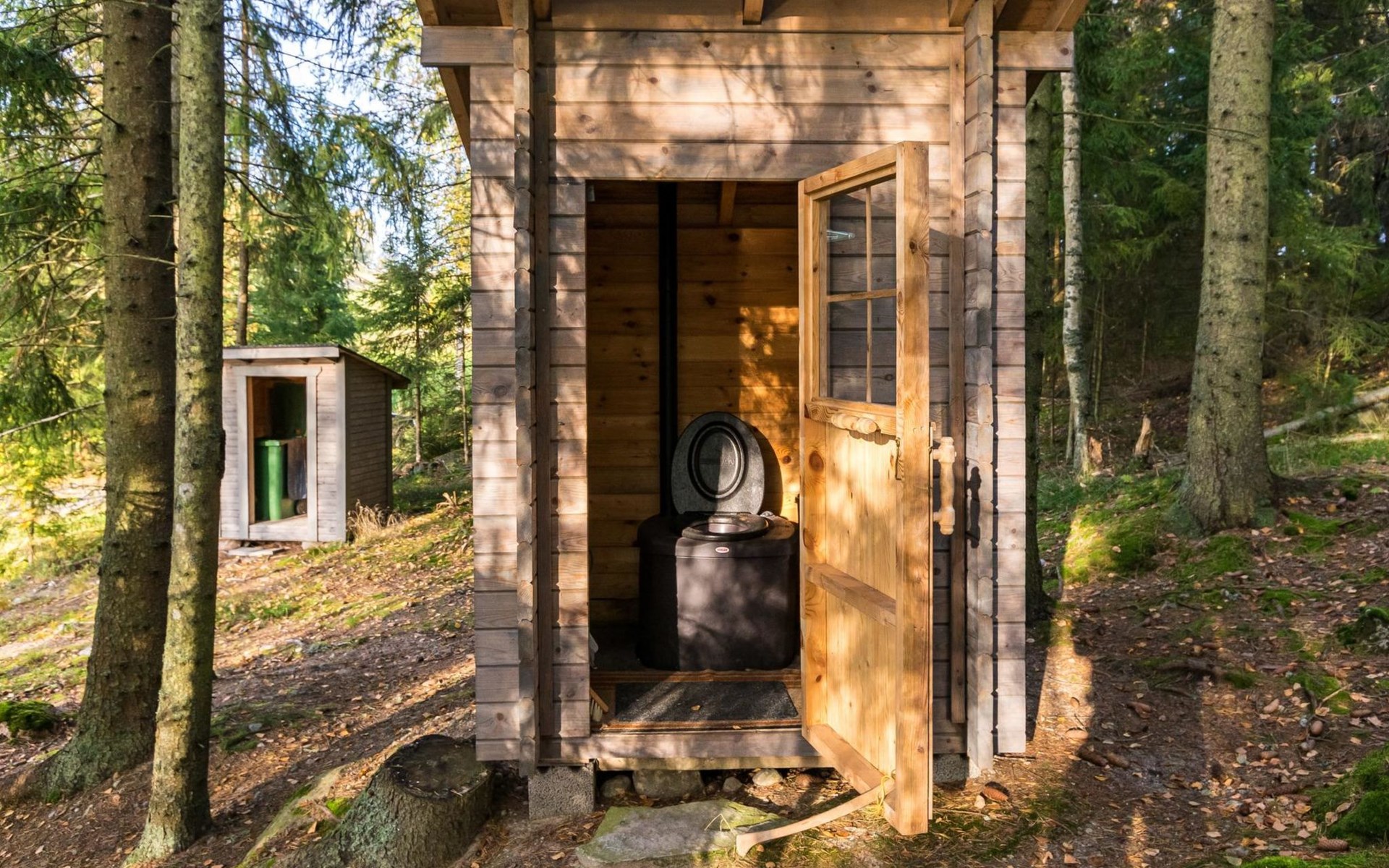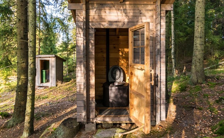 Composting toilet (also for winter use) and wood shelter in the yard.