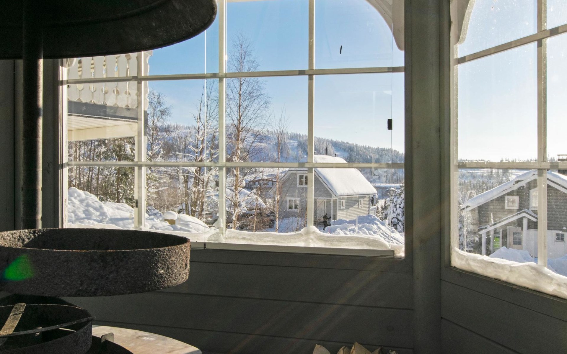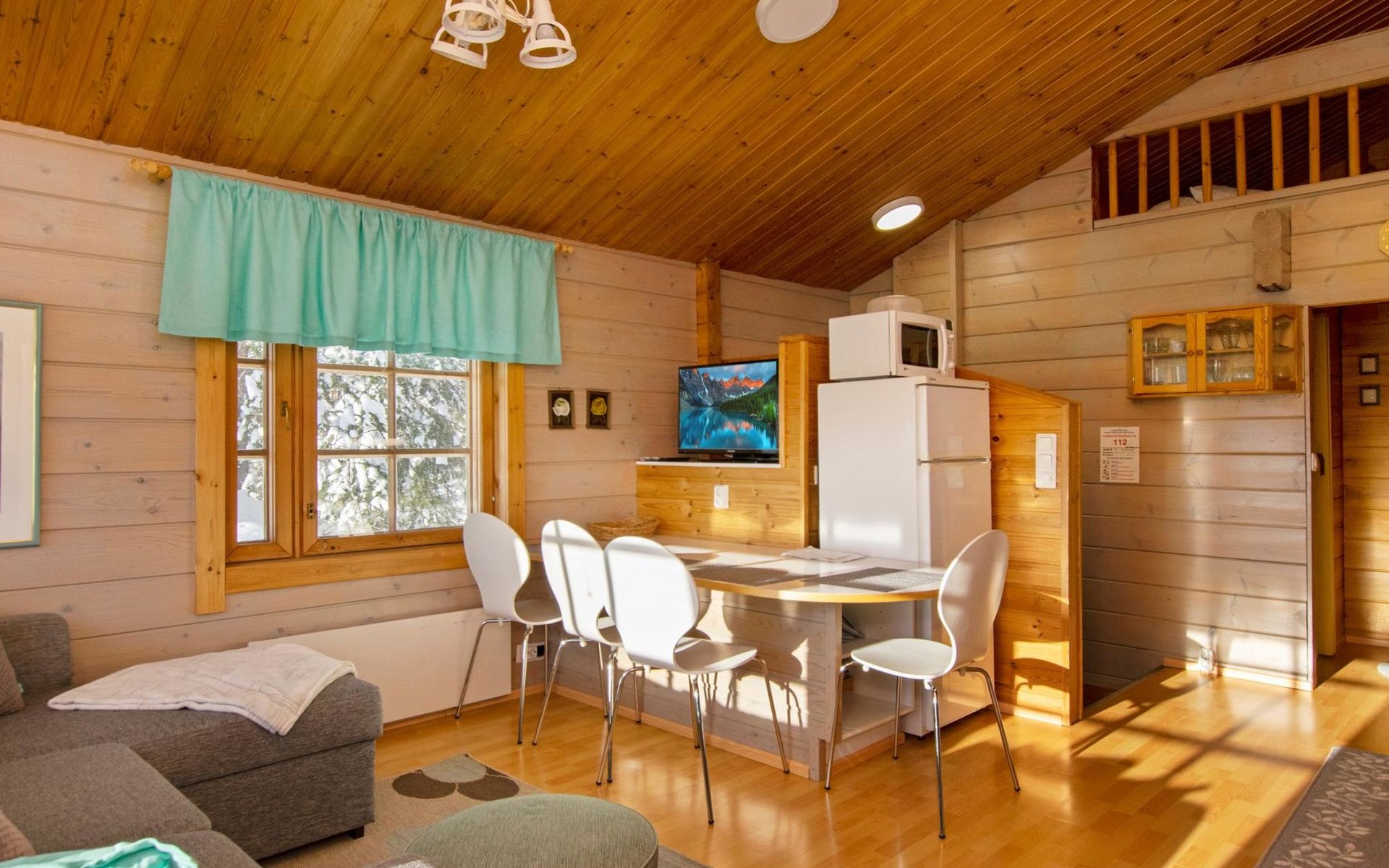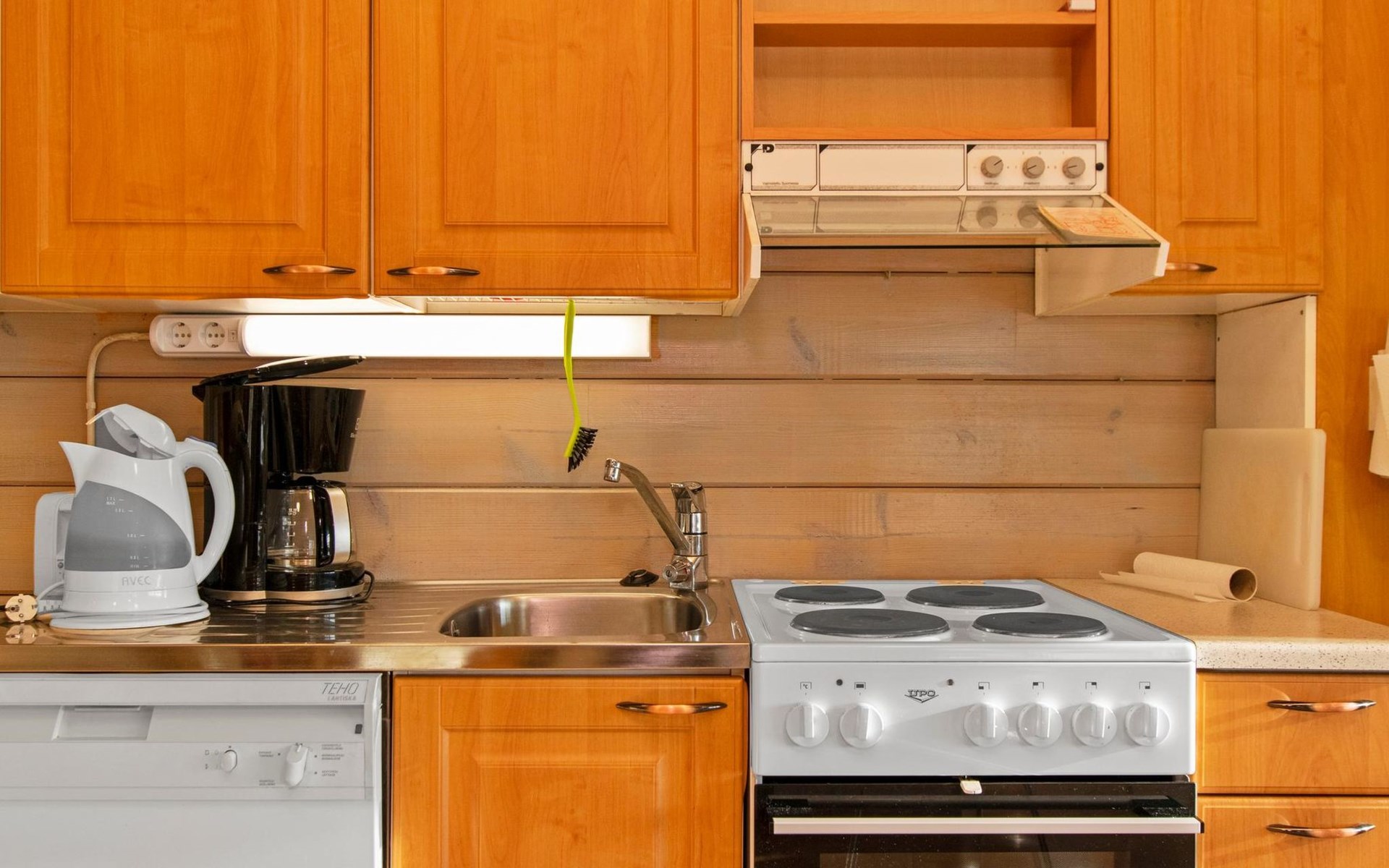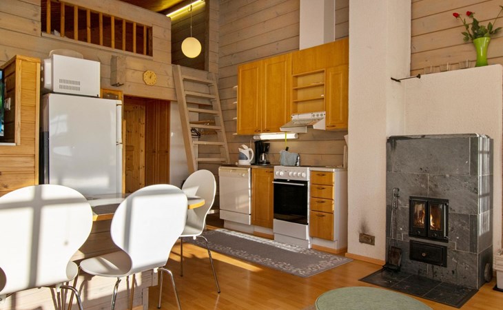 electric cooker, microwave oven, refrigerator with freezer, extractor fan, dishes, dishwasher, toaster, coffee maker, cleaning equipment, vacuum cleaner, TV, radio, car heating plug, an outdoor grill in summer use, in shared use boat. Firewood includes in price.