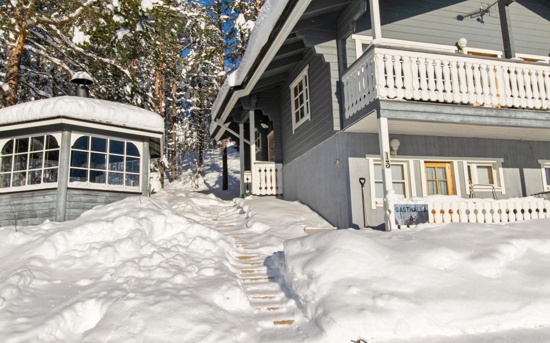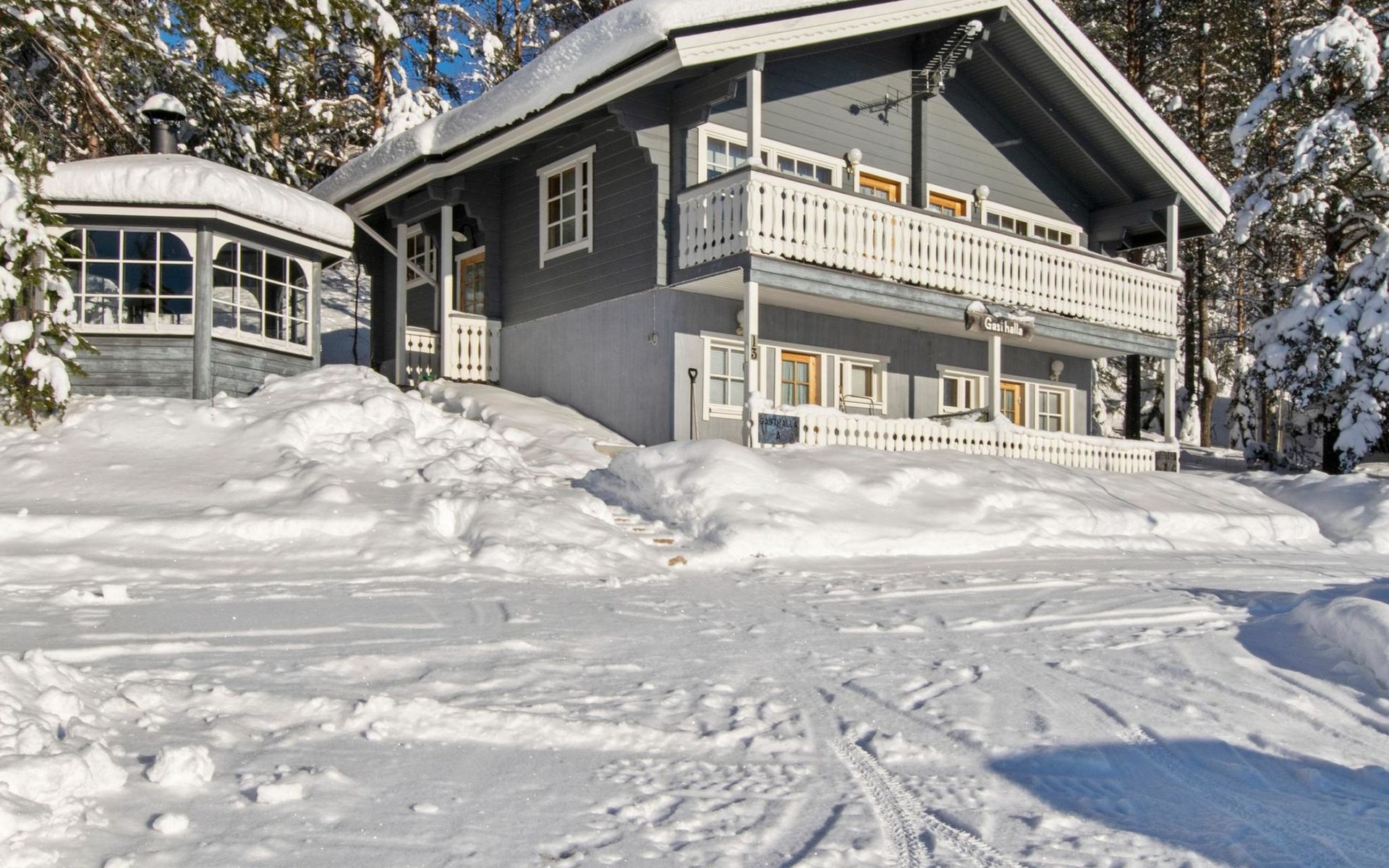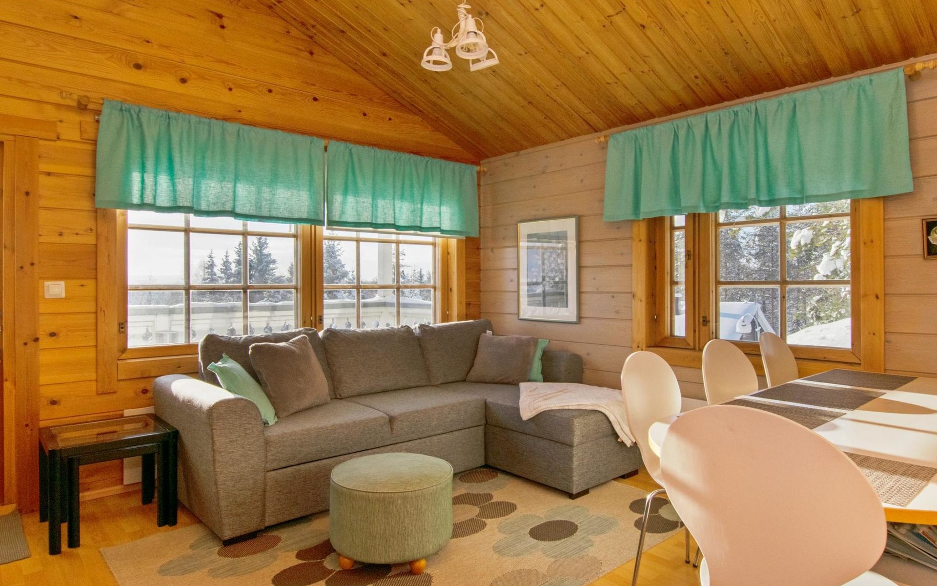 electric cooker, microwave oven, refrigerator with freezer, extractor fan, dishes, dishwasher, toaster, coffee maker, cleaning equipment, vacuum cleaner, TV, radio, car heating plug, an outdoor grill in summer use, in shared use boat. Firewood includes in price.