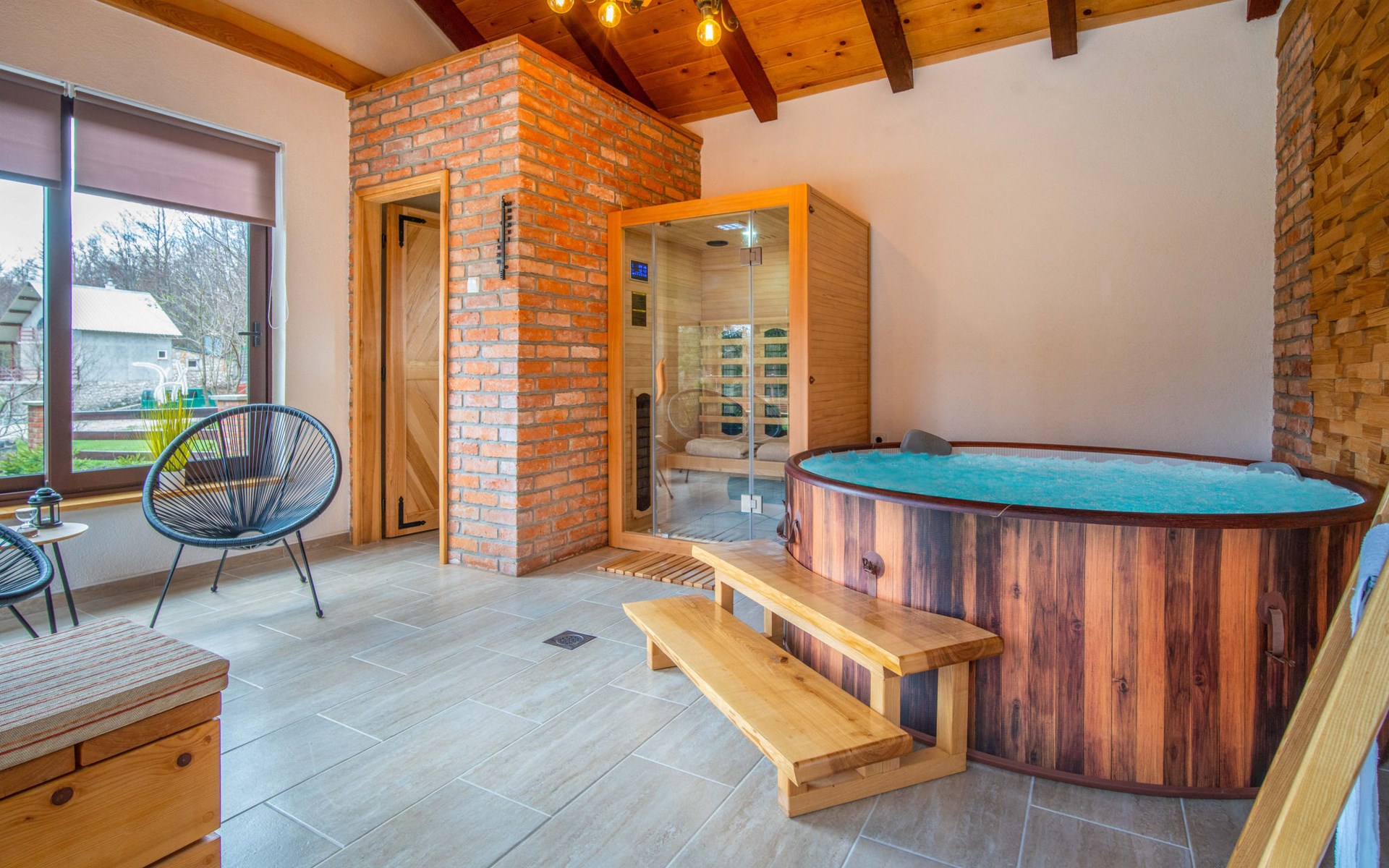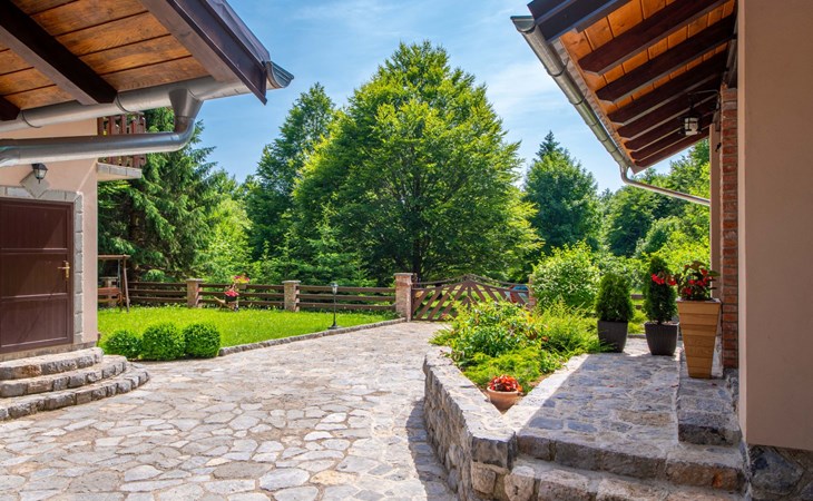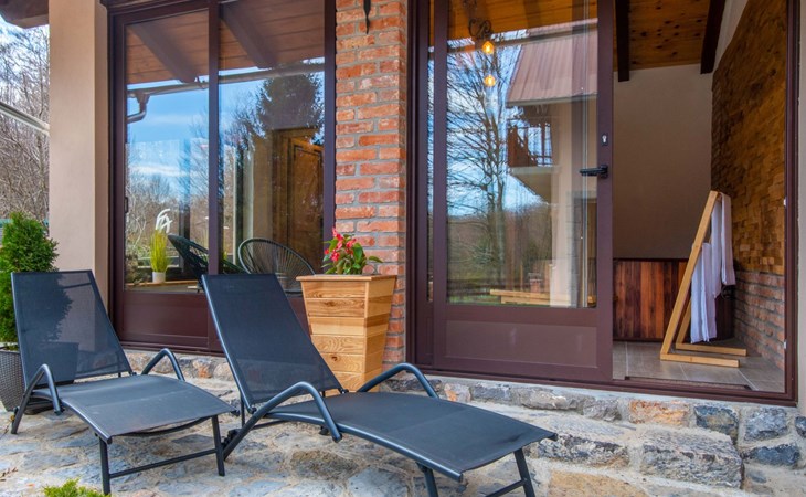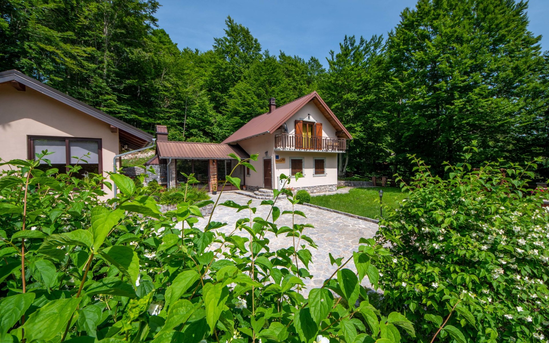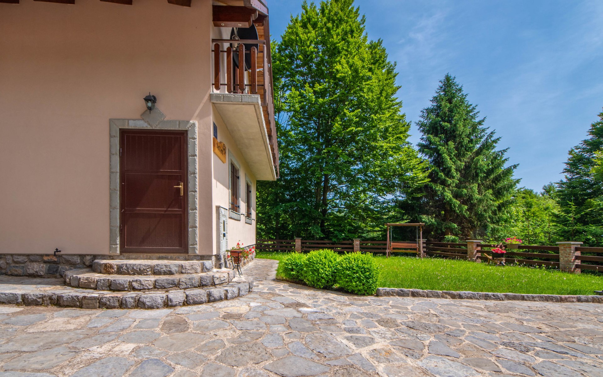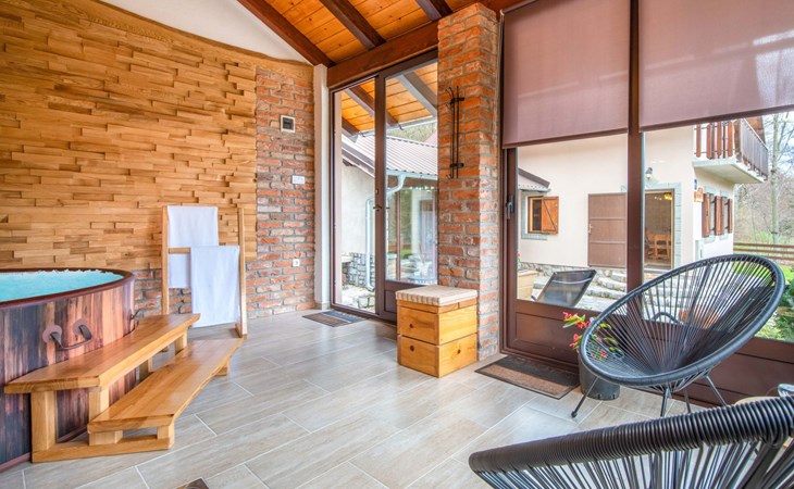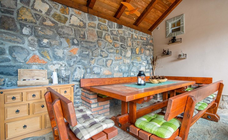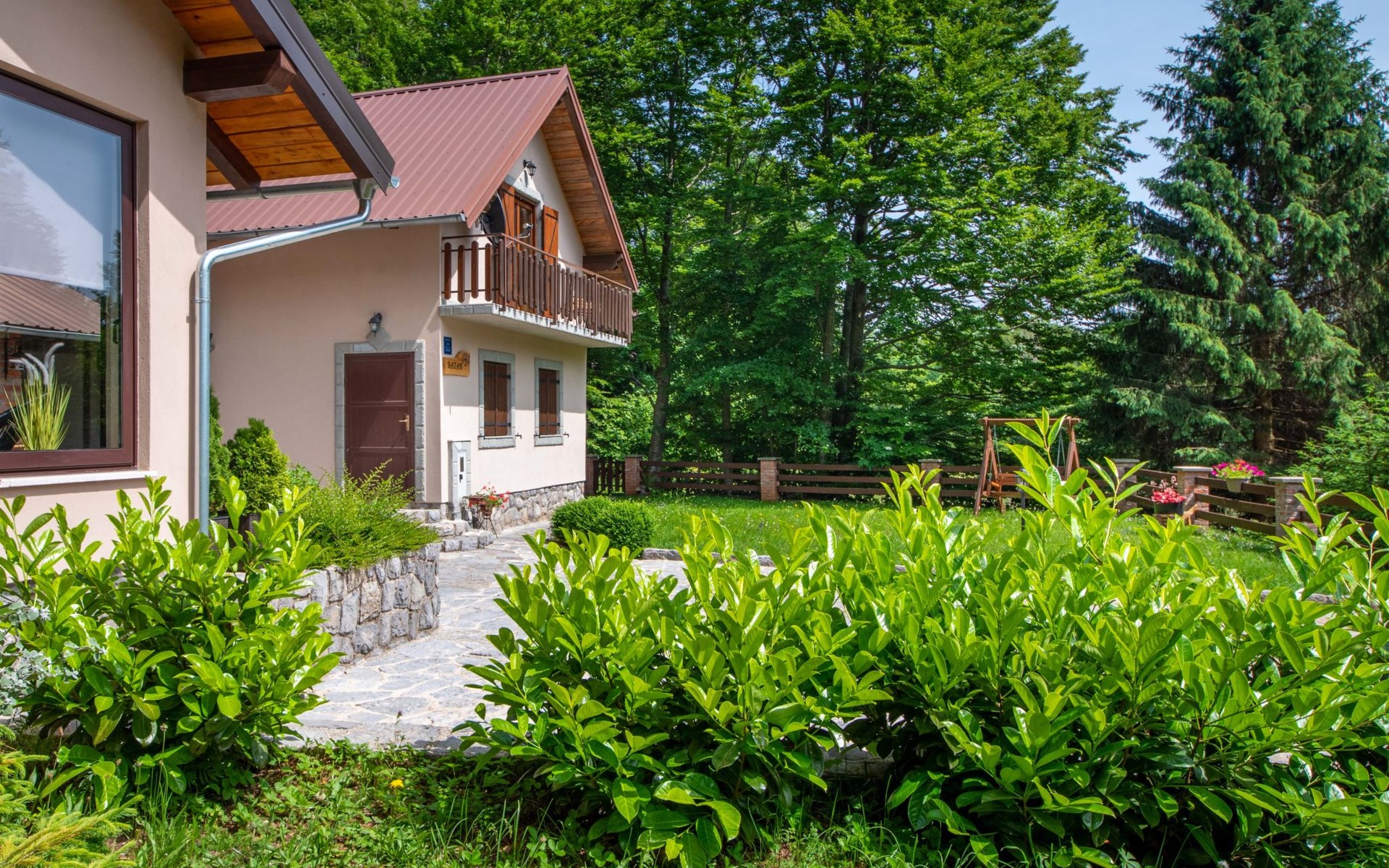 Lukovo 13 km from Fužine: Single-family house "Bazak", 2 storeys, surrounded by trees. In the hamlet Ravno, in a quiet, sunny position, 24 km from the sea, 14 km from the lake. Private: property 2'000 m2 with lawn 130 m2. Hot tub, barbecue house (swing). In the house: internet access, infrared sauna. Motor access (800 m via unmade road). Parking (for 3 cars) at the house on the premises. Shop 11 km, restaurant 1 km, bus stop 14.1 km, pebble beach 24 km, public bathing area 24 km. Riding stable 17 km, walking paths from the house 600 m, cycle lane 650 m. Well-known lakes can easily be reached: Bajer 14 km. The tap water has no drinking water quality.