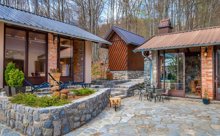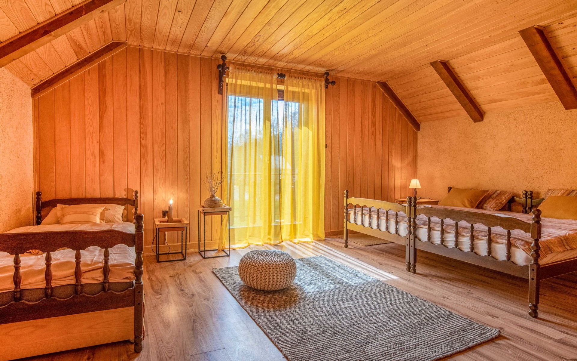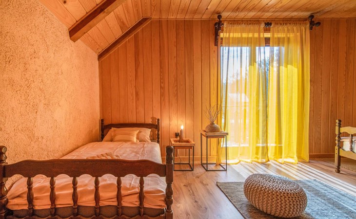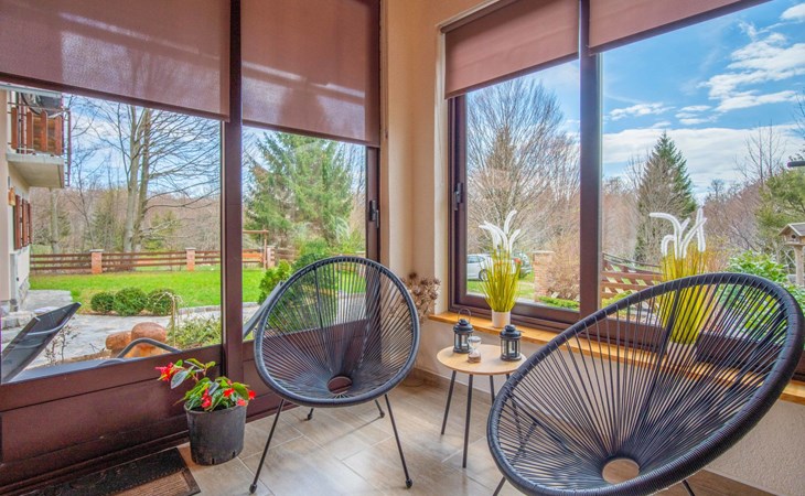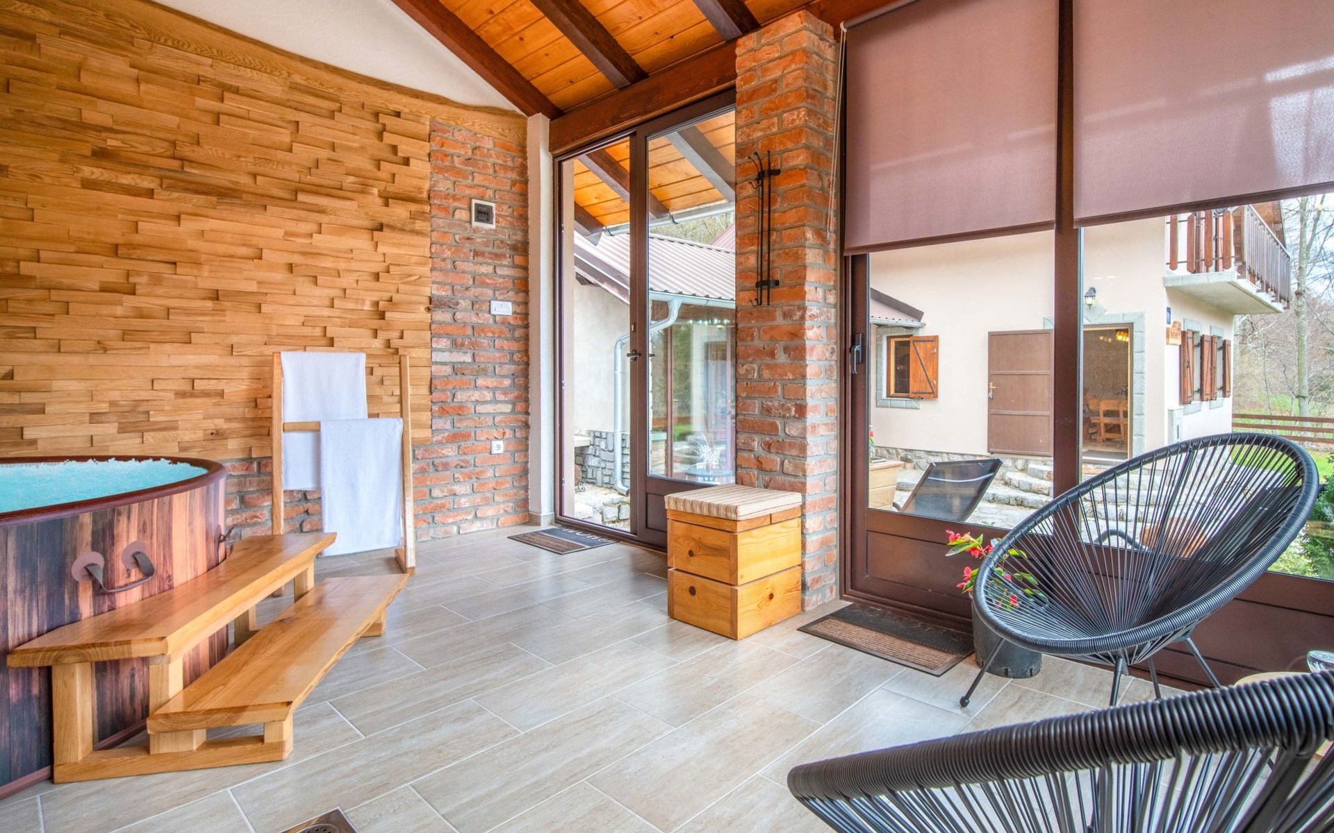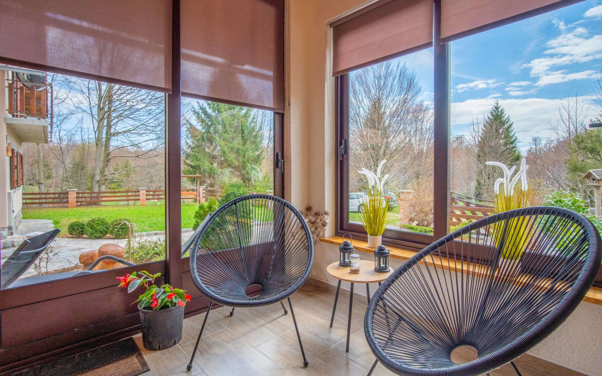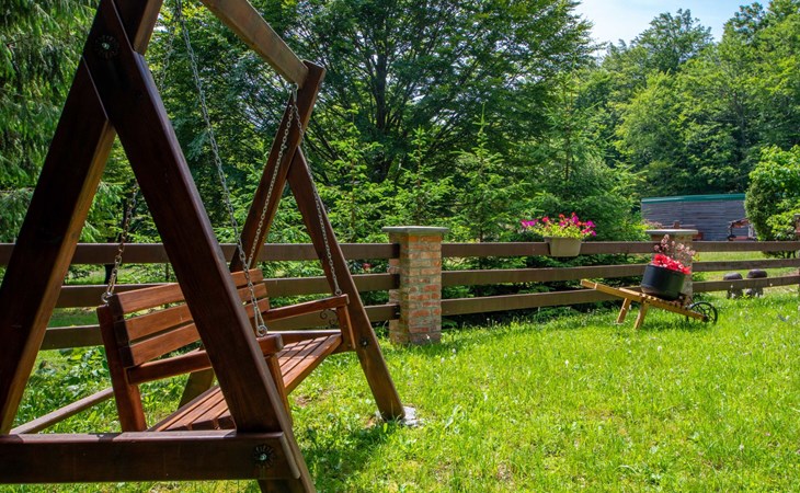 Lukovo 13 km from Fužine: Single-family house "Bazak", 2 storeys, surrounded by trees. In the hamlet Ravno, in a quiet, sunny position, 24 km from the sea, 14 km from the lake. Private: property 2'000 m2 with lawn 130 m2. Hot tub, barbecue house (swing). In the house: internet access, infrared sauna. Motor access (800 m via unmade road). Parking (for 3 cars) at the house on the premises. Shop 11 km, restaurant 1 km, bus stop 14.1 km, pebble beach 24 km, public bathing area 24 km. Riding stable 17 km, walking paths from the house 600 m, cycle lane 650 m. Well-known lakes can easily be reached: Bajer 14 km. The tap water has no drinking water quality.