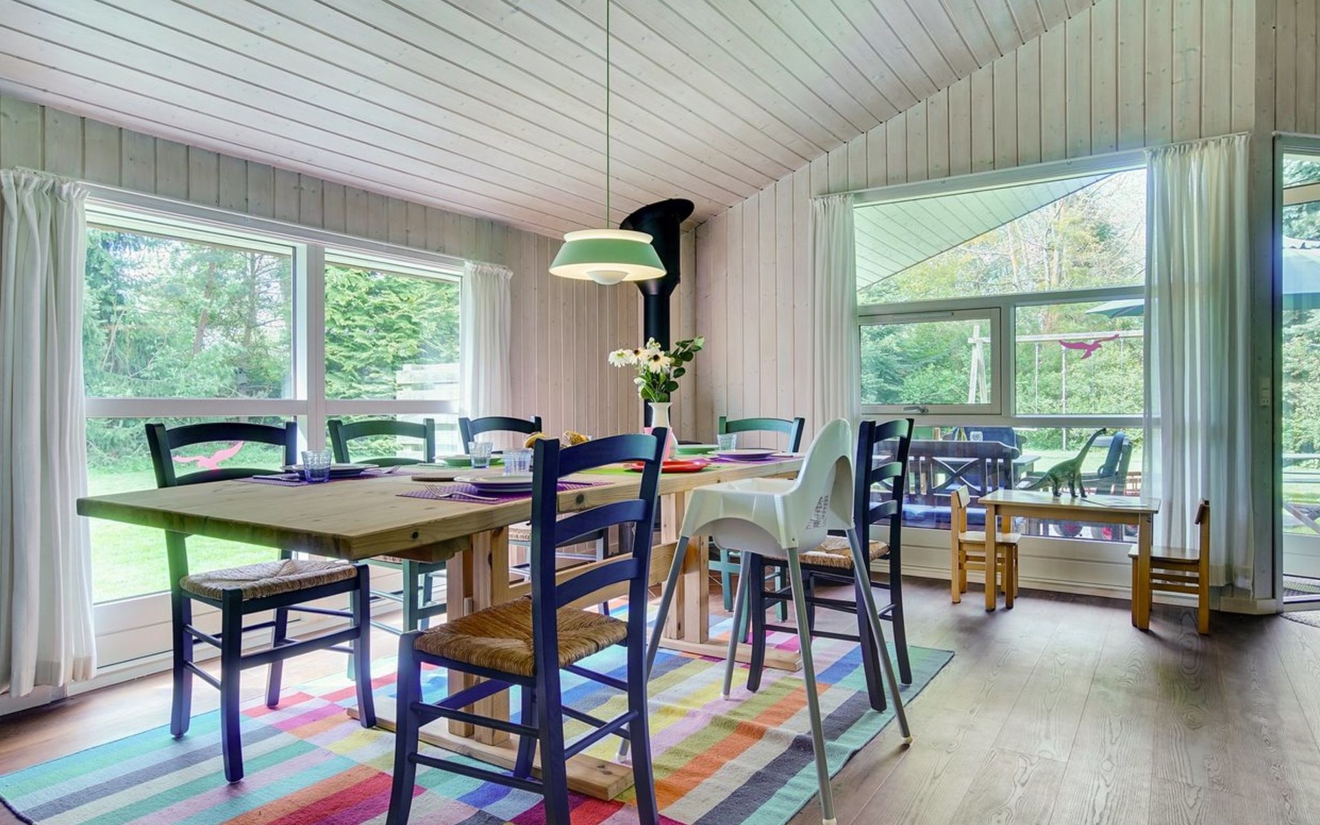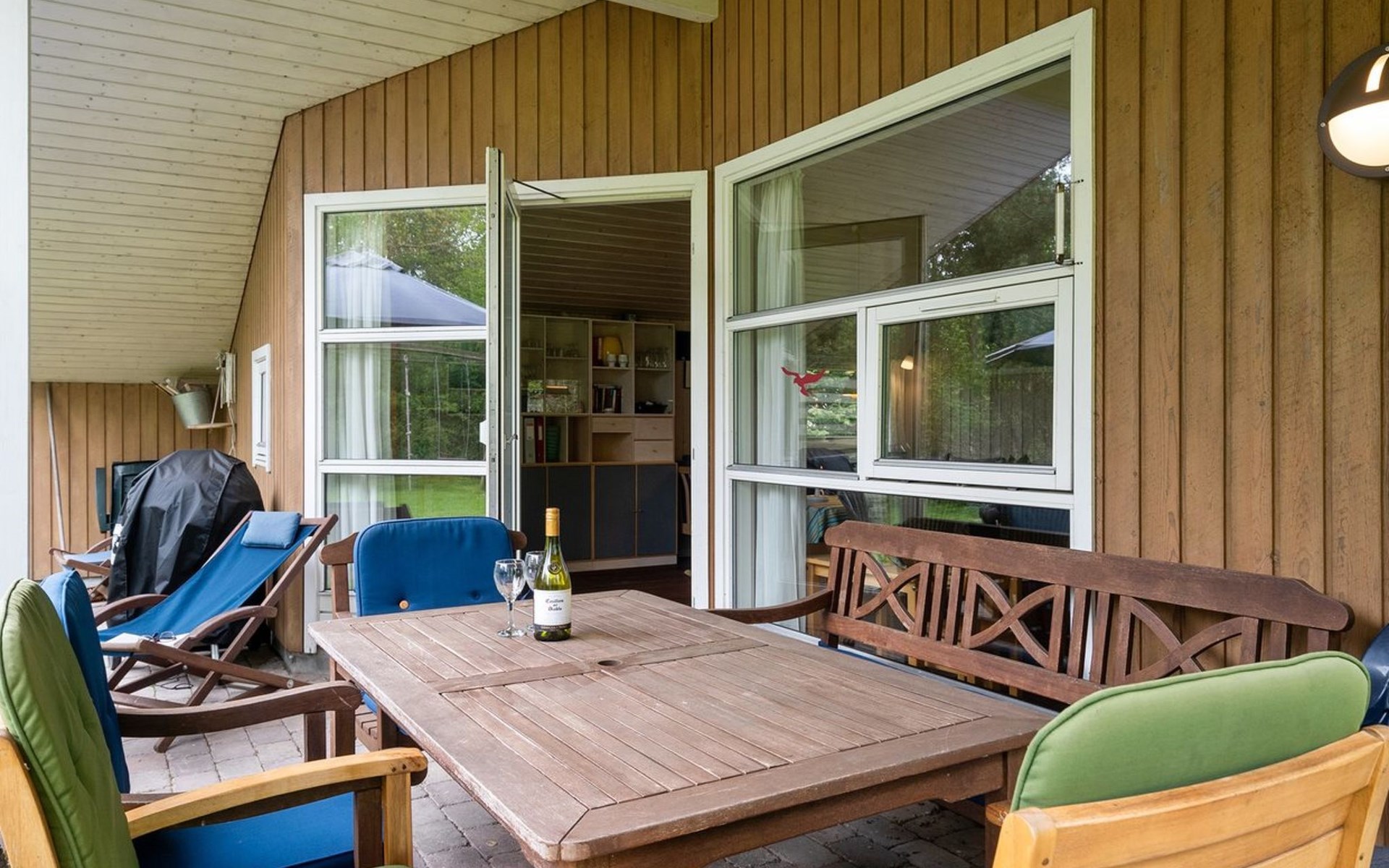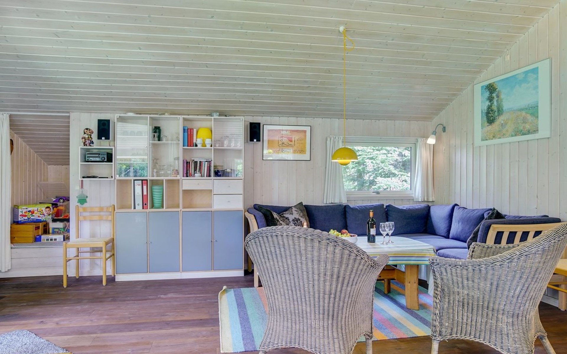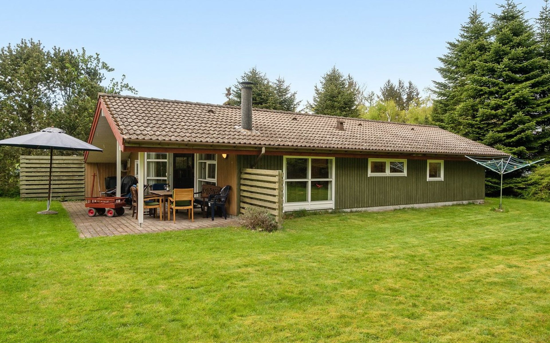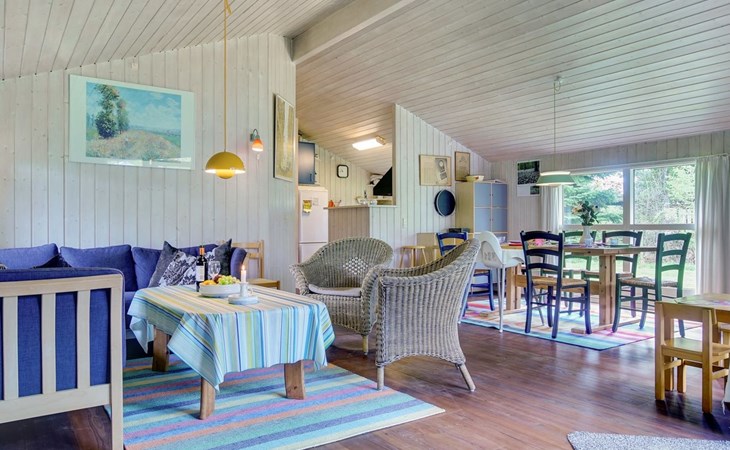 Single-family house, built in 1994. 200 m from the sea. Private: natural state property 1'200 m2. Terrace (20 m2), barbecue, children's playground (swing). In the house: sauna, washing machine, tumble dryer. Parking at the house. Grocery 800 m. Golf course 5 km. The owner does not accept any youth groups.