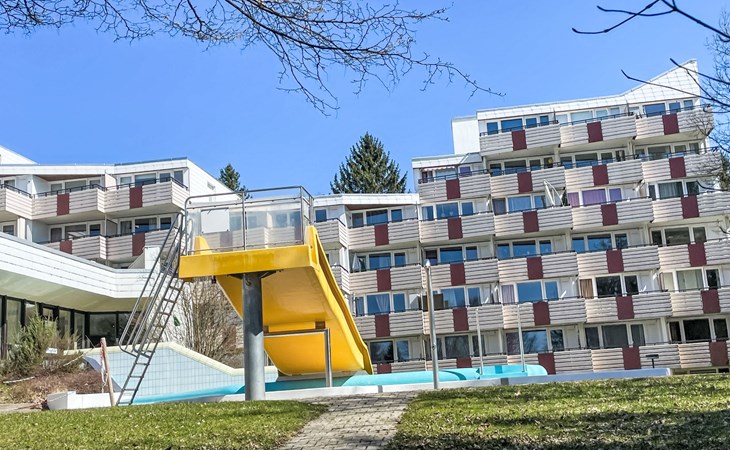 Resort "Predigtstuhl Resort". Above Sankt Englmar, 1 km from the centre, on a slope. For shared use: swimming pool, indoor pool (seasonal availability: 01.Jan. - 18.Nov. and 20.Dec. - 31.Dec.). Children's playground. In the complex: sauna, fitness room, spa area, table tennis, washing machine (extra). Public parking on the road. Central parking spaces. Supermarket 2 km, bus stop "Predigtstuhl" 350 m, outdoor swimming pool 20 m. Minigolf 75 m, walking paths from the house 30 m, slopes 1 km. Nearby attractions: Sommerrodelbahn Grün 3.5 km, Waldwipfelweg 5 km, Regensburg 67 km. Well-known ski regions can easily be reached: Predigtstuhl 1 km, Pröller 3.3 km, Großer Arber 45 km. Outdoor swimming pool (open from June to September).