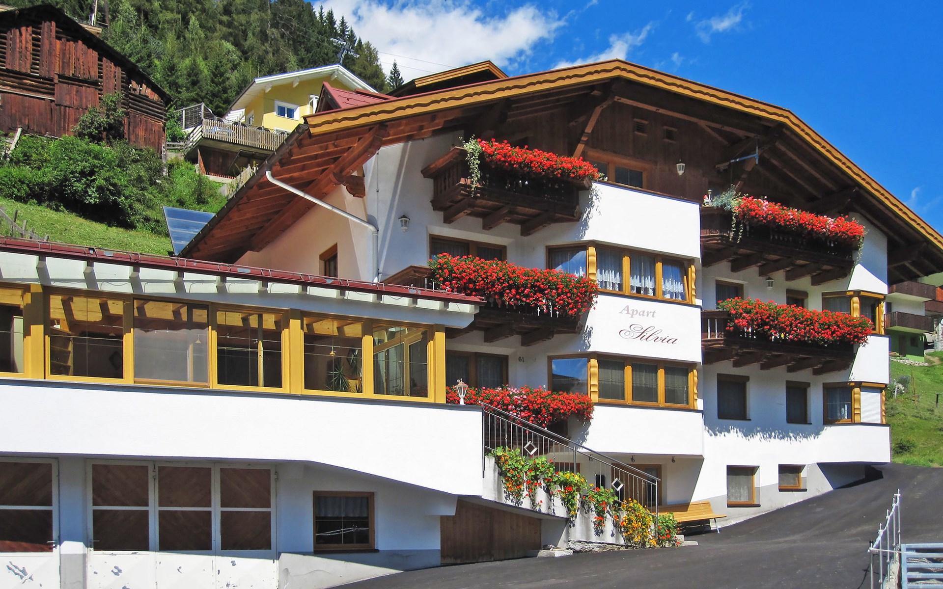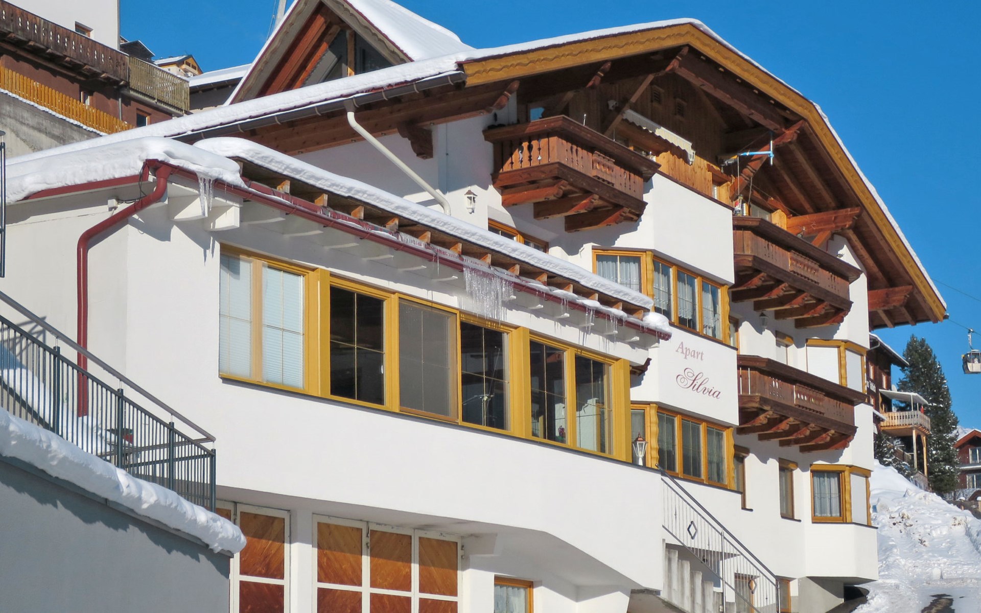 Apartment block "Silvia". 500 m from the centre of Kappl, 10 km from the centre of Ischgl, 20 km from the centre of Landeck, on a slope. For shared use: patio, garden furniture. In the house: storage room for skis, central heating system, ski boot dryer. Bread roll service. Parking on the premises. Shop, grocery 500 m, bus stop "Kappl Mahren" 5 m, railway station "Landeck-Zams Bahnhof" 21.9 km. Ski lift, gondola lift 300 m, ski bus stop 20 m. Please note: In case of good snow conditions, the house is accessible on skis. The owner lives in the same residence.