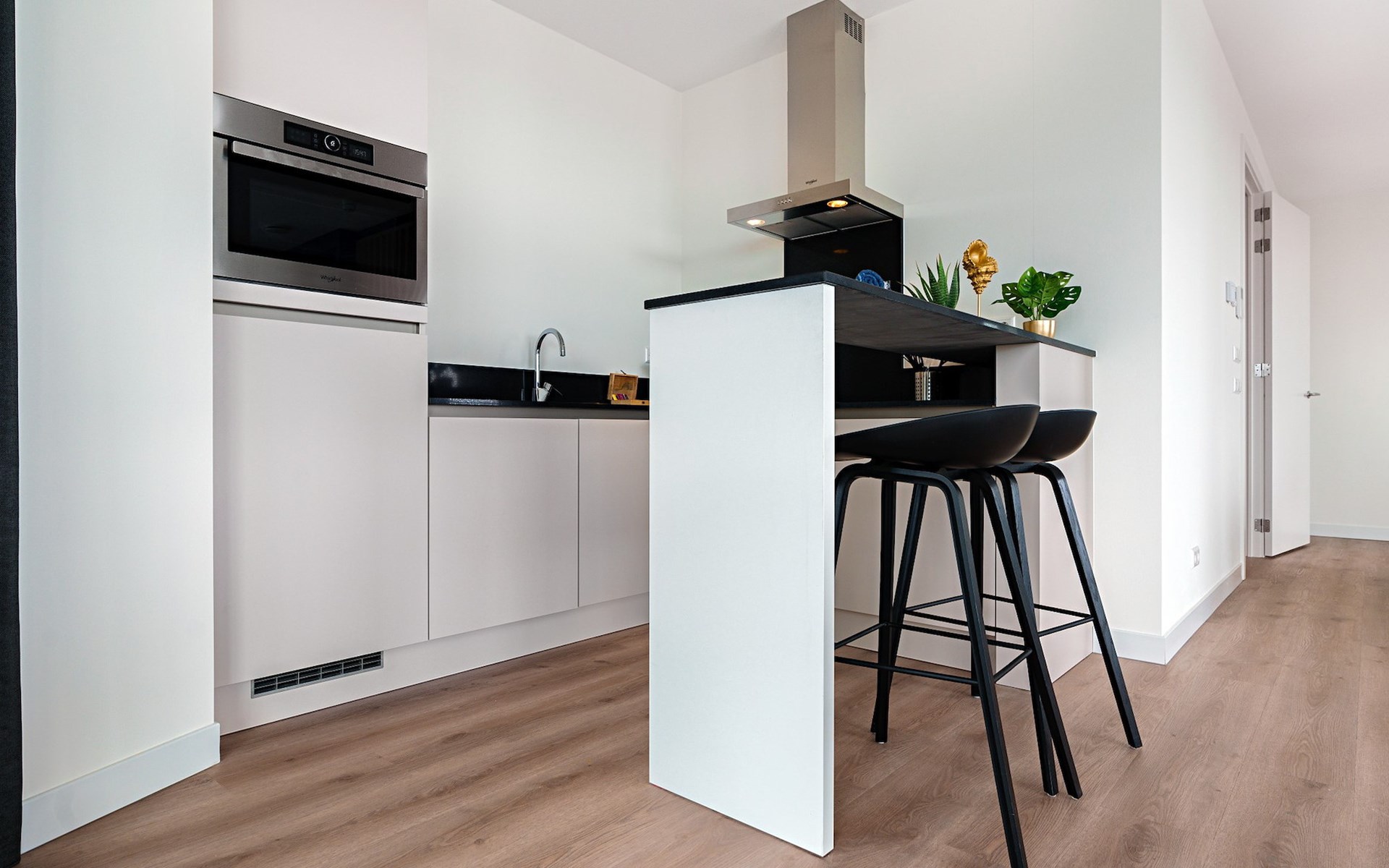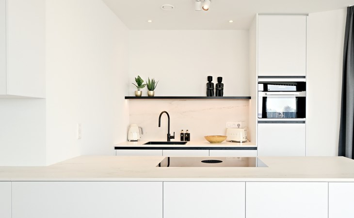 From the living room you can access the balcony that continues to the side of the apartment. This way you can always find an amazing spot to admire the view over the Westerschelde, the North Sea and the marina of Breskens. Enjoyment guaranteed!