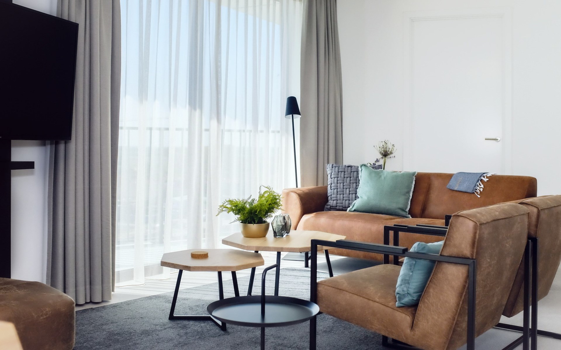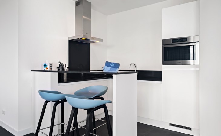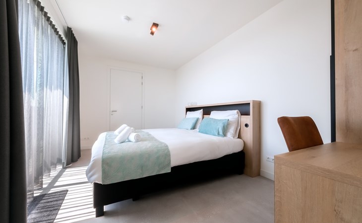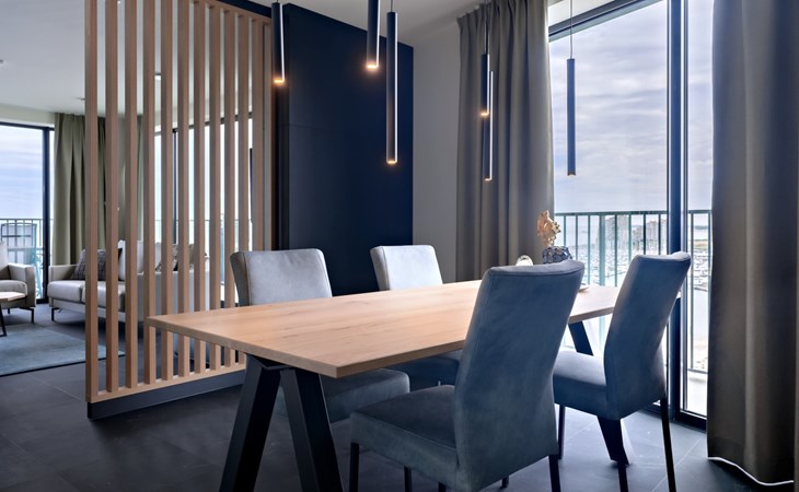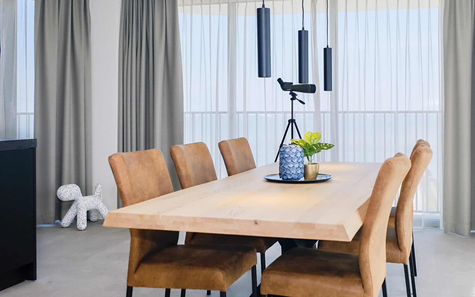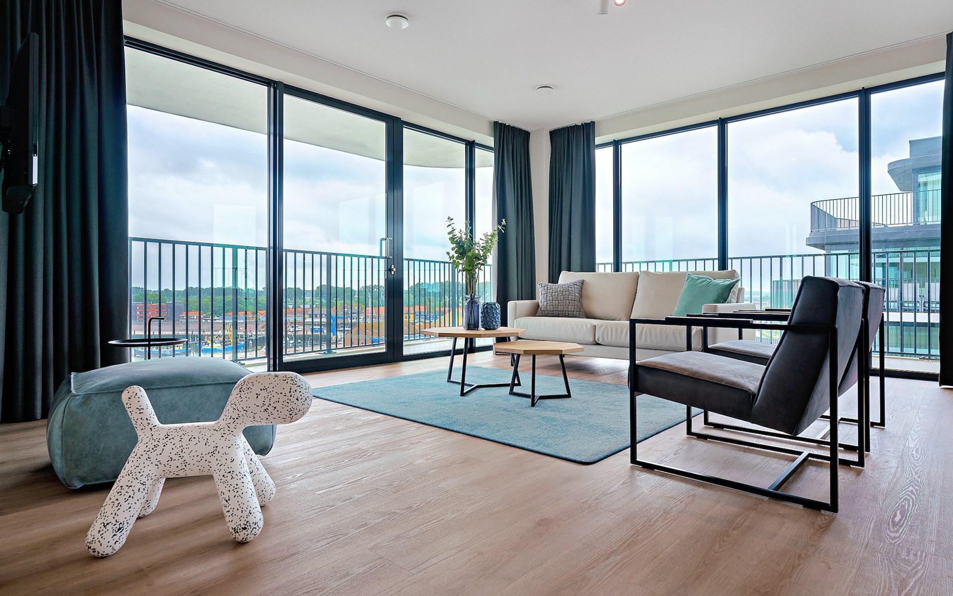 The Sea Pearl Panorama apartment is a comfortable apartment for up to 4 people at Dormio Breskens Apartments & Penthouses. The apartment is located in the upper half of the apartment complex (floor 6 up to 10) and is accessible via the stairs and the elevator. The apartment has a usable area of approximately 102m2. Because of the corner position you will have a panoramic view over the Westerschelde and the North Sea, among others.