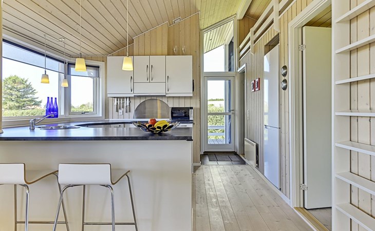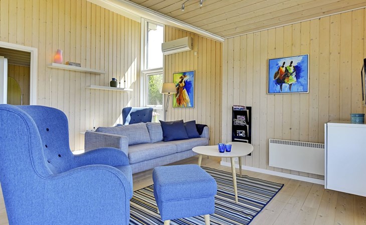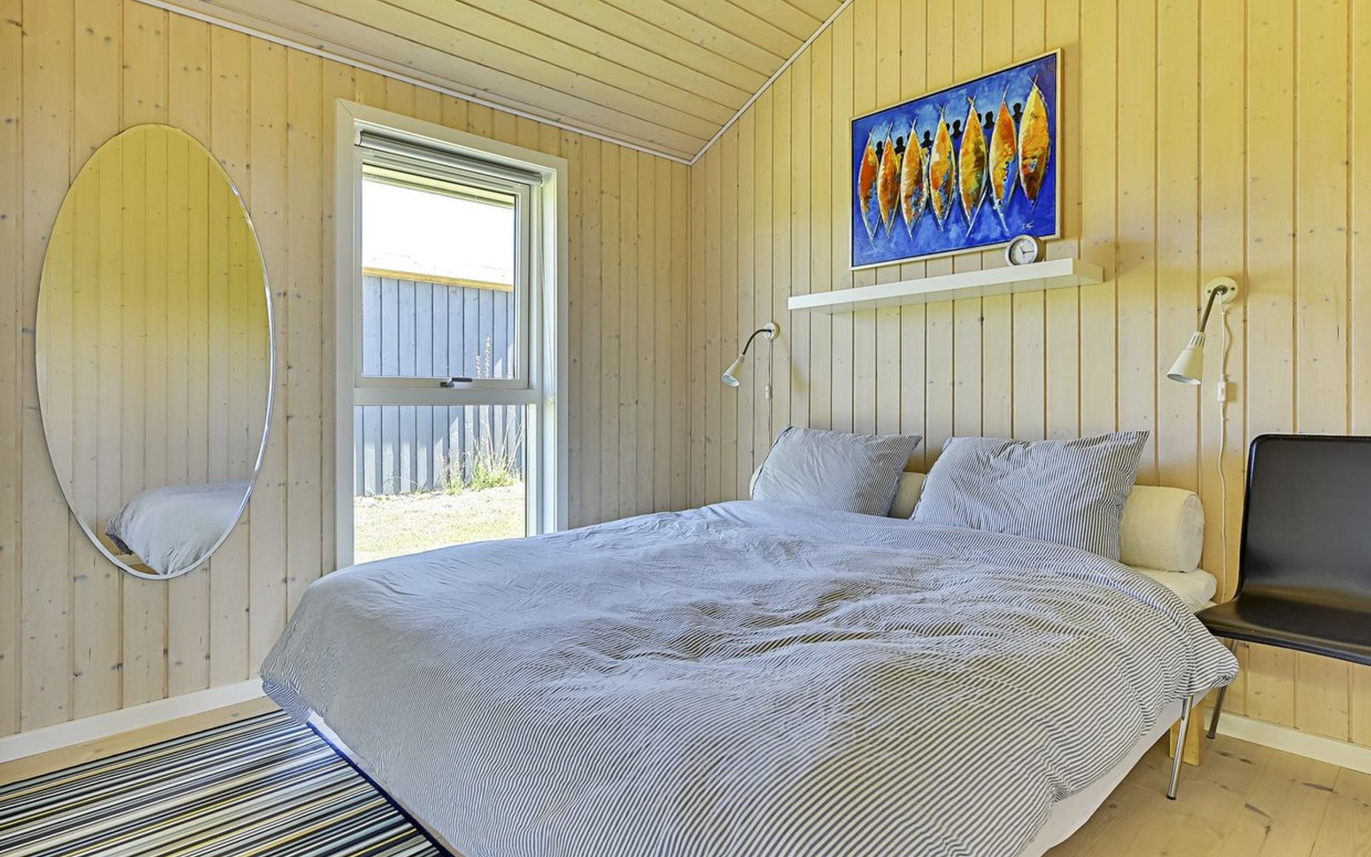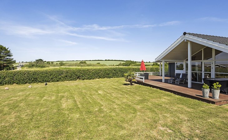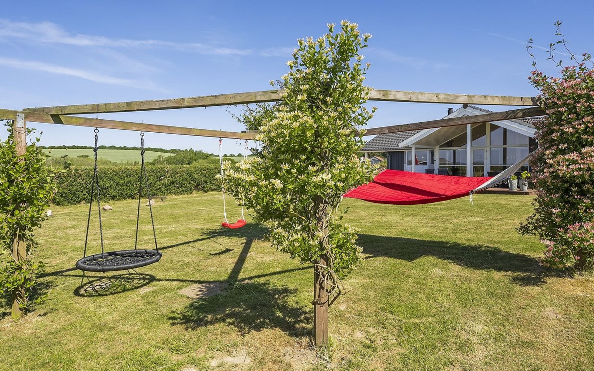 Single-family house, built in 2008. 100 m from the sea. Private: property 840 m2, well-kept garden. Outdoor shower, terrace (90 m2), children's playground (swing). In the house: sauna, washing machine, tumble dryer. Parking at the house. Grocery 12 km. Golf course 25 km. The owner does not accept any youth groups.