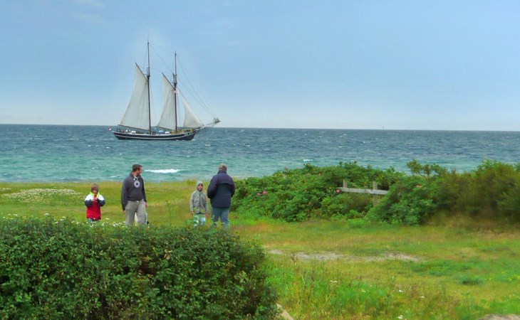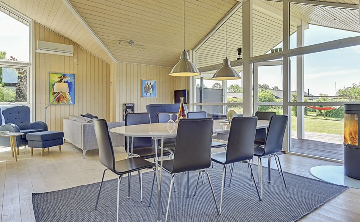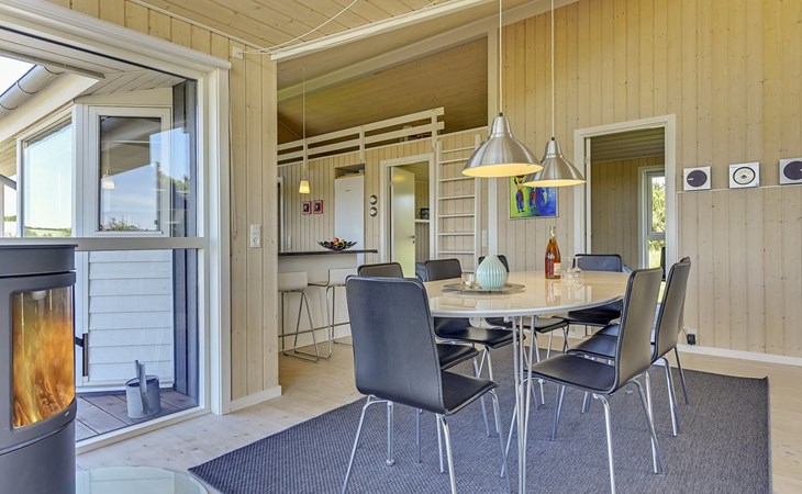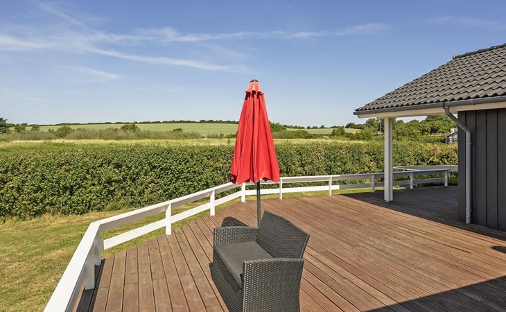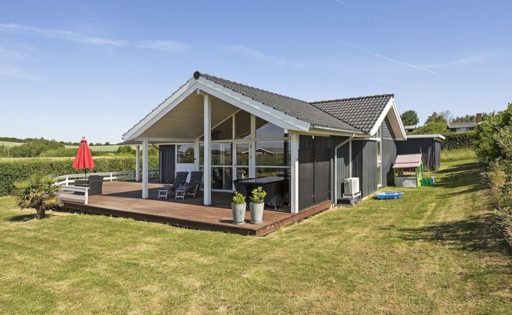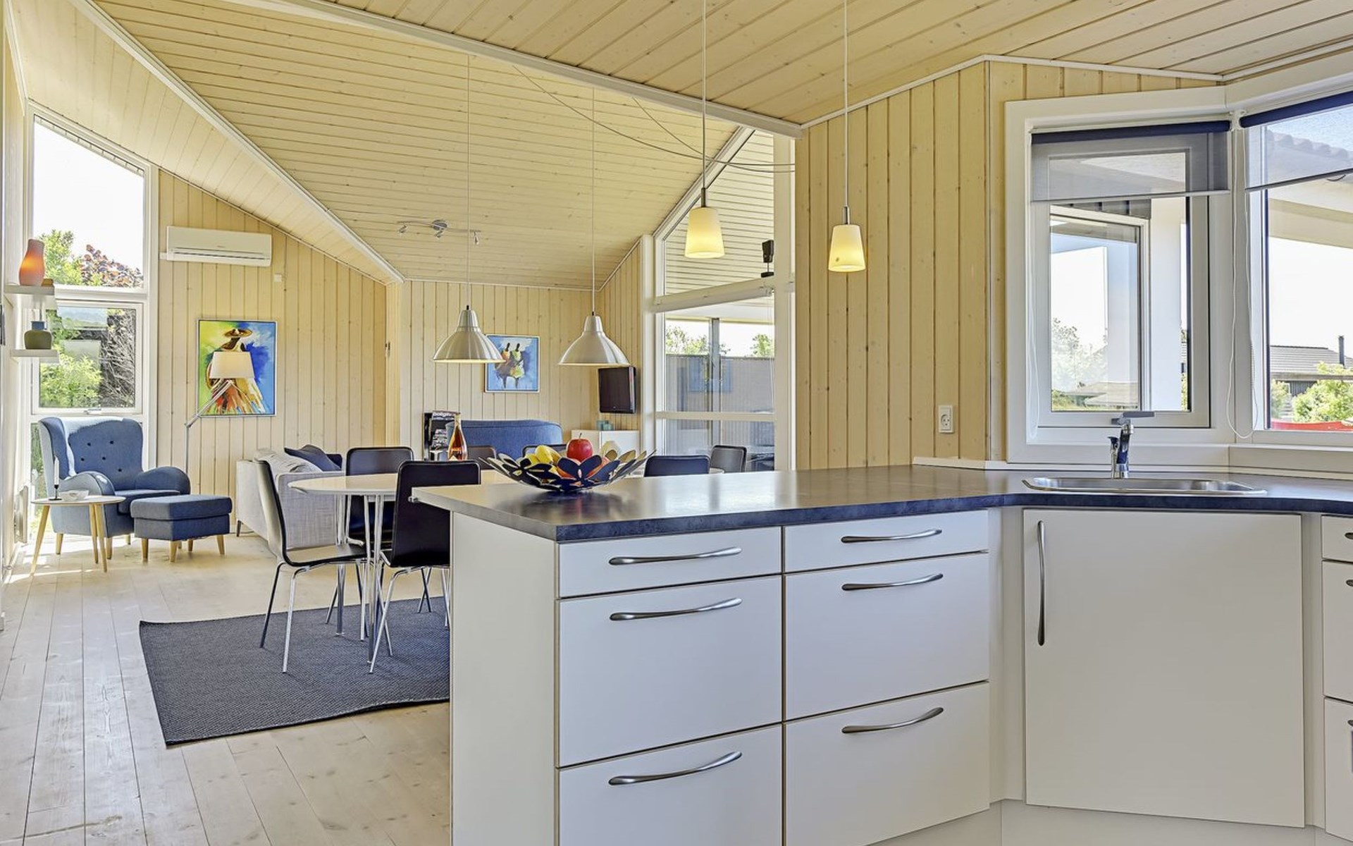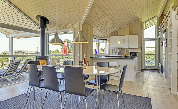 Single-family house, built in 2008. 100 m from the sea. Private: property 840 m2, well-kept garden. Outdoor shower, terrace (90 m2), children's playground (swing). In the house: sauna, washing machine, tumble dryer. Parking at the house. Grocery 12 km. Golf course 25 km. The owner does not accept any youth groups.