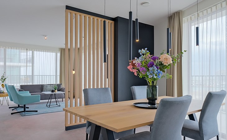 Book your stay at the Sea Pearl apartment in Zeeland with 2 bedrooms and 2 bathrooms.The Sea Pearl apartment is located on the corner of the apartment complex and is accessible via the stairs and the elevator. The apartment can accommodate up to 4 people and has a usable area of approximately 102m2. From the apartment you have a view over the Westerschelde.