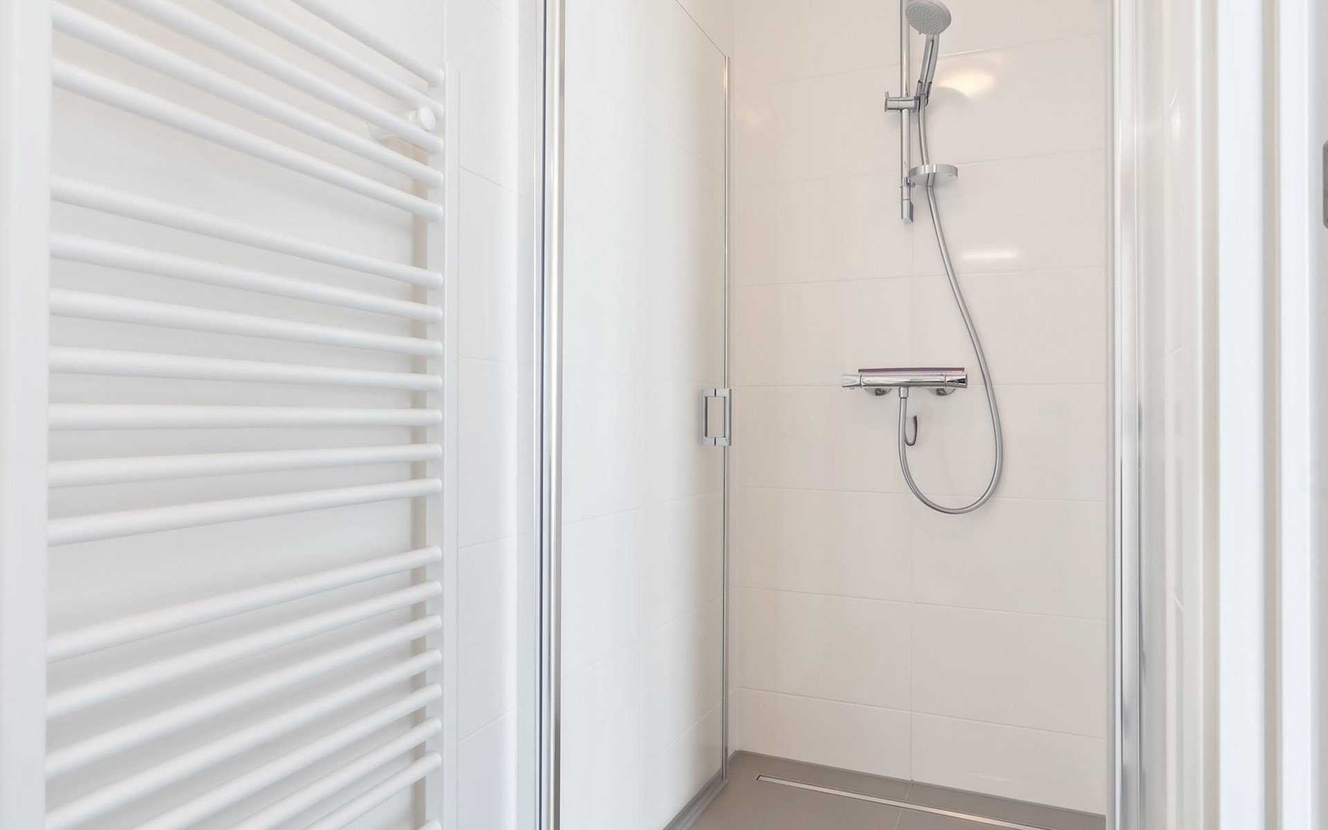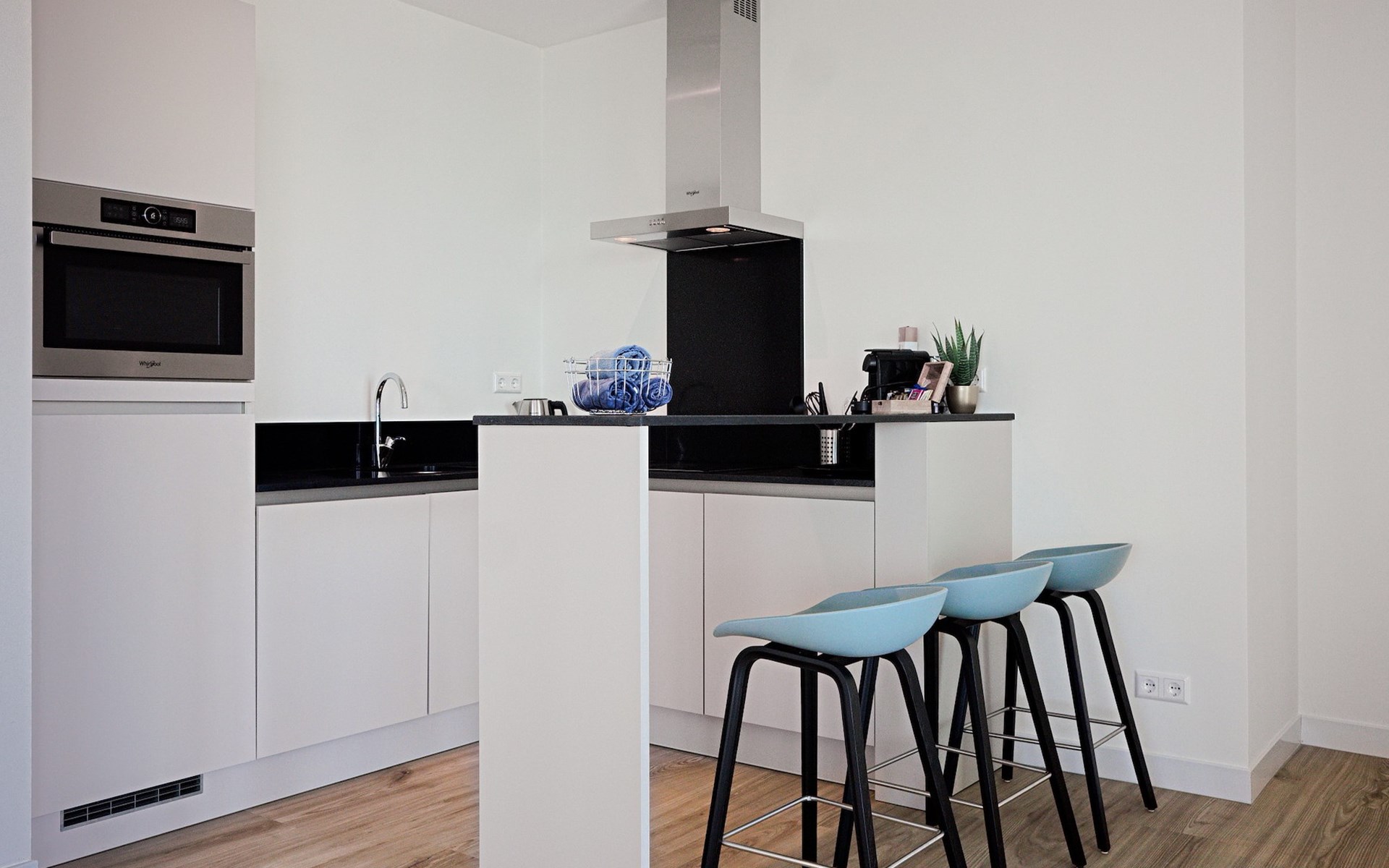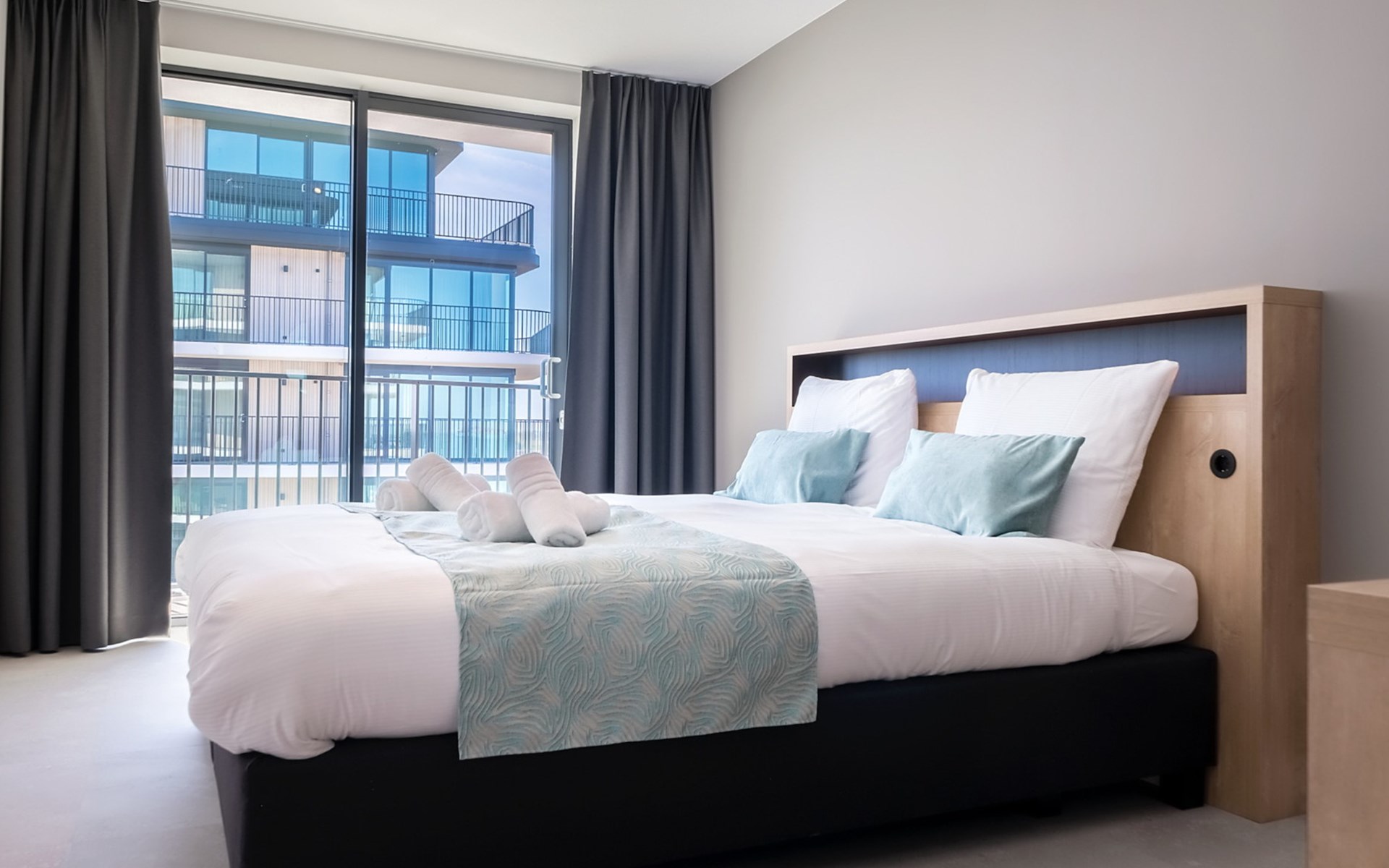 The spacious balcony is located all around the apartment and offers multiple viewpoints over the surrounding area, including the North Sea. A wonderful place to get together with the whole travel party and enjoy a delicious bite or drink! The balcony is accessible from the living room and all bedrooms.