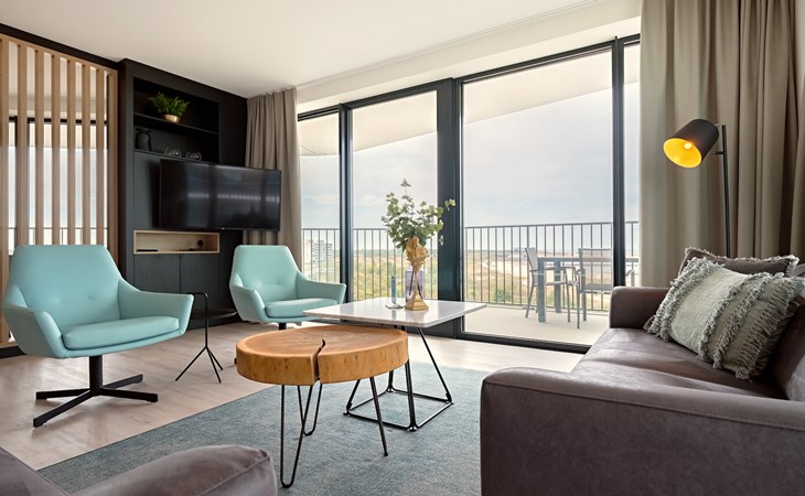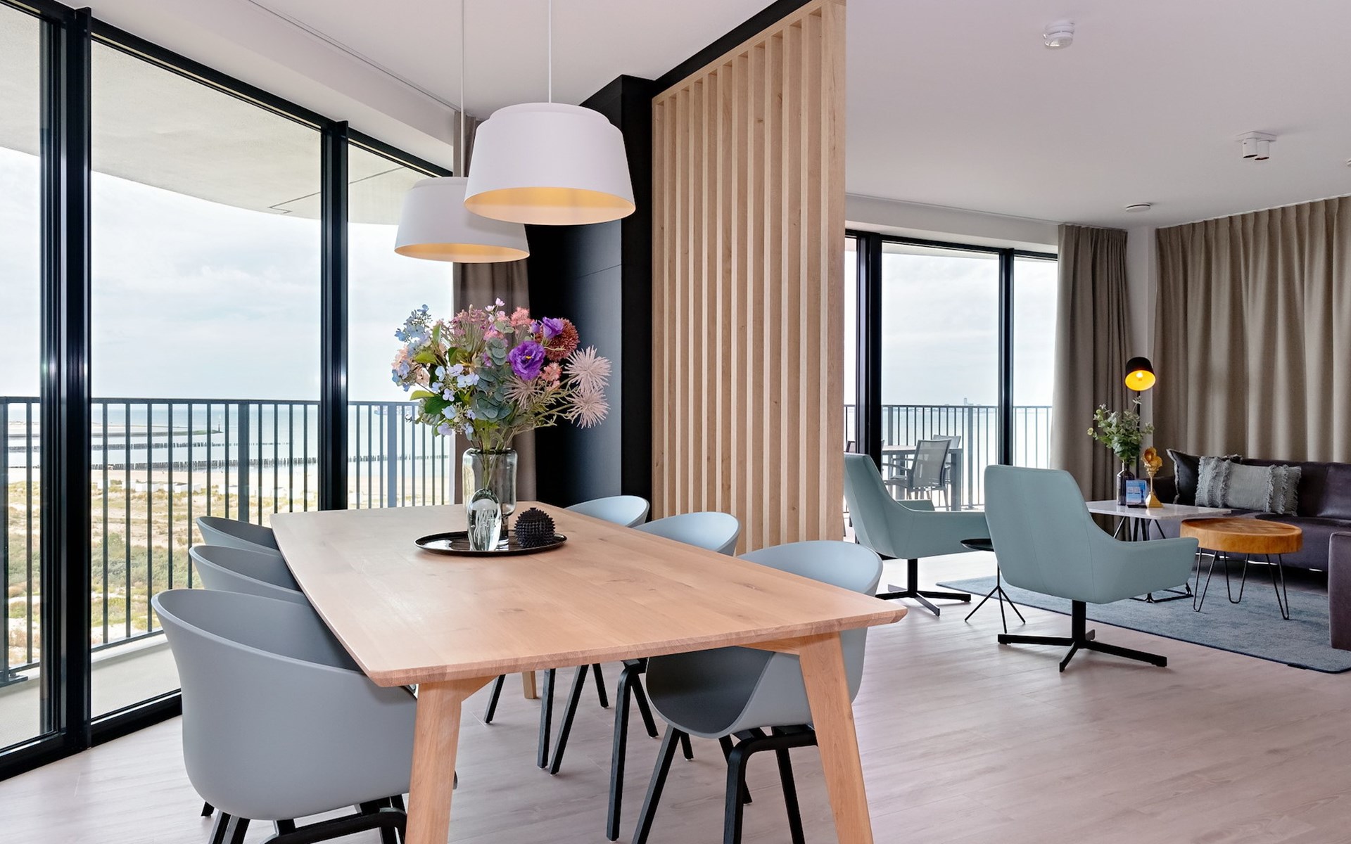 Stay in the modern Ocean Panorama apartments and enjoy an amazing stay with a seaside view in Zeeland! The apartment is located in the upper half of the building (floor 6 up to 10) and is accessible via the stairs and the elevator. The apartment has 3 bedrooms, 2 bathrooms and a usable area of approximately 135m2.