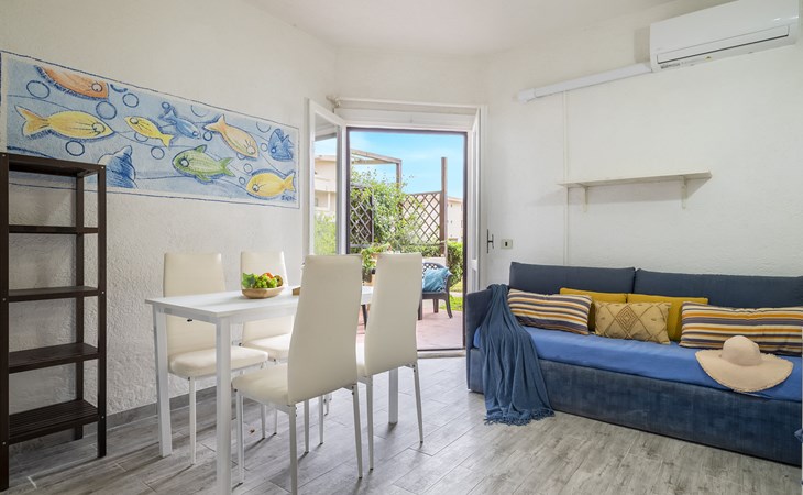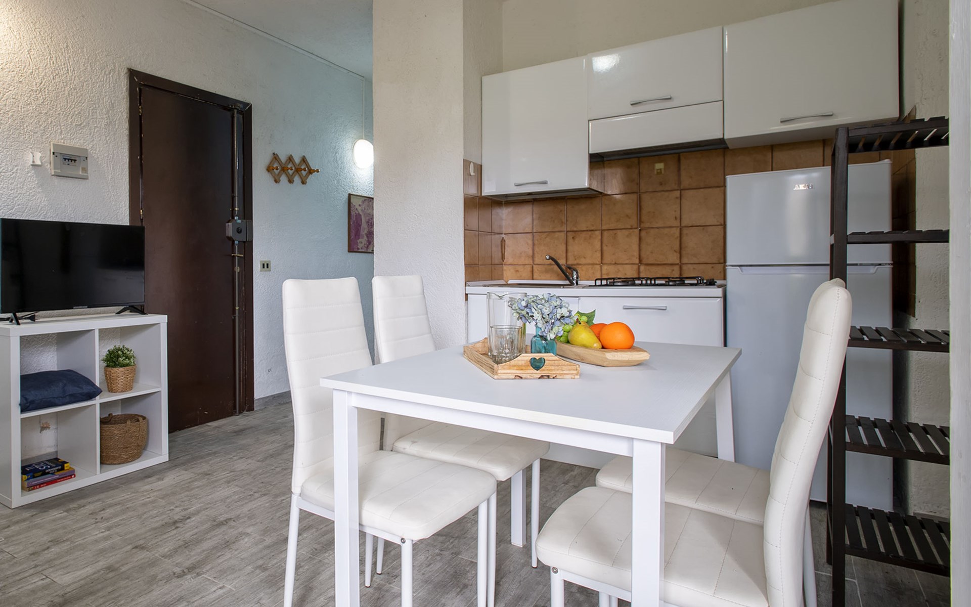 Residence "Terza Spiaggia". 800 m from the centre of Golfo Aranci, in a quiet, sunny position, 150 m from the sea, 150 m from the beach. For shared use: garden with lawn and plants, swimming pool (18 x 9 m, seasonal availability: 15.Jun. - 15.Sep.). Parking on the premises. Supermarket, restaurant, bar 800 m, bus stop 10 km, sandy beach "Terza Spiaggia" 150 m. Nearby attractions: Porto Rotondo 12 km, Olbia 15 km, San Pantaleo 22 km. Please note: car recommended, no lift.