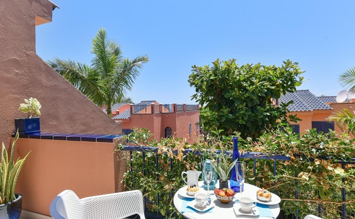 Modern, comfortable holiday development "Duplex Meloneras Bahia AA153". In the centre of Meloneras, in a central, sunny position. For shared use: swimming pool (seasonal availability: 01.Jan. - 31.Dec.). Children's pool, outdoor shower. Private: garden, public parking on the road. Shop, supermarket, restaurant 450 m, bus stop "Hospital Meloneras" 800 m. The owner does not accept any youth groups. Please note: airfield 35 km from the property. Neighbourhood highly sensitive to noise. Quietness and good behaviour expected.
