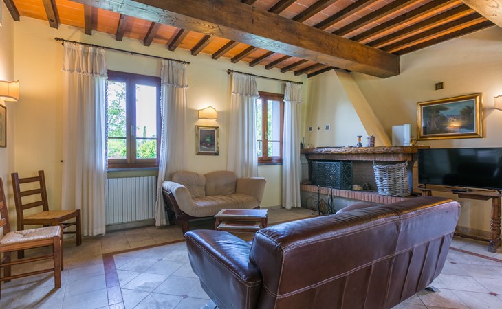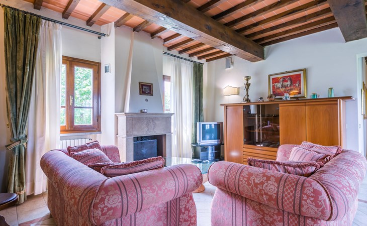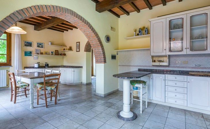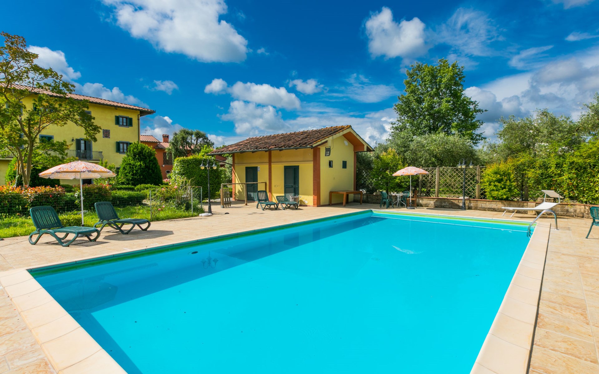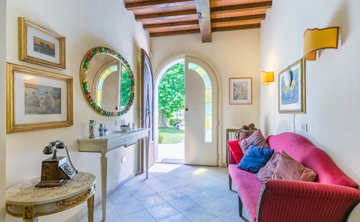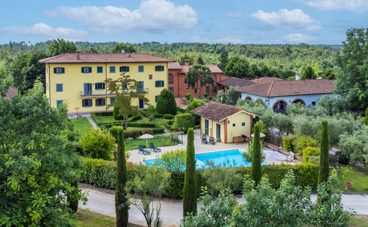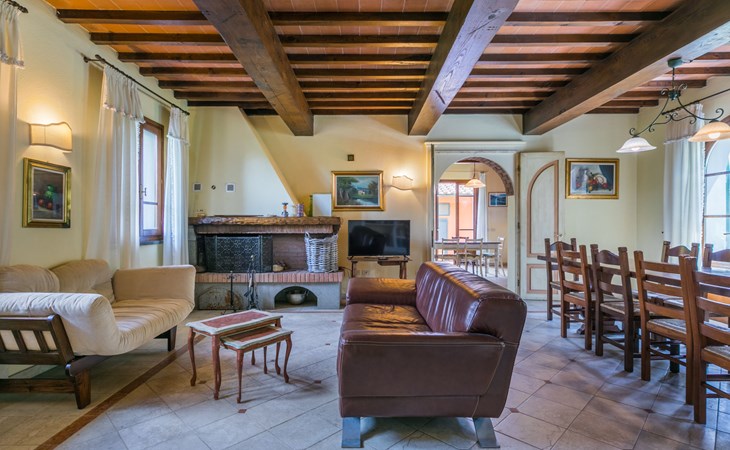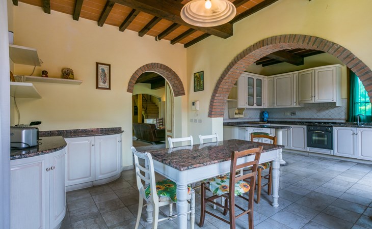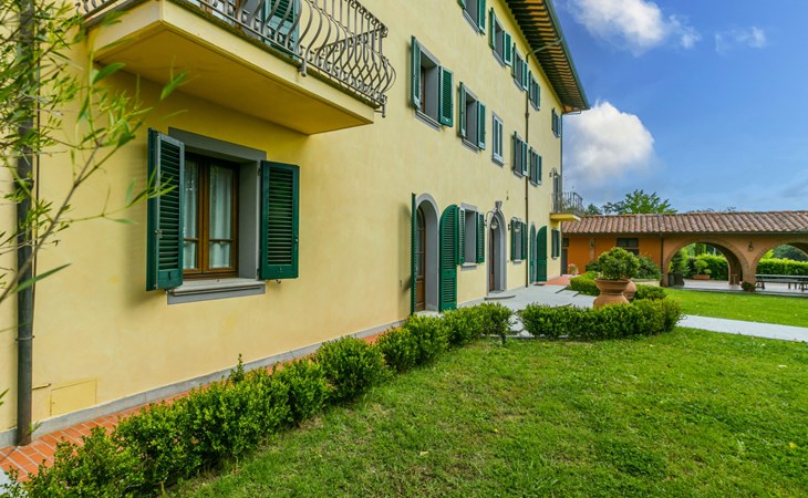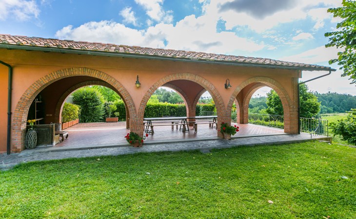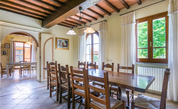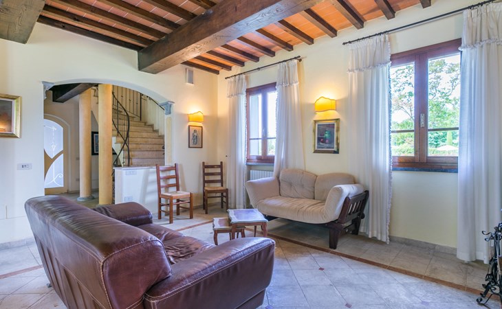 Villa "Elena". 9 km from the centre of Fucecchio, 40 km from the centre of Pisa, 50 km from the centre of Firenze, 52 km from the sea. For shared use: property 40 ha (fenced). Tennis (2 x hard court). Private: garden 1'600 m2 (not fenced), swimming pool (12 x 6 m, depth 150 cm, seasonal availability: 26.Apr. - 03.Oct.). Pool house with WC, garden furniture, barbecue. In the complex: reception, restaurant, breakfast room, in summer, use of sauna is included (1 times per week), in winter, use of sauna is included, lift, heating available only from 01.Nov. - 15.Apr.. Parking on the premises. Shop 9 km, grocery 9 km, supermarket 9 km, bus stop 2.5 km, sandy beach "Viareggio - Forte dei Marmi" 52 km, thermal baths "Montecatini Terme" 20 km. Golf course (18 hole) 21 km, riding stable 100 m. Nearby attractions: Montecarlo 16 km, San Miniato 18 km, Vinci 20 km, Lucca 27 km, San Gimignano 55 km. Please note: suitable for families, suitable for seniors. Suitable for events. Property ref. IT5282.910.1 is situated on the same property. Villa Elena can be booked on request for up to 10 people (ref. IT5282.900.2). Customers can take advantage of riding inside the structure (extra) and sport fishing in the inland lake (included in price).
