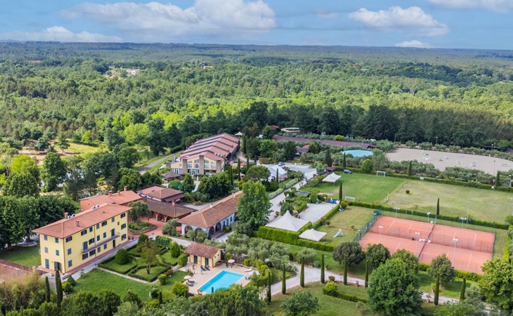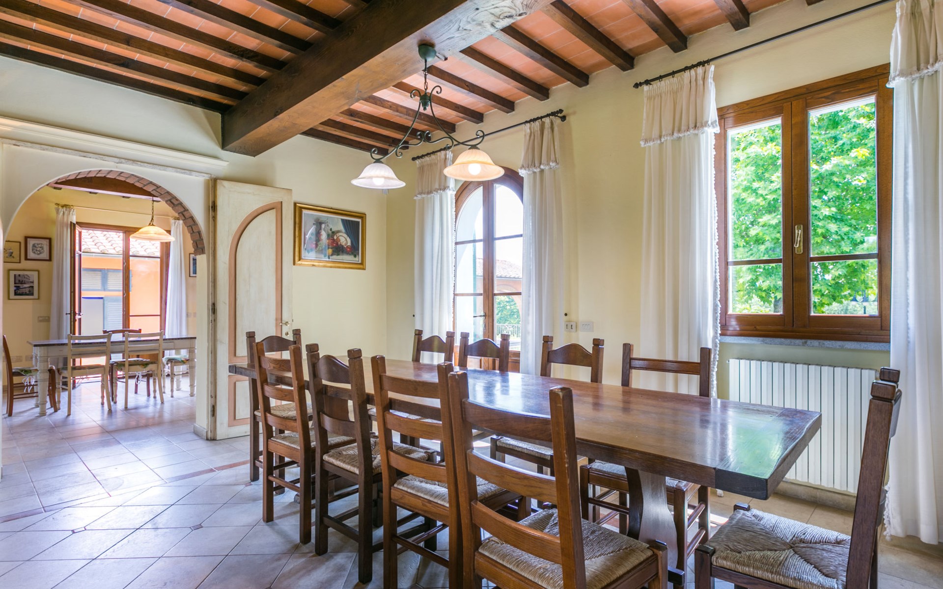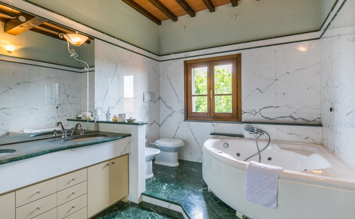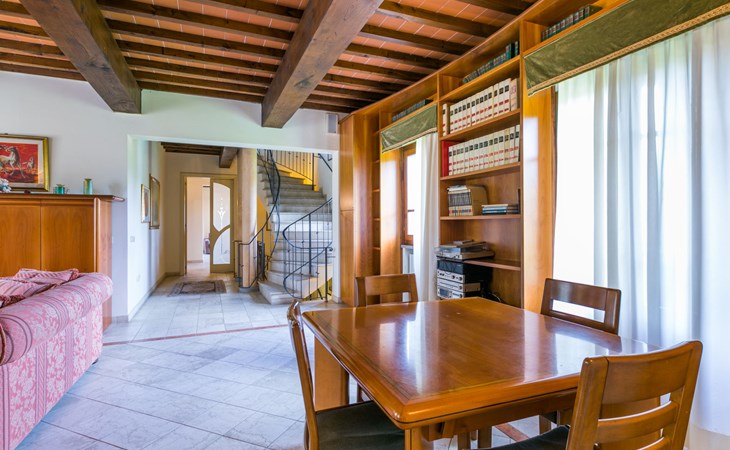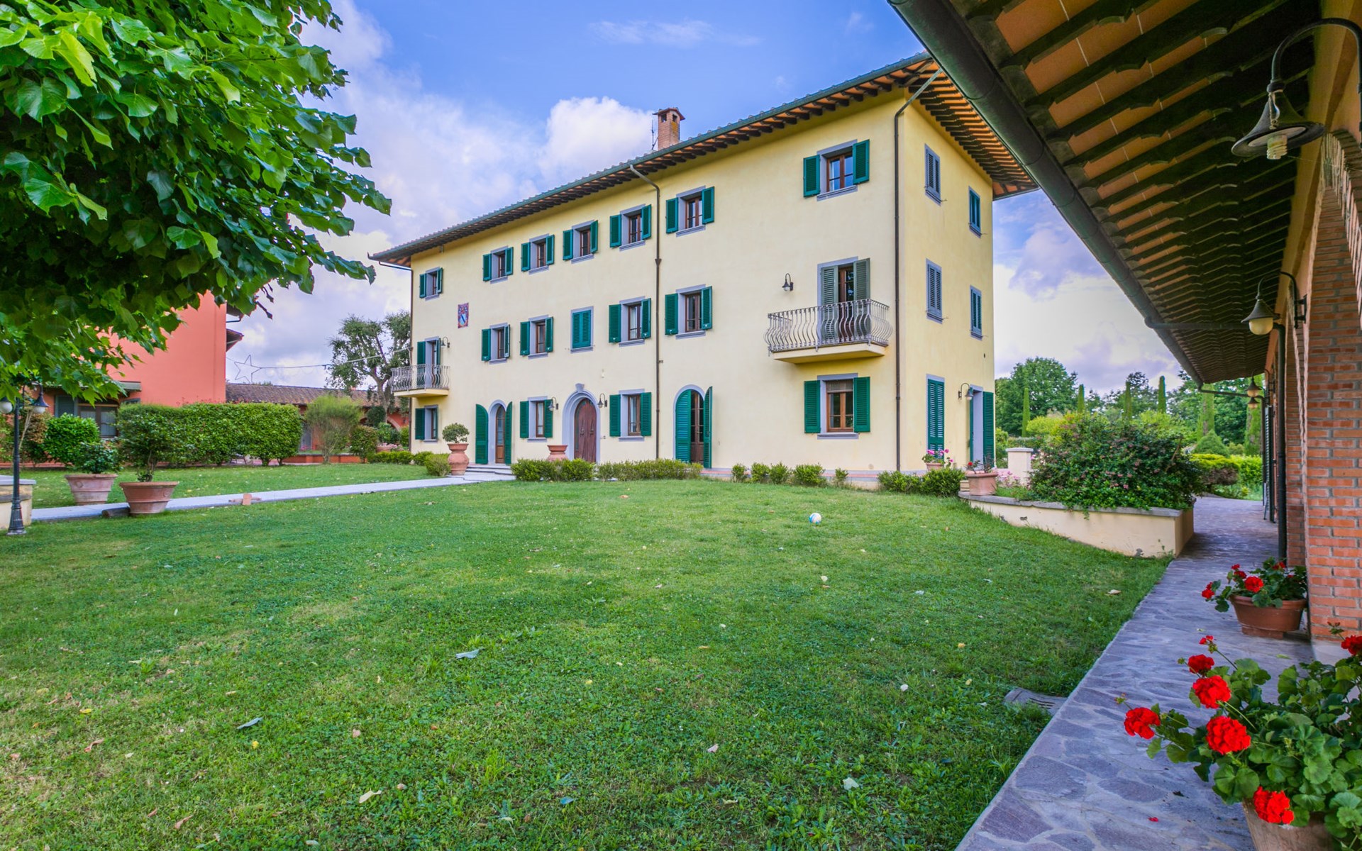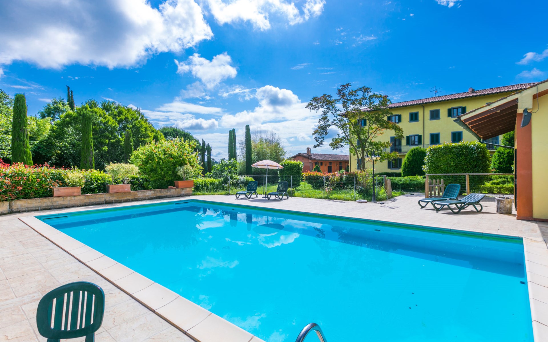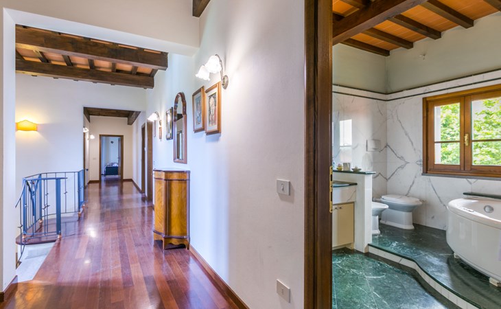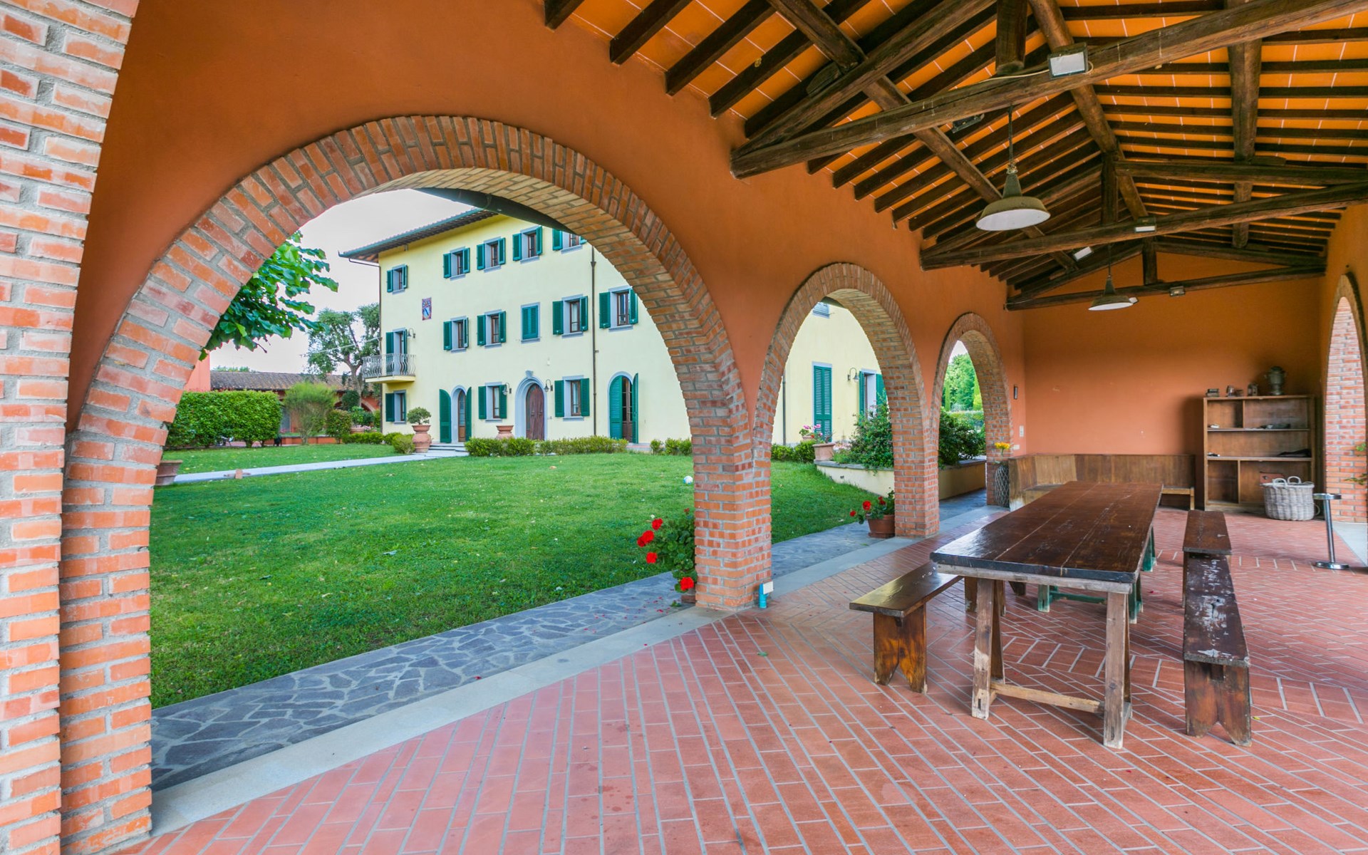 Villa "Elena". 9 km from the centre of Fucecchio, 40 km from the centre of Pisa, 50 km from the centre of Firenze, 52 km from the sea. For shared use: property 40 ha (fenced). Tennis (2 x hard court). Private: garden 1'600 m2 (not fenced), swimming pool (12 x 6 m, depth 150 cm, seasonal availability: 26.Apr. - 03.Oct.). Pool house with WC, garden furniture, barbecue. In the complex: reception, restaurant, breakfast room, in summer, use of sauna is included (1 times per week), in winter, use of sauna is included, lift, heating available only from 01.Nov. - 15.Apr.. Parking on the premises. Shop 9 km, grocery 9 km, supermarket 9 km, bus stop 2.5 km, sandy beach "Viareggio - Forte dei Marmi" 52 km, thermal baths "Montecatini Terme" 20 km. Golf course (18 hole) 21 km, riding stable 100 m. Nearby attractions: Montecarlo 16 km, San Miniato 18 km, Vinci 20 km, Lucca 27 km, San Gimignano 55 km. Please note: suitable for families, suitable for seniors. Suitable for events. Property ref. IT5282.910.1 is situated on the same property. Villa Elena can be booked on request for up to 10 people (ref. IT5282.900.2). Customers can take advantage of riding inside the structure (extra) and sport fishing in the inland lake (included in price).