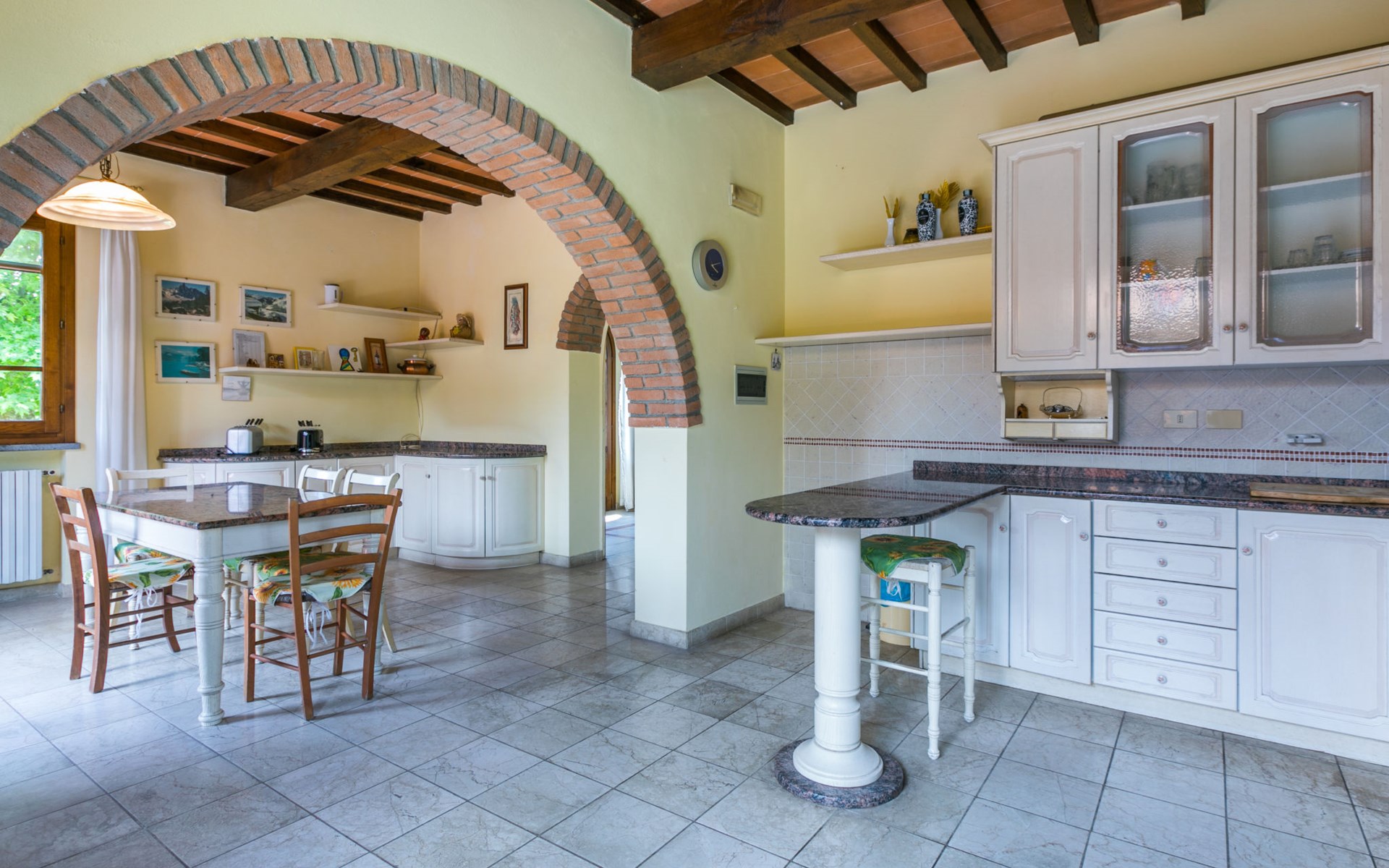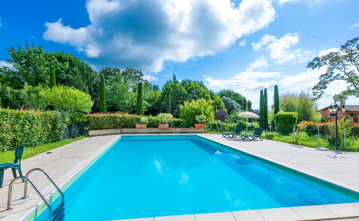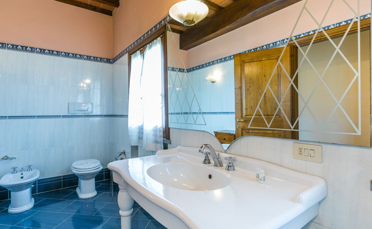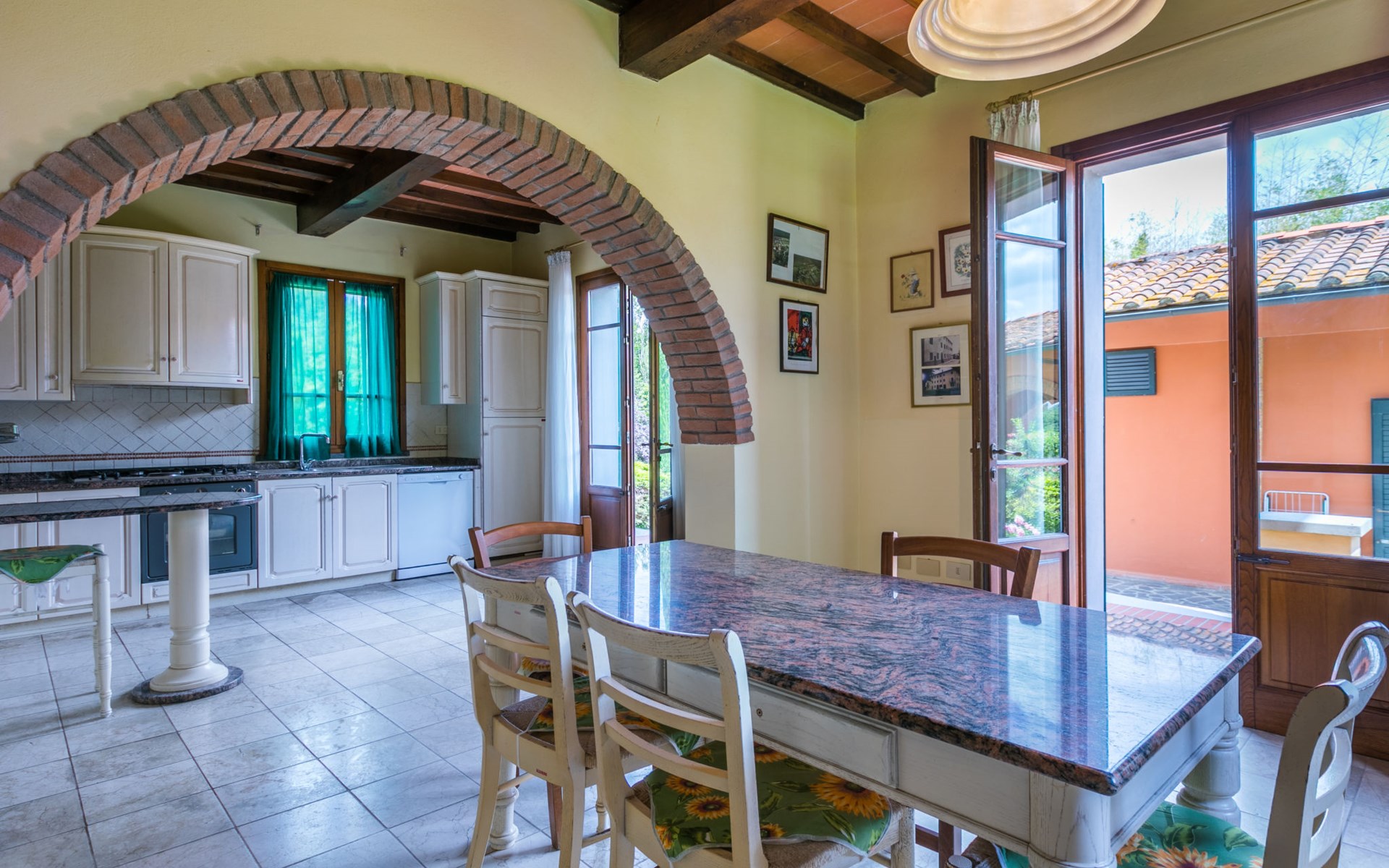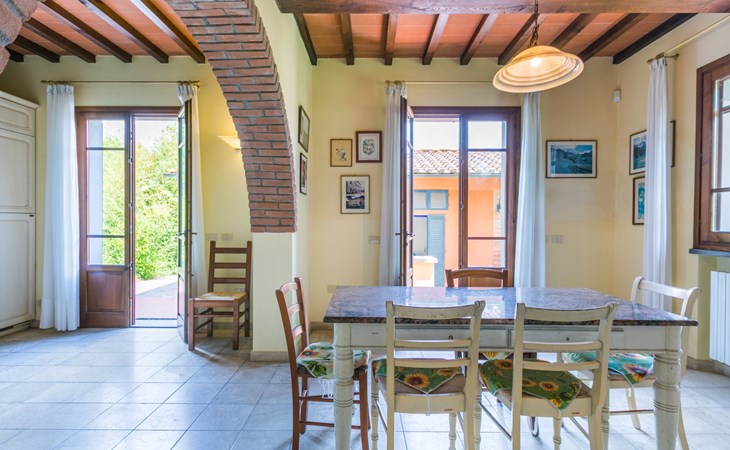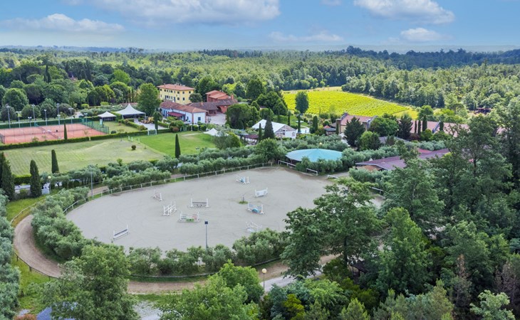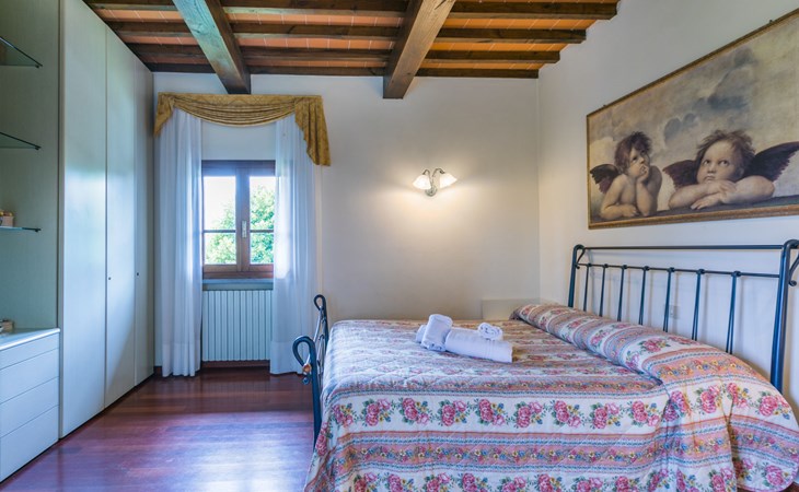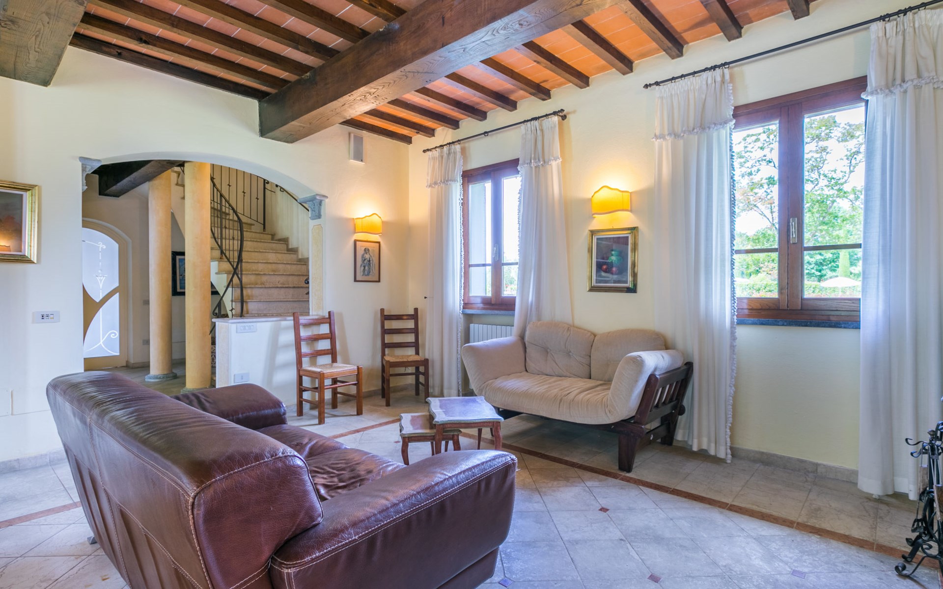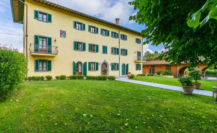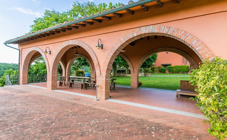 Villa "Elena". 9 km from the centre of Fucecchio, 40 km from the centre of Pisa, 50 km from the centre of Firenze, 52 km from the sea. For shared use: property 40 ha (fenced). Tennis (2 x hard court). Private: garden 1'600 m2 (not fenced), swimming pool (12 x 6 m, depth 150 cm, seasonal availability: 26.Apr. - 03.Oct.). Pool house with WC, garden furniture, barbecue. In the complex: reception, restaurant, breakfast room, in summer, use of sauna is included (1 times per week), in winter, use of sauna is included, lift, heating available only from 01.Nov. - 15.Apr.. Parking on the premises. Shop 9 km, grocery 9 km, supermarket 9 km, bus stop 2.5 km, sandy beach "Viareggio - Forte dei Marmi" 52 km, thermal baths "Montecatini Terme" 20 km. Golf course (18 hole) 21 km, riding stable 100 m. Nearby attractions: Montecarlo 16 km, San Miniato 18 km, Vinci 20 km, Lucca 27 km, San Gimignano 55 km. Please note: suitable for families, suitable for seniors. Suitable for events. Property ref. IT5282.910.1 is situated on the same property. Villa Elena can be booked on request for up to 10 people (ref. IT5282.900.2). Customers can take advantage of riding inside the structure (extra) and sport fishing in the inland lake (included in price).