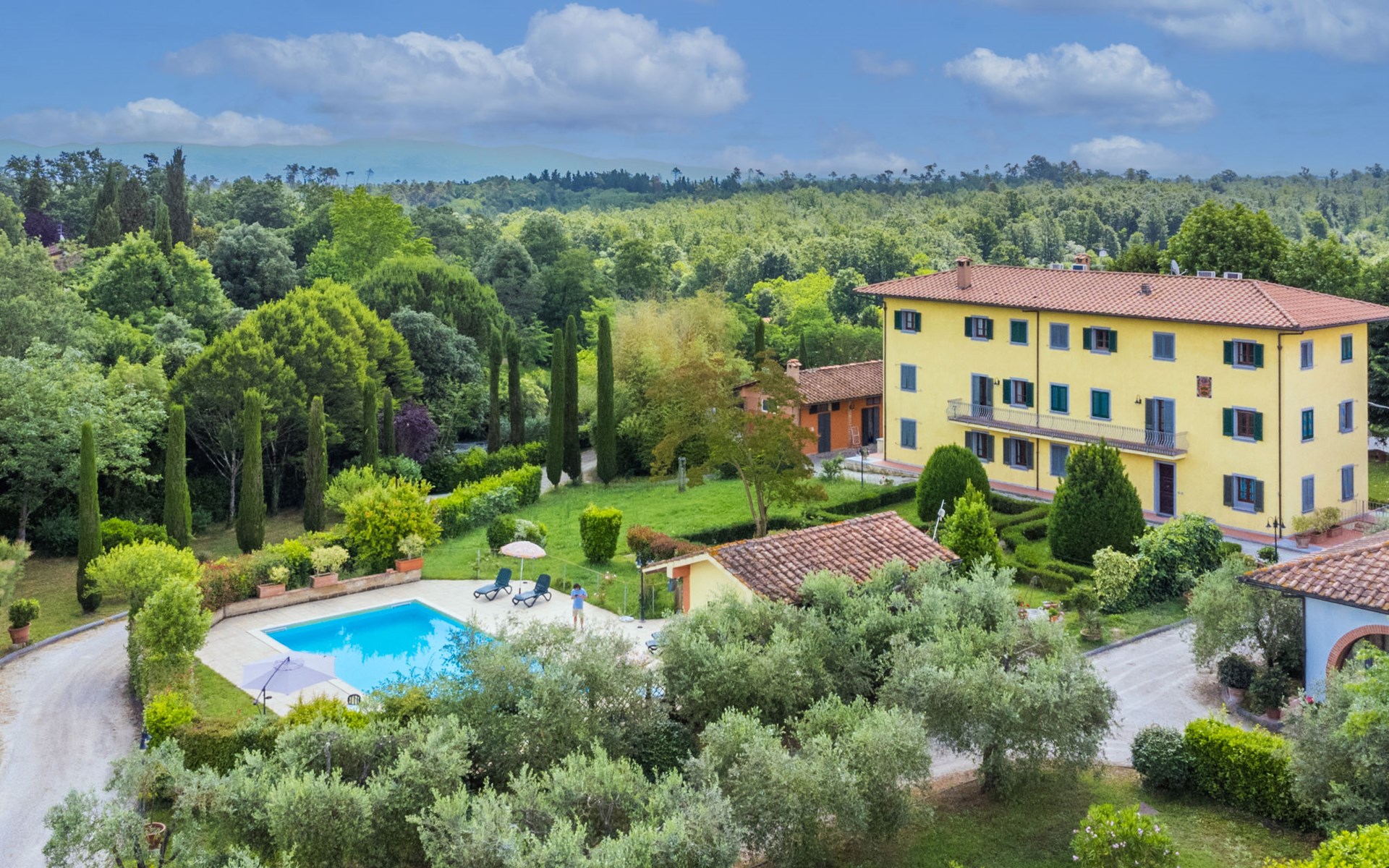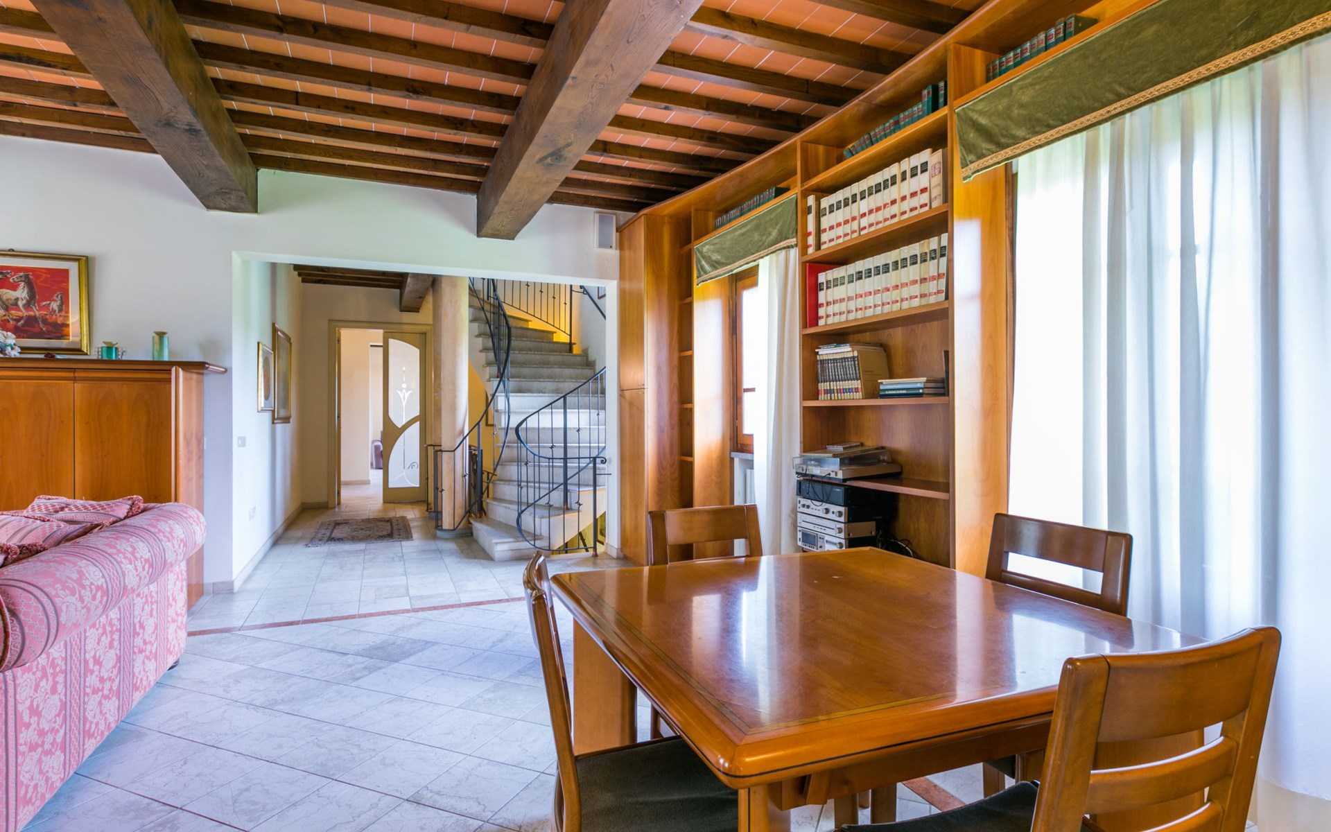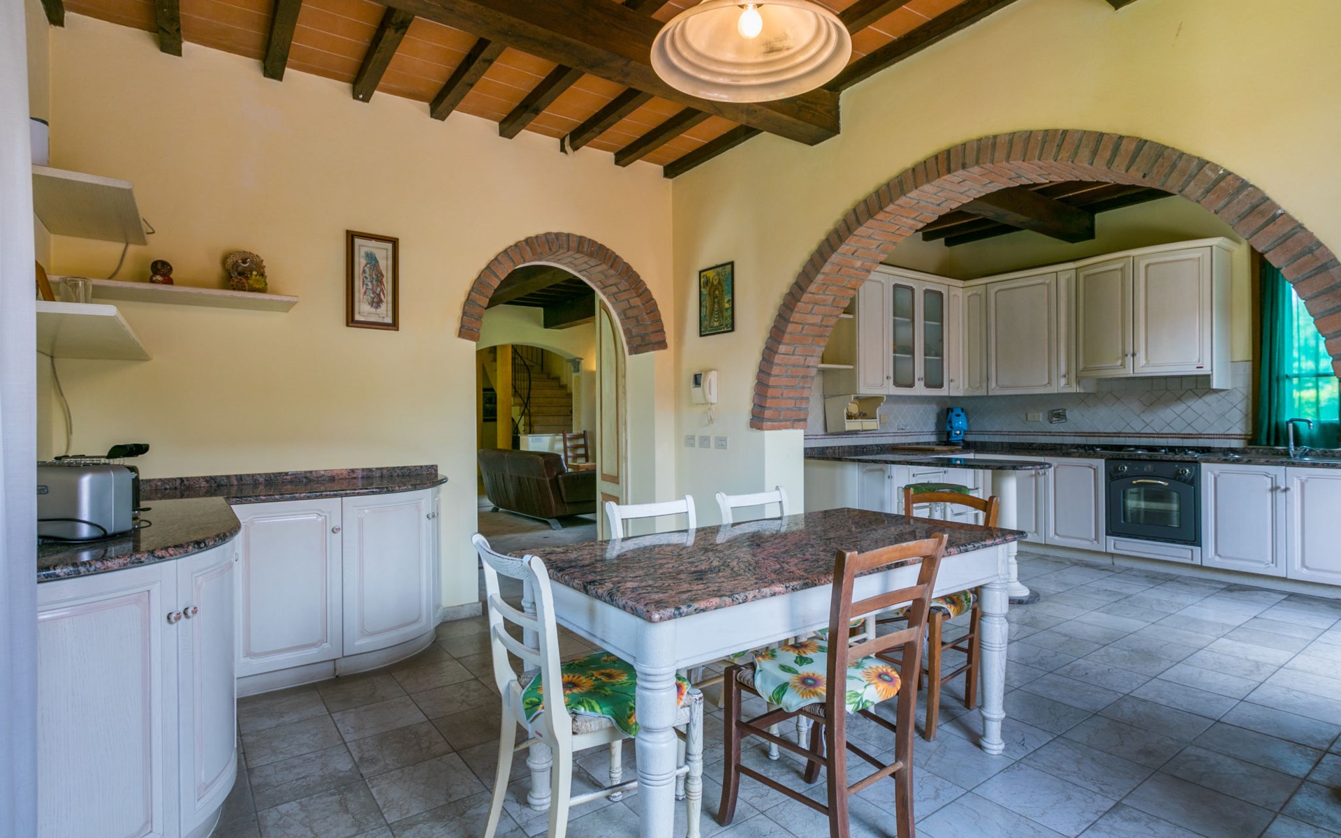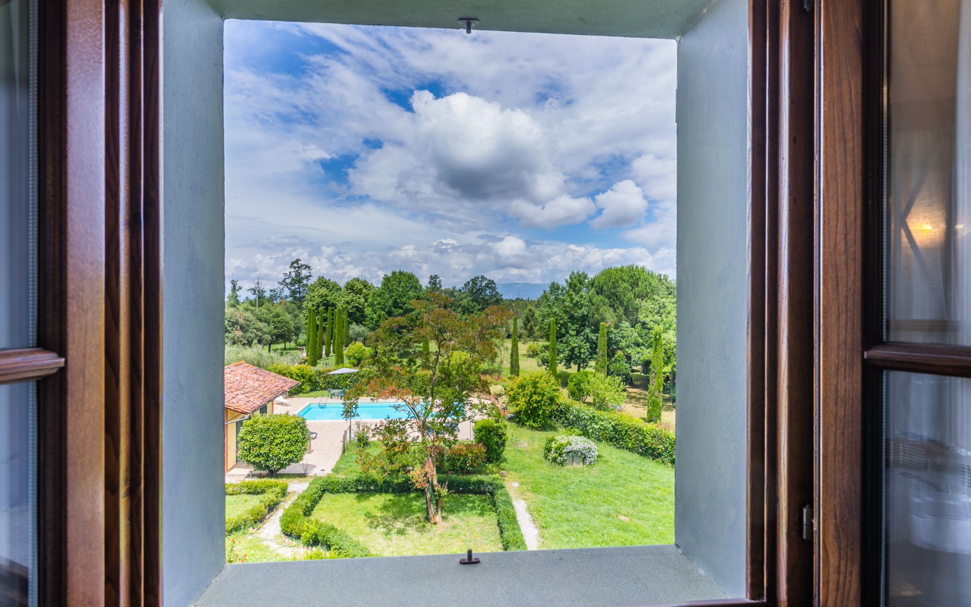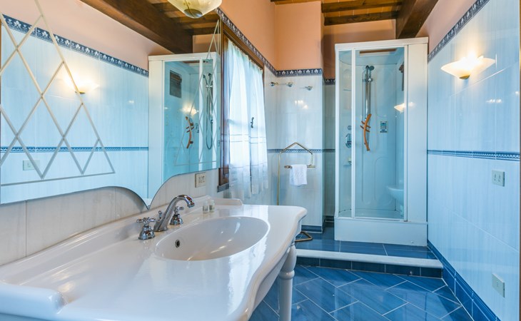 Villa "Elena". 9 km from the centre of Fucecchio, 40 km from the centre of Pisa, 50 km from the centre of Firenze, 52 km from the sea. For shared use: property 40 ha (fenced). Tennis (2 x hard court). Private: garden 1'600 m2 (not fenced), swimming pool (12 x 6 m, depth 150 cm, seasonal availability: 26.Apr. - 03.Oct.). Pool house with WC, garden furniture, barbecue. In the complex: reception, restaurant, breakfast room, in summer, use of sauna is included (1 times per week), in winter, use of sauna is included, lift, heating available only from 01.Nov. - 15.Apr.. Parking on the premises. Shop 9 km, grocery 9 km, supermarket 9 km, bus stop 2.5 km, sandy beach "Viareggio - Forte dei Marmi" 52 km, thermal baths "Montecatini Terme" 20 km. Golf course (18 hole) 21 km, riding stable 100 m. Nearby attractions: Montecarlo 16 km, San Miniato 18 km, Vinci 20 km, Lucca 27 km, San Gimignano 55 km. Please note: suitable for families, suitable for seniors. Suitable for events. Property ref. IT5282.910.1 is situated on the same property. Villa Elena can be booked on request for up to 10 people (ref. IT5282.900.2). Customers can take advantage of riding inside the structure (extra) and sport fishing in the inland lake (included in price).