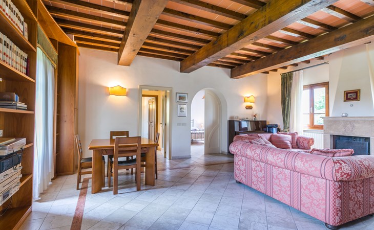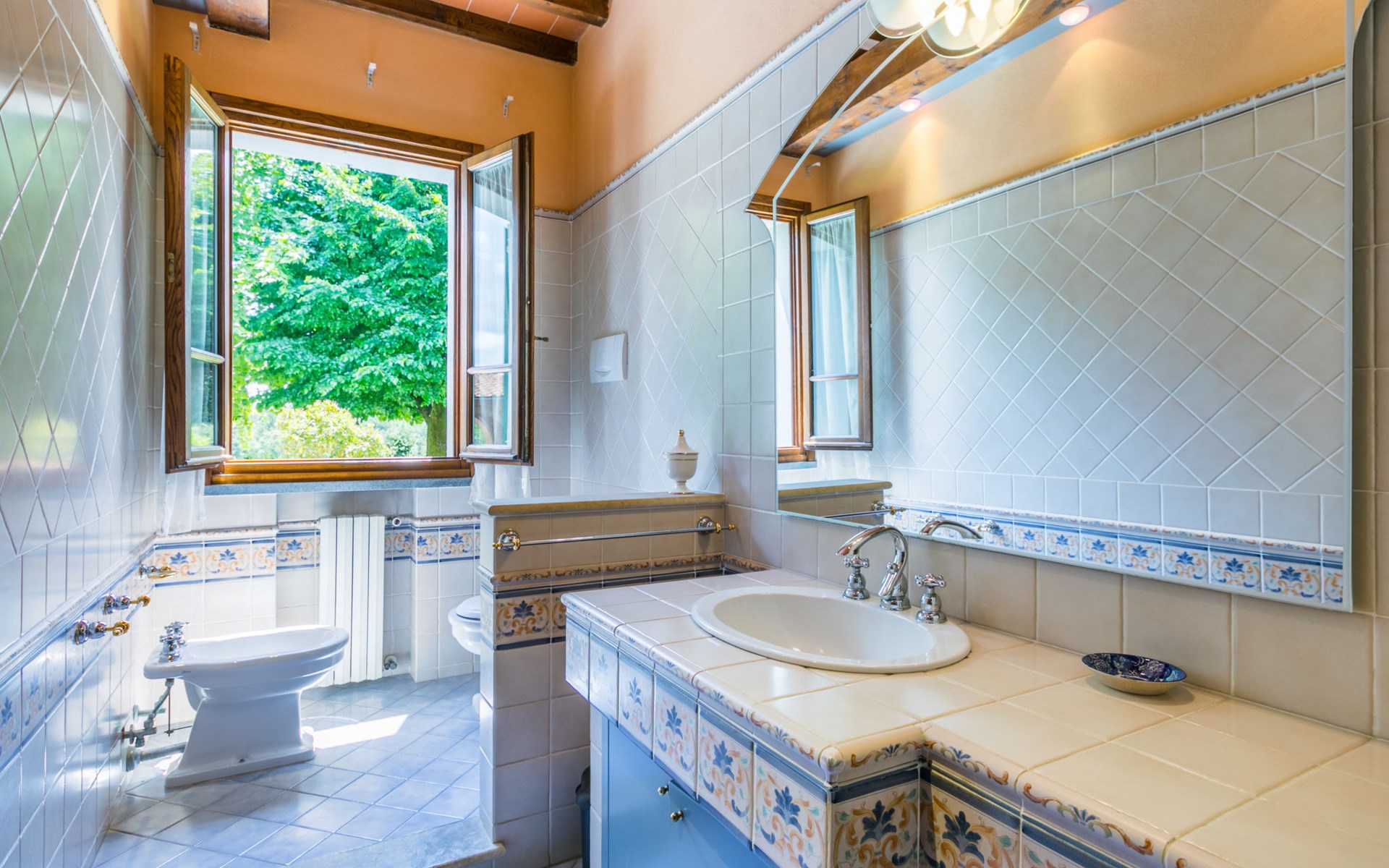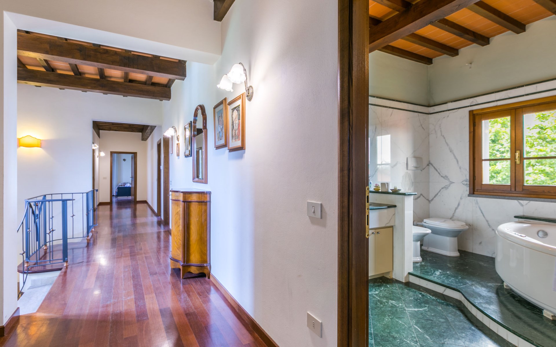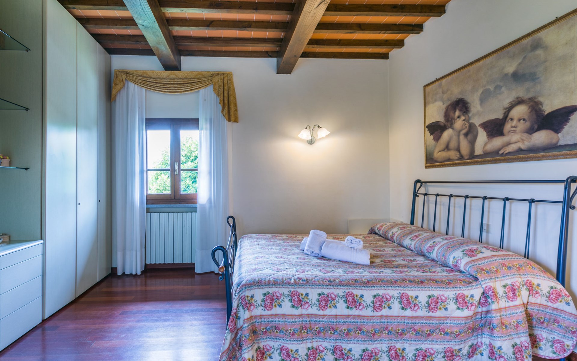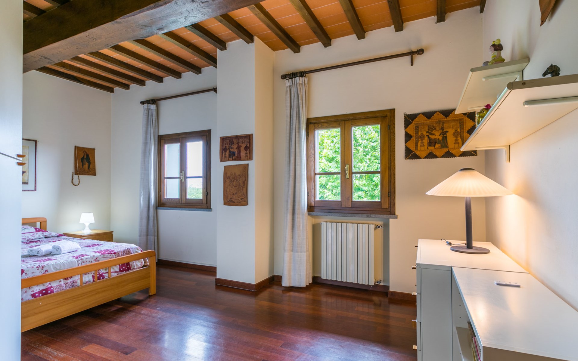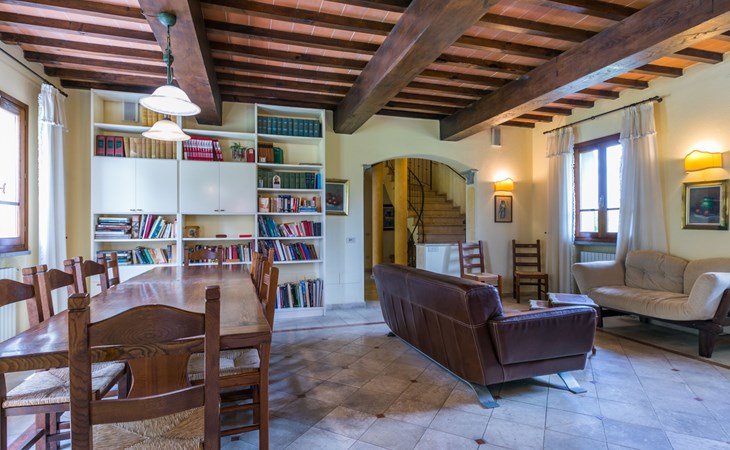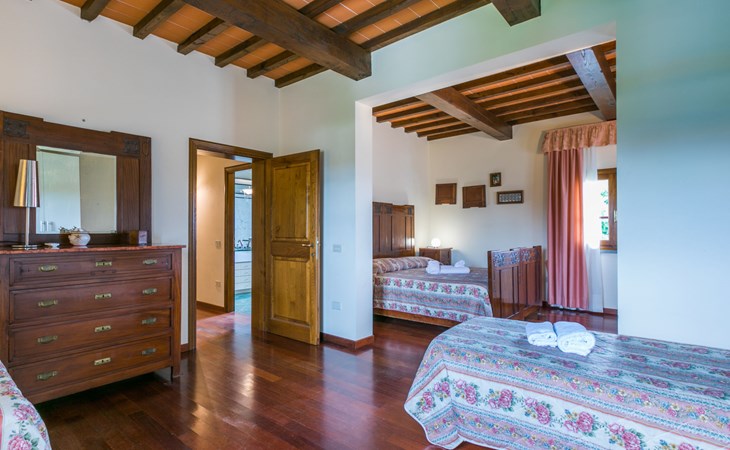 Villa "Elena". 9 km from the centre of Fucecchio, 40 km from the centre of Pisa, 50 km from the centre of Firenze, 52 km from the sea. For shared use: property 40 ha (fenced). Tennis (2 x hard court). Private: garden 1'600 m2 (not fenced), swimming pool (12 x 6 m, depth 150 cm, seasonal availability: 26.Apr. - 03.Oct.). Pool house with WC, garden furniture, barbecue. In the complex: reception, restaurant, breakfast room, in summer, use of sauna is included (1 times per week), in winter, use of sauna is included, lift, heating available only from 01.Nov. - 15.Apr.. Parking on the premises. Shop 9 km, grocery 9 km, supermarket 9 km, bus stop 2.5 km, sandy beach "Viareggio - Forte dei Marmi" 52 km, thermal baths "Montecatini Terme" 20 km. Golf course (18 hole) 21 km, riding stable 100 m. Nearby attractions: Montecarlo 16 km, San Miniato 18 km, Vinci 20 km, Lucca 27 km, San Gimignano 55 km. Please note: suitable for families, suitable for seniors. Suitable for events. Property ref. IT5282.910.1 is situated on the same property. Villa Elena can be booked on request for up to 10 people (ref. IT5282.900.2). Customers can take advantage of riding inside the structure (extra) and sport fishing in the inland lake (included in price).