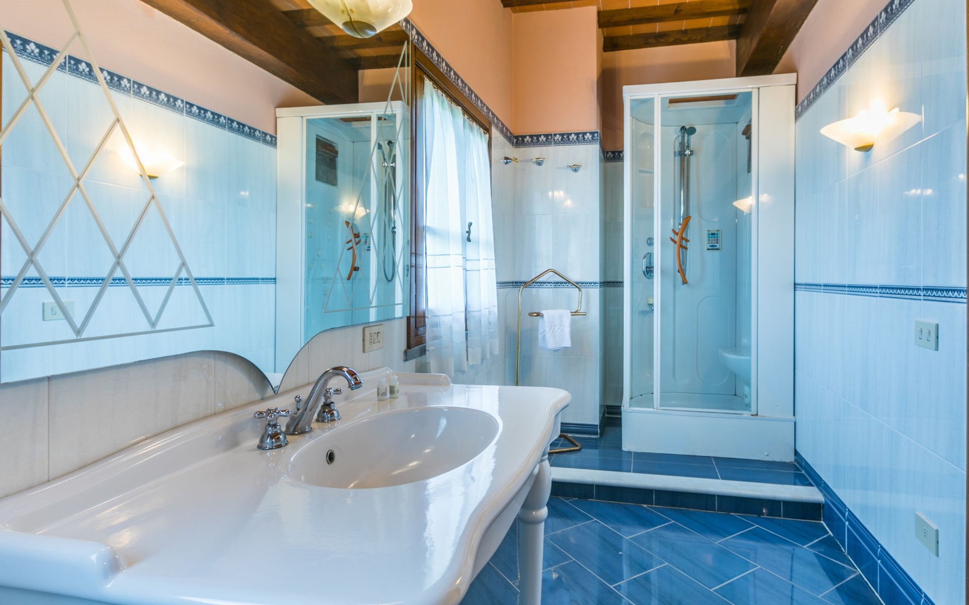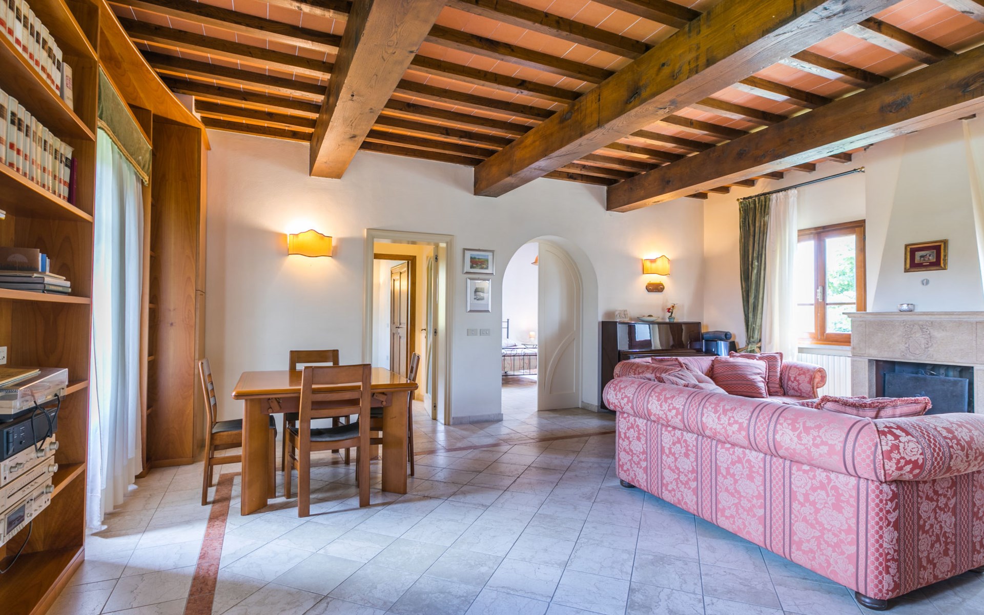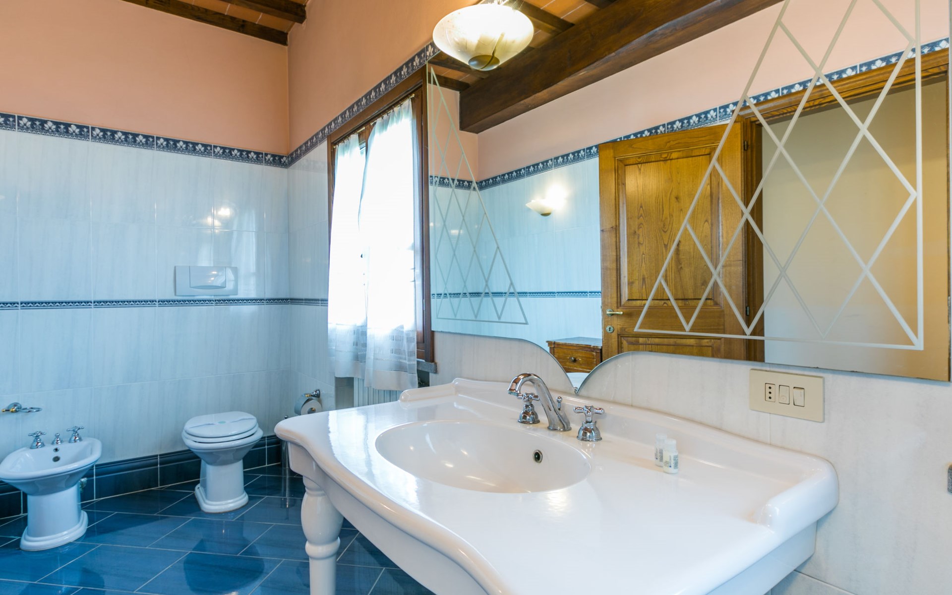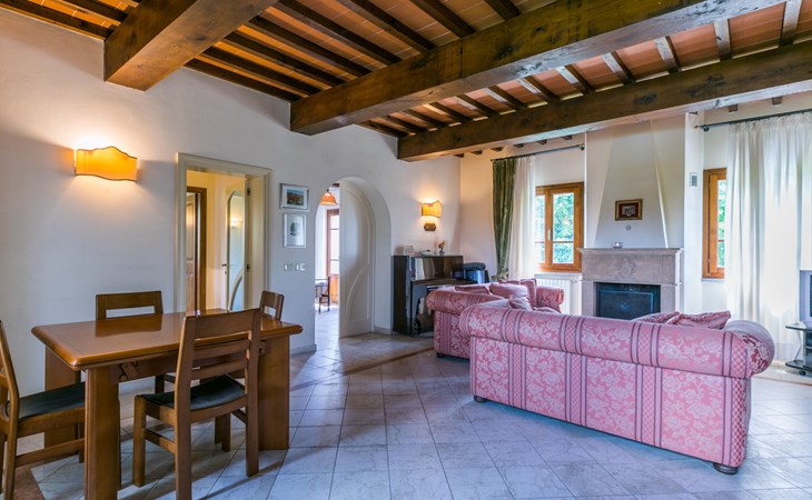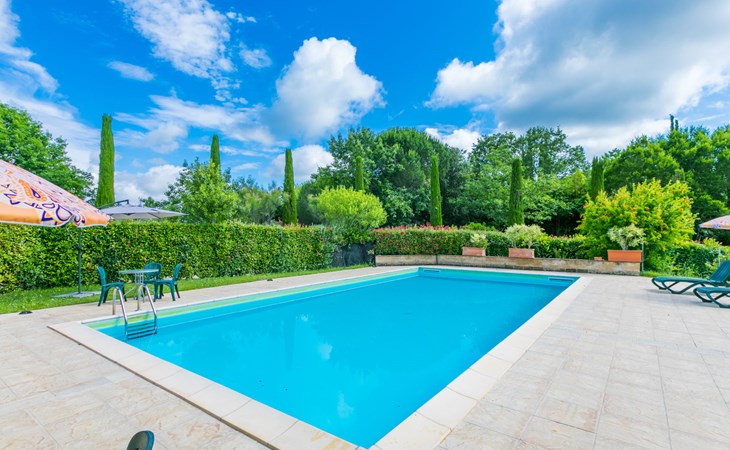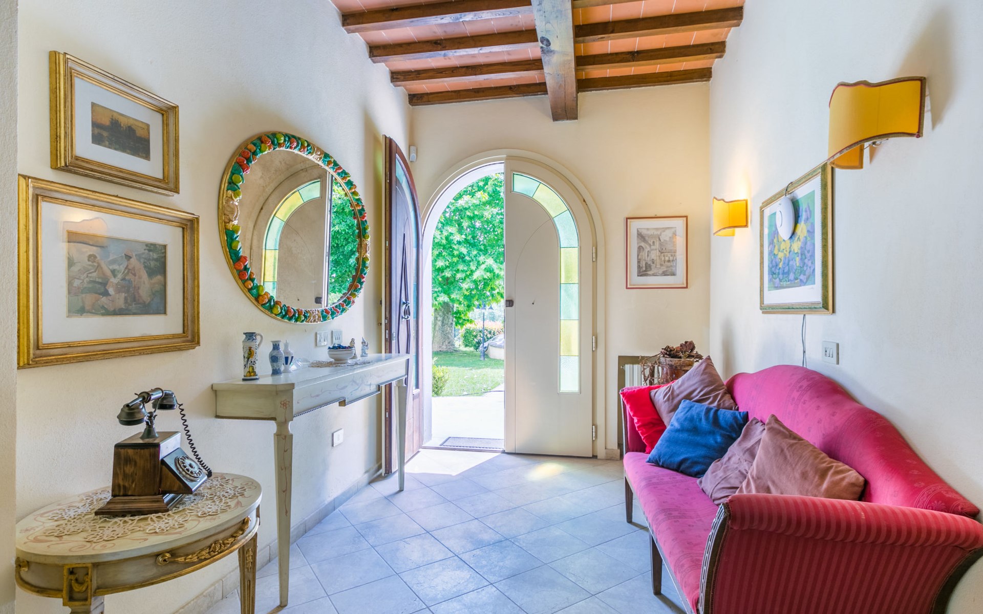 Villa "Elena". 9 km from the centre of Fucecchio, 40 km from the centre of Pisa, 50 km from the centre of Firenze, 52 km from the sea. For shared use: property 40 ha (fenced). Tennis (2 x hard court). Private: garden 1'600 m2 (not fenced), swimming pool (12 x 6 m, depth 150 cm, seasonal availability: 26.Apr. - 03.Oct.). Pool house with WC, garden furniture, barbecue. In the complex: reception, restaurant, breakfast room, in summer, use of sauna is included (1 times per week), in winter, use of sauna is included, lift, heating available only from 01.Nov. - 15.Apr.. Parking on the premises. Shop 9 km, grocery 9 km, supermarket 9 km, bus stop 2.5 km, sandy beach "Viareggio - Forte dei Marmi" 52 km, thermal baths "Montecatini Terme" 20 km. Golf course (18 hole) 21 km, riding stable 100 m. Nearby attractions: Montecarlo 16 km, San Miniato 18 km, Vinci 20 km, Lucca 27 km, San Gimignano 55 km. Please note: suitable for families, suitable for seniors. Suitable for events. Property ref. IT5282.910.1 is situated on the same property. Villa Elena can be booked on request for up to 10 people (ref. IT5282.900.2). Customers can take advantage of riding inside the structure (extra) and sport fishing in the inland lake (included in price).