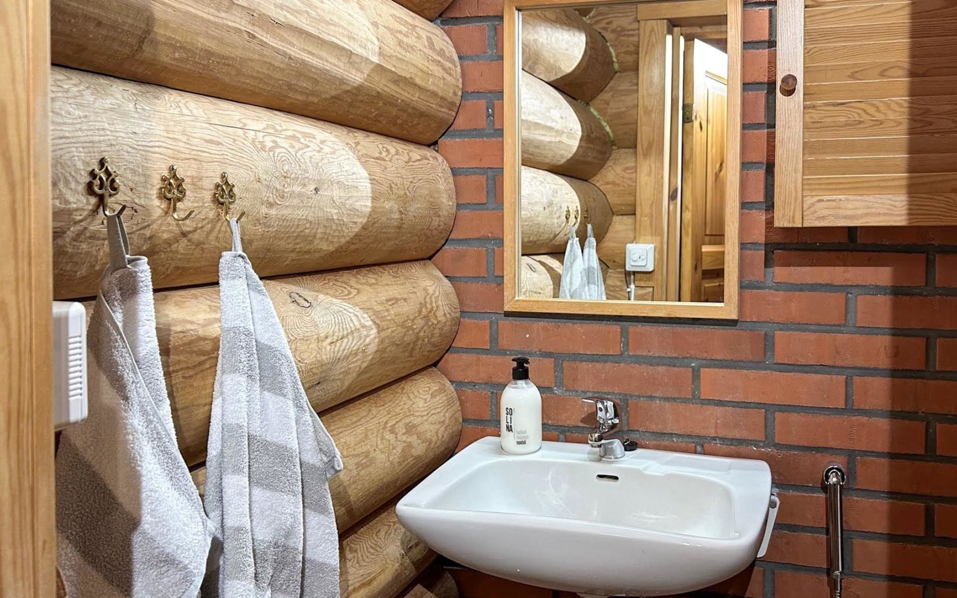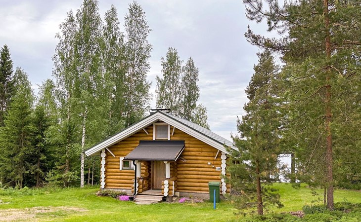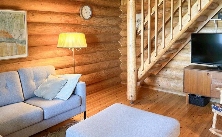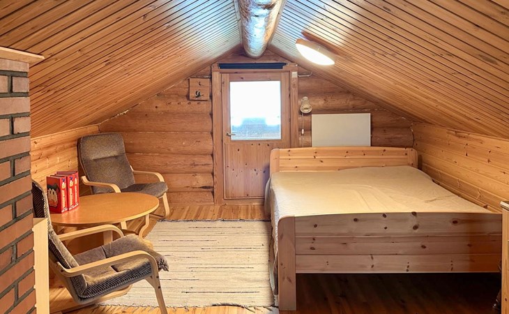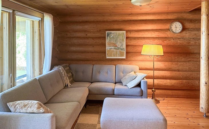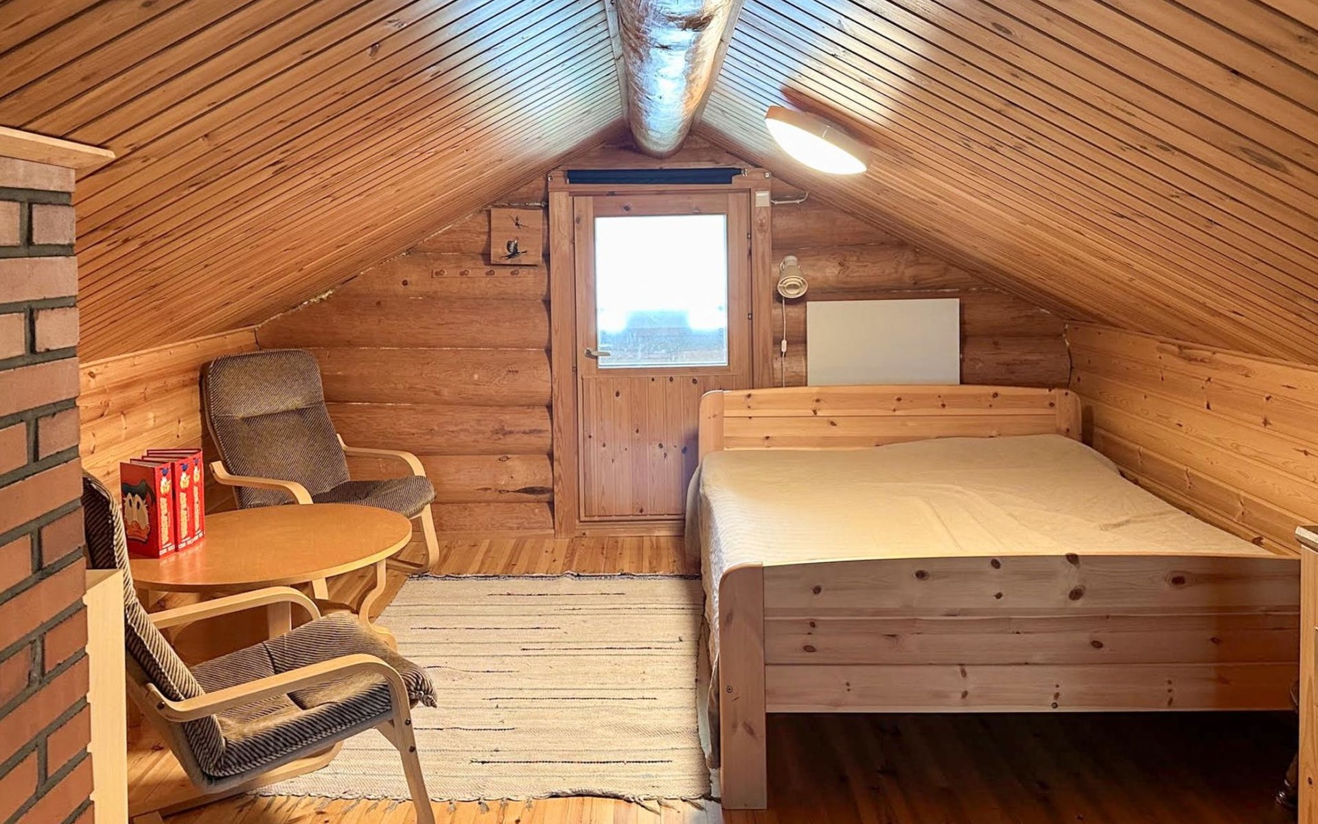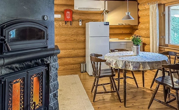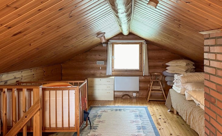 In the villa, a living room kitchen with an atmospheric cozy fireplace, 2 bedrooms; a double bed in the downstairs bedroom, two single beds and a double bed upstairs, and in addition a sofa bed in the living room, which is suitable for e.g. for two children, so there are sleeping places for up to eight. In connection with the villa, comfort is provided by a wood-heated sauna, a washroom with a shower cabin, a separate toilet, an entrance hall and a spacious balcony. Air heat pump with heating and cooling functions.