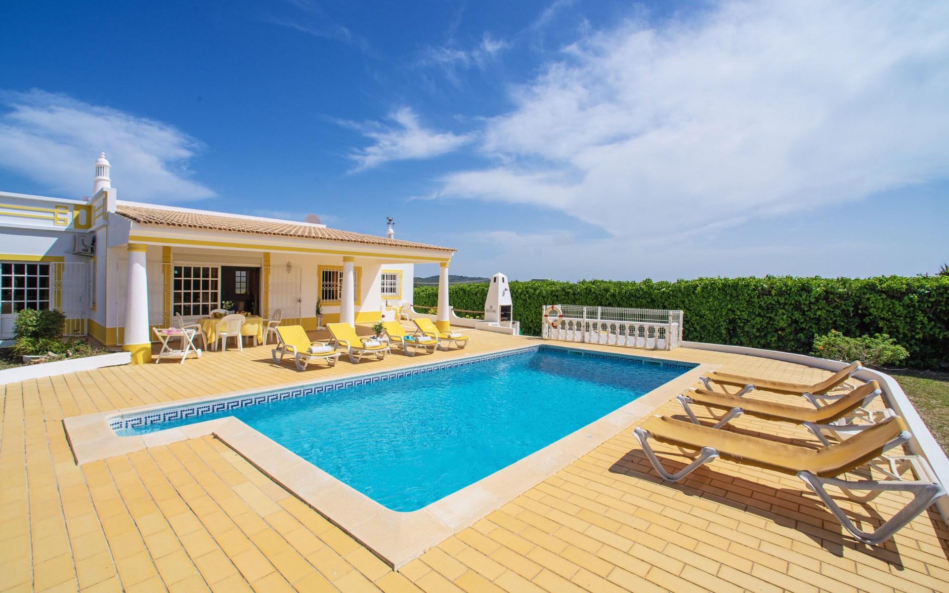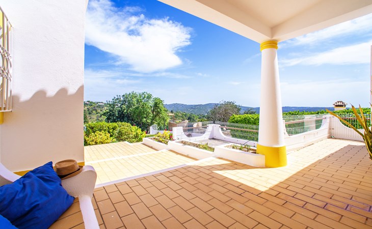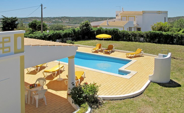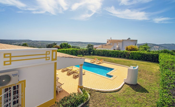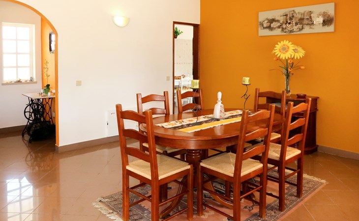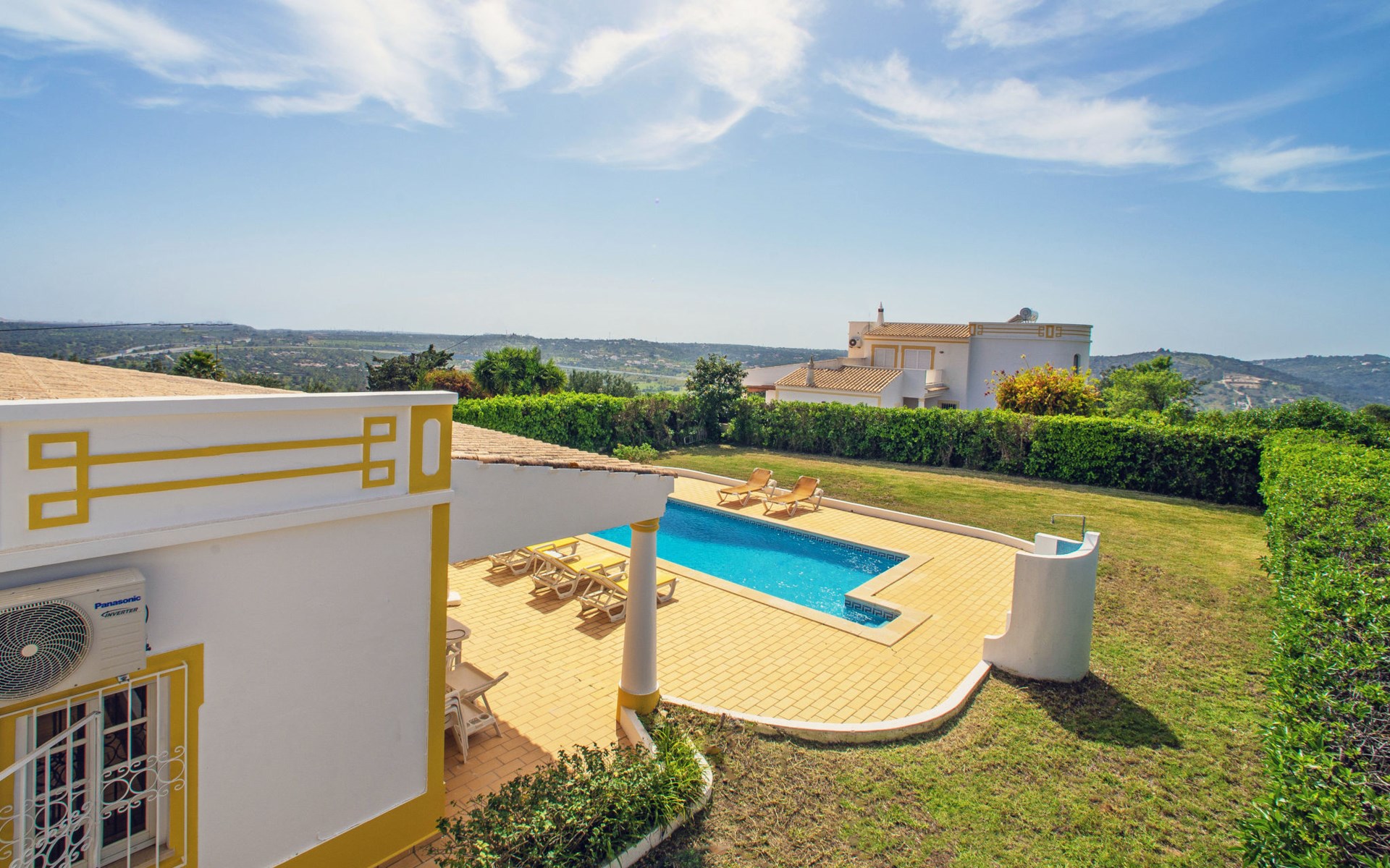House "Da Bela Vista". In the district of Moinho do Leitão 2.2 km from the centre of Paderne, 15 km from the sea. Private: property 800 m2 (fenced), terraced garden with lawn, swimming pool (7 x 3 m, depth 90 - 180 cm, seasonal availability: 01.Jan. - 31.Dec.). Outdoor shower. In the house: roof terrace. 250 m long narrow motor access. Parking on the premises. Shop 1.5 km, supermarket 2.2 km, restaurant 1.2 km, bus stop 1 km, railway station "Tunes" 9.5 km, sandy beach "Albufeira" 15 km. Marina 16.5 km. Nearby attractions: Krazy World 14.5 km, Moinho do Leitão 150 m.