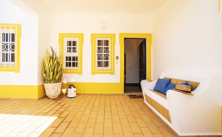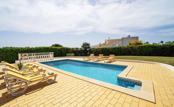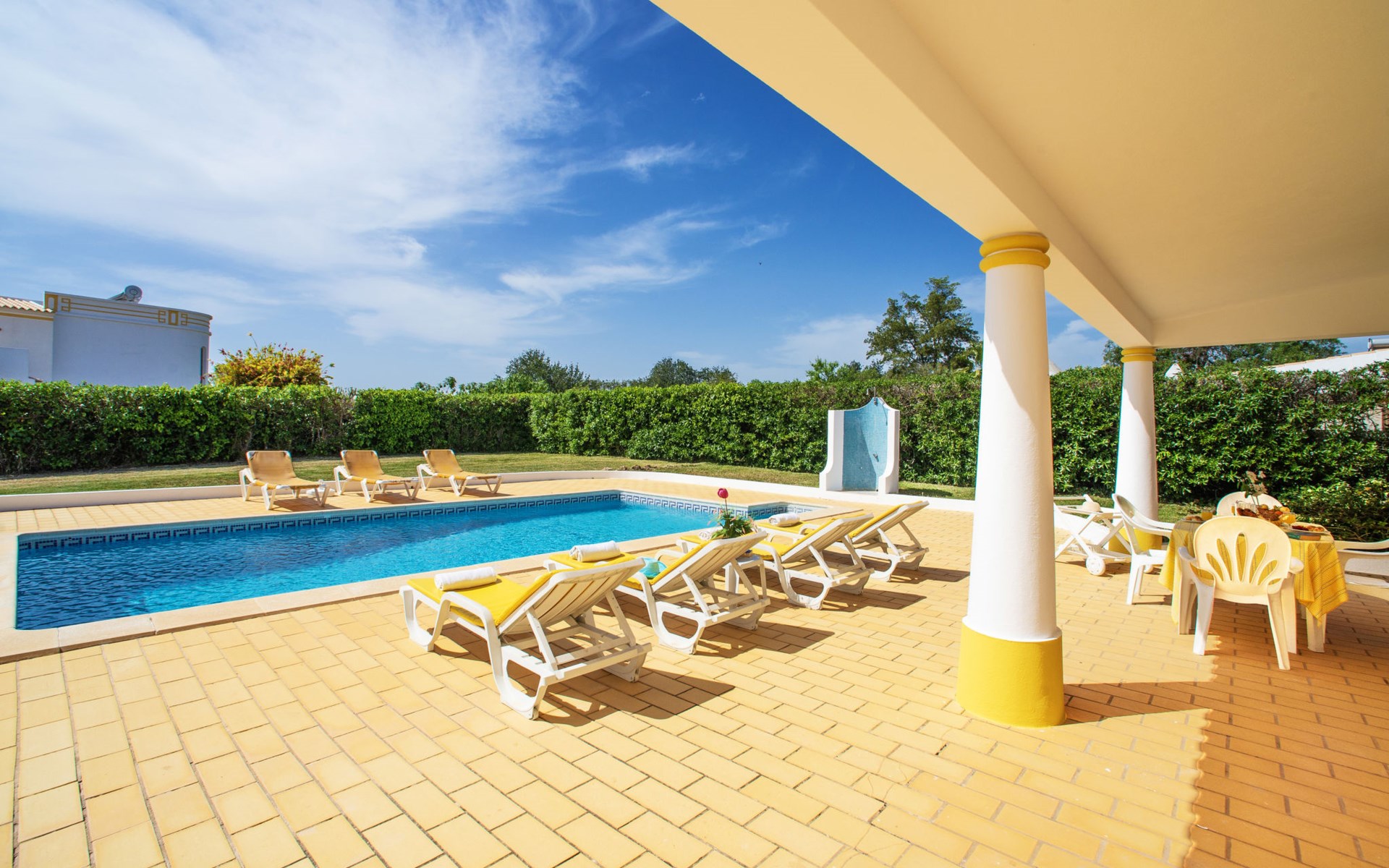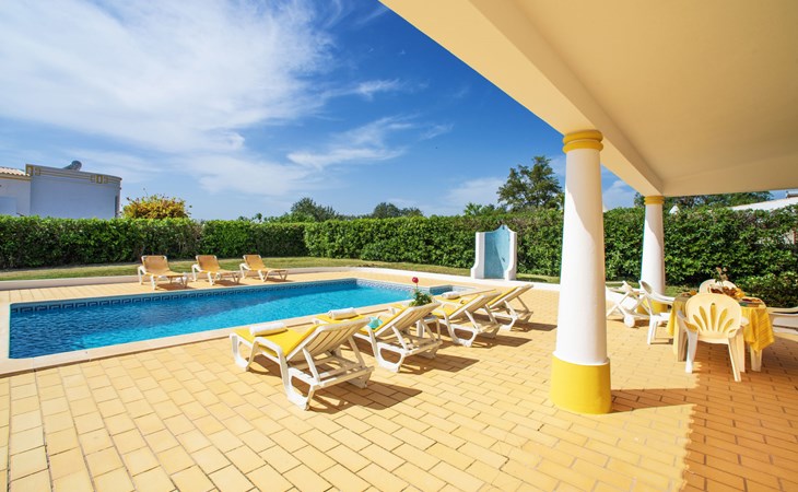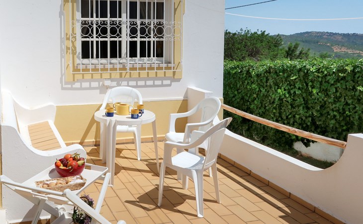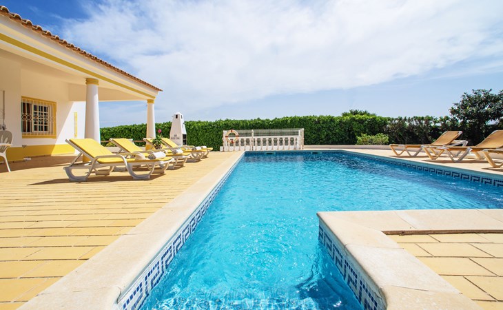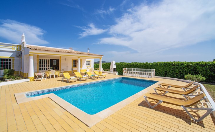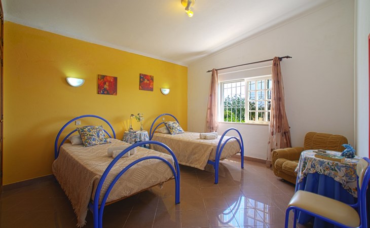 House "Da Bela Vista". In the district of Moinho do Leitão 2.2 km from the centre of Paderne, 15 km from the sea. Private: property 800 m2 (fenced), terraced garden with lawn, swimming pool (7 x 3 m, depth 90 - 180 cm, seasonal availability: 01.Jan. - 31.Dec.). Outdoor shower. In the house: roof terrace. 250 m long narrow motor access. Parking on the premises. Shop 1.5 km, supermarket 2.2 km, restaurant 1.2 km, bus stop 1 km, railway station "Tunes" 9.5 km, sandy beach "Albufeira" 15 km. Marina 16.5 km. Nearby attractions: Krazy World 14.5 km, Moinho do Leitão 150 m.