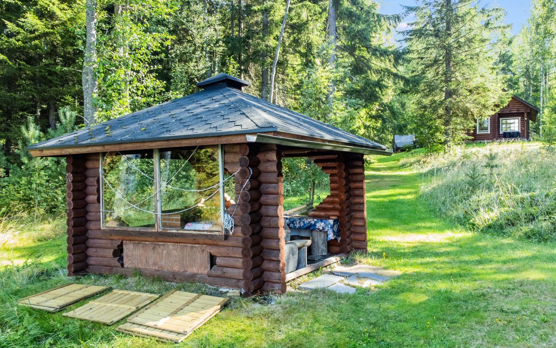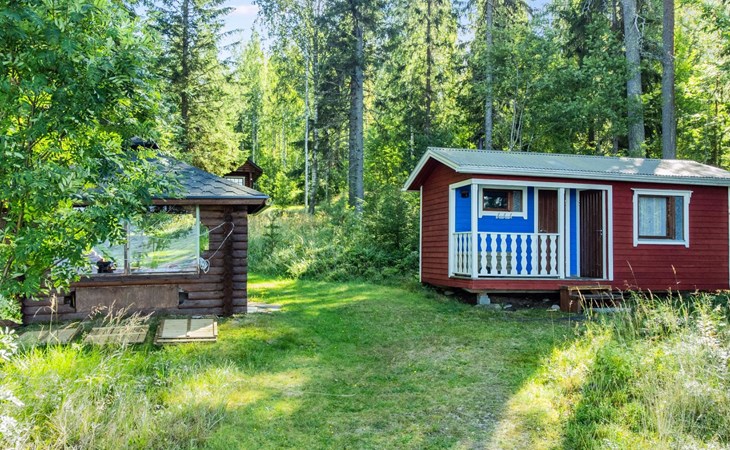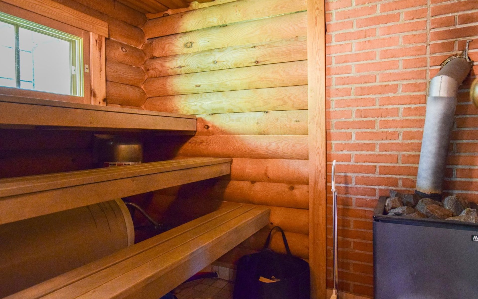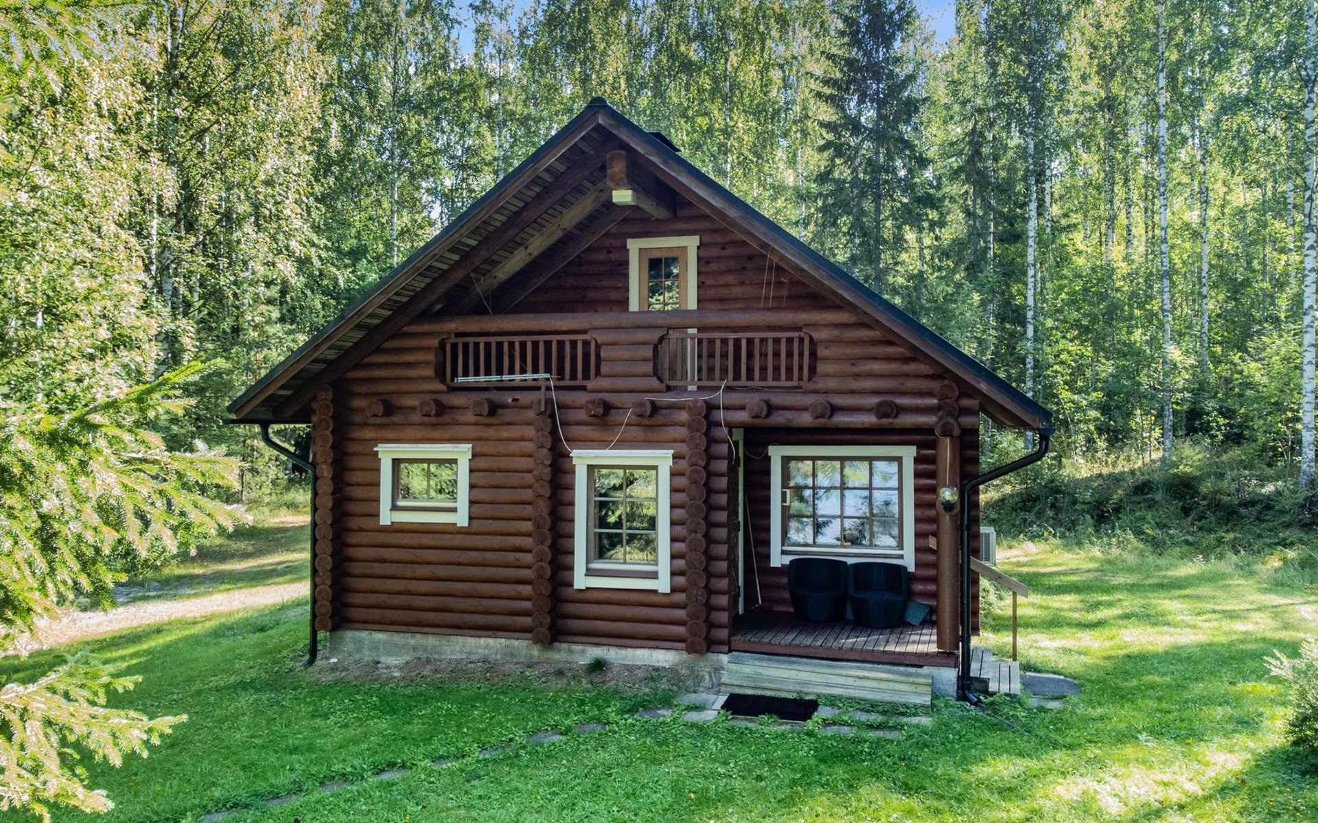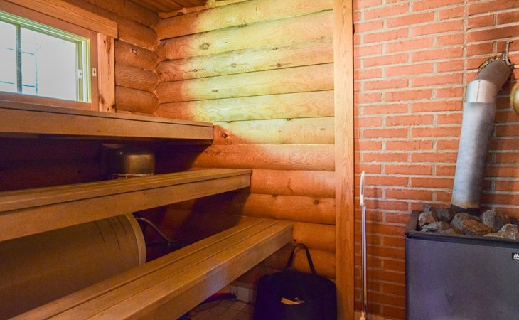 Roundlog building 1997, living room/kitchen, bedroom 2 beds, sleeping loft 2 beds and 1 extra bed plus balcony, washroom, sauna, open porch. Living room/kitchen has convertible sofa/bed as optional bed. Cottage has heating pump/inverter air conditioning system, wood-burning stove/kitchen range, underfloor heating in washroom. Lakeshore sauna with dressing room and attached room with 2 summer beds.