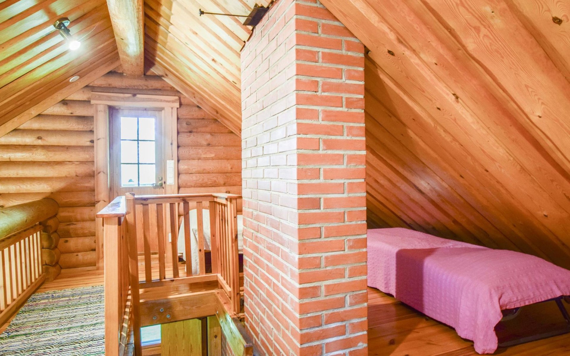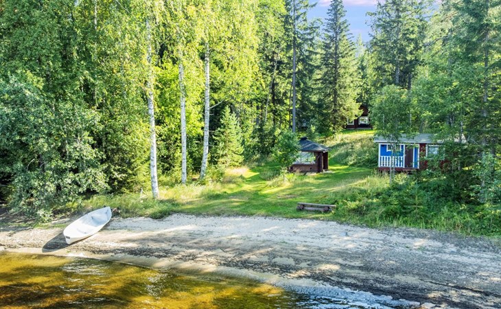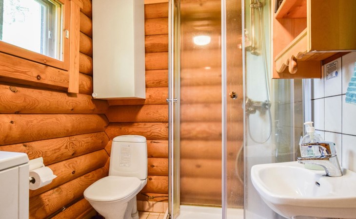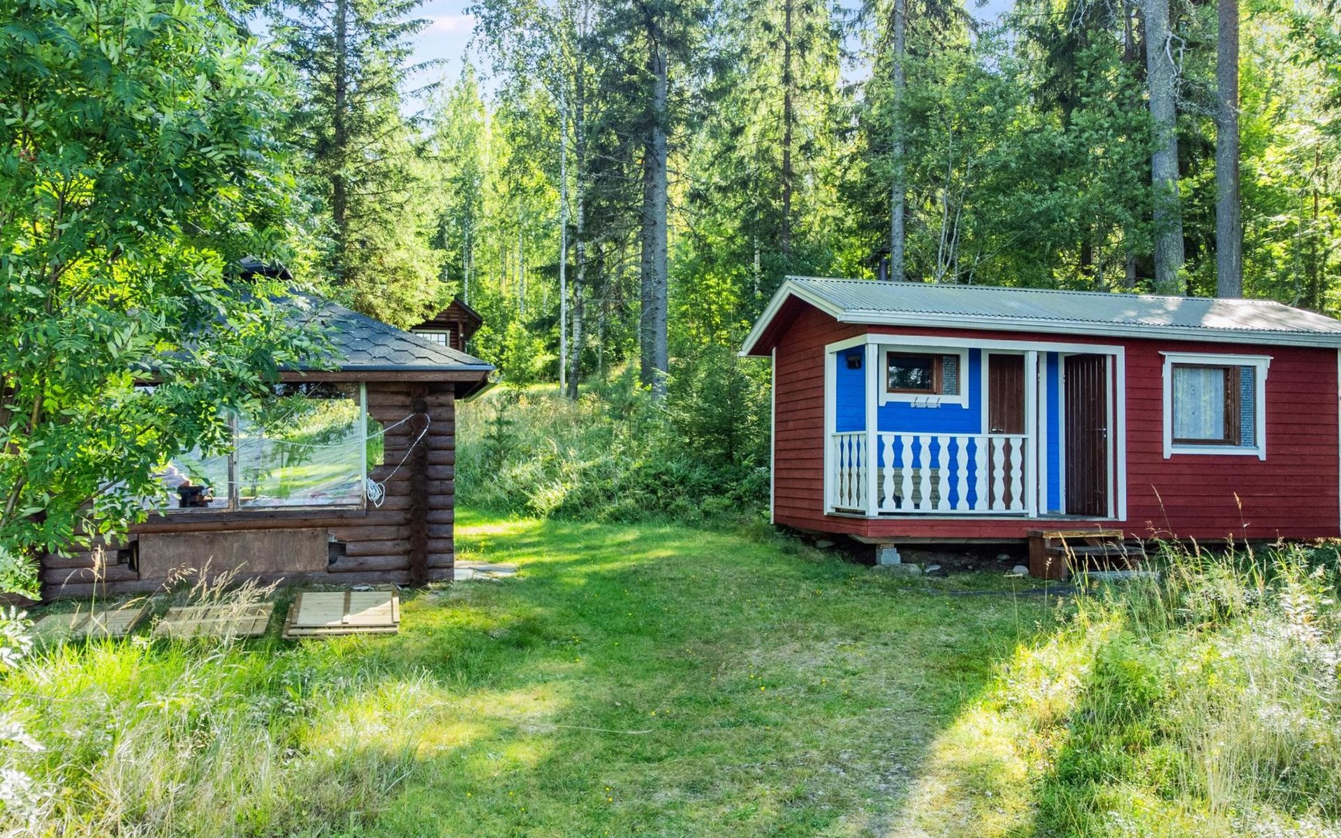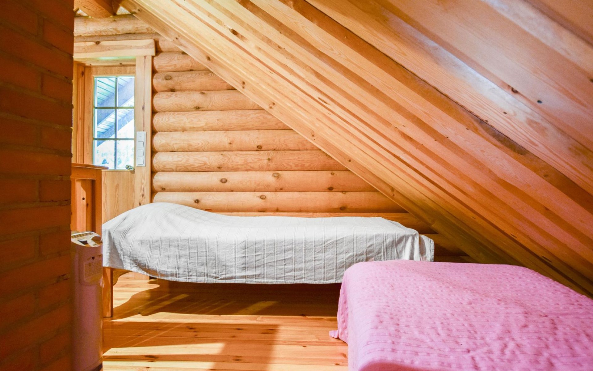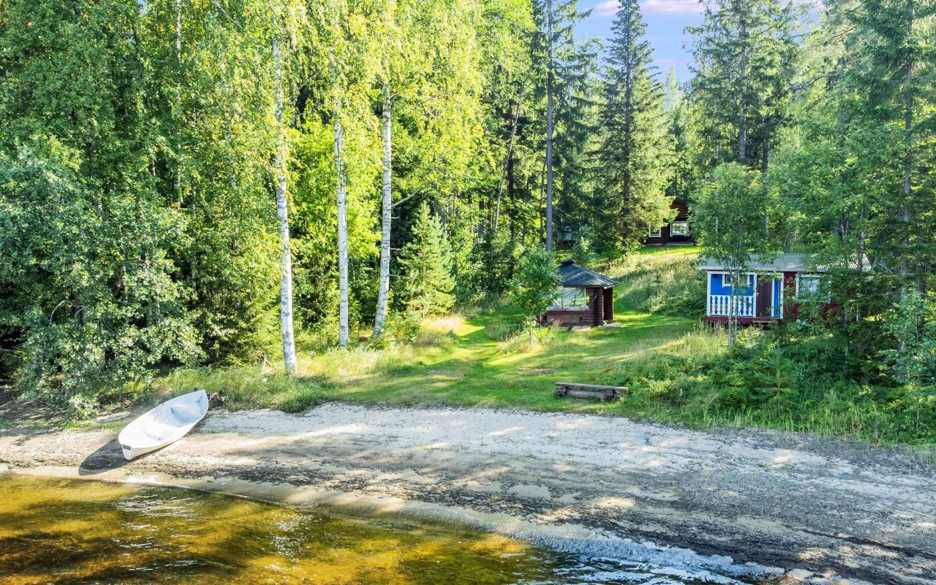 Roundlog building 1997, living room/kitchen, bedroom 2 beds, sleeping loft 2 beds and 1 extra bed plus balcony, washroom, sauna, open porch. Living room/kitchen has convertible sofa/bed as optional bed. Cottage has heating pump/inverter air conditioning system, wood-burning stove/kitchen range, underfloor heating in washroom. Lakeshore sauna with dressing room and attached room with 2 summer beds.