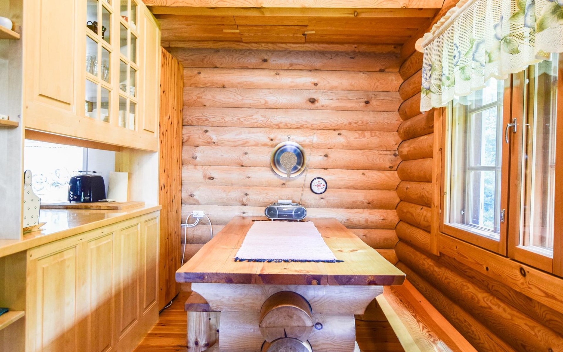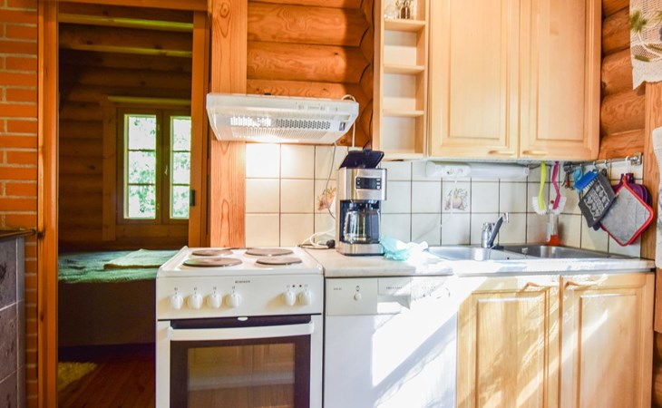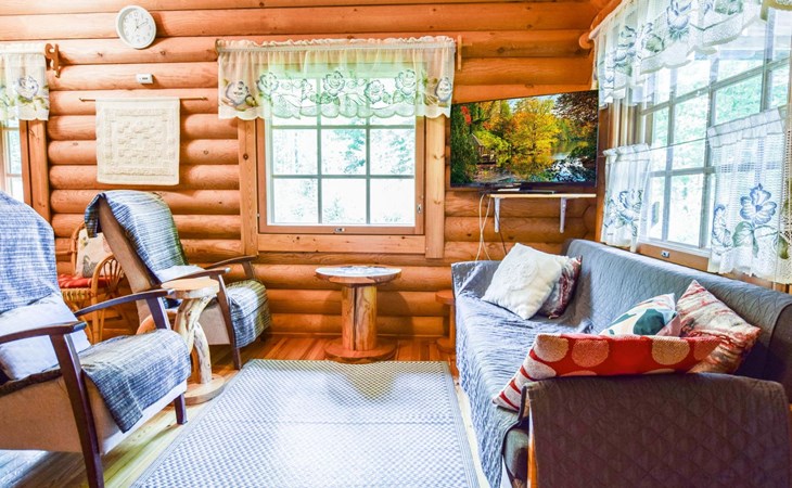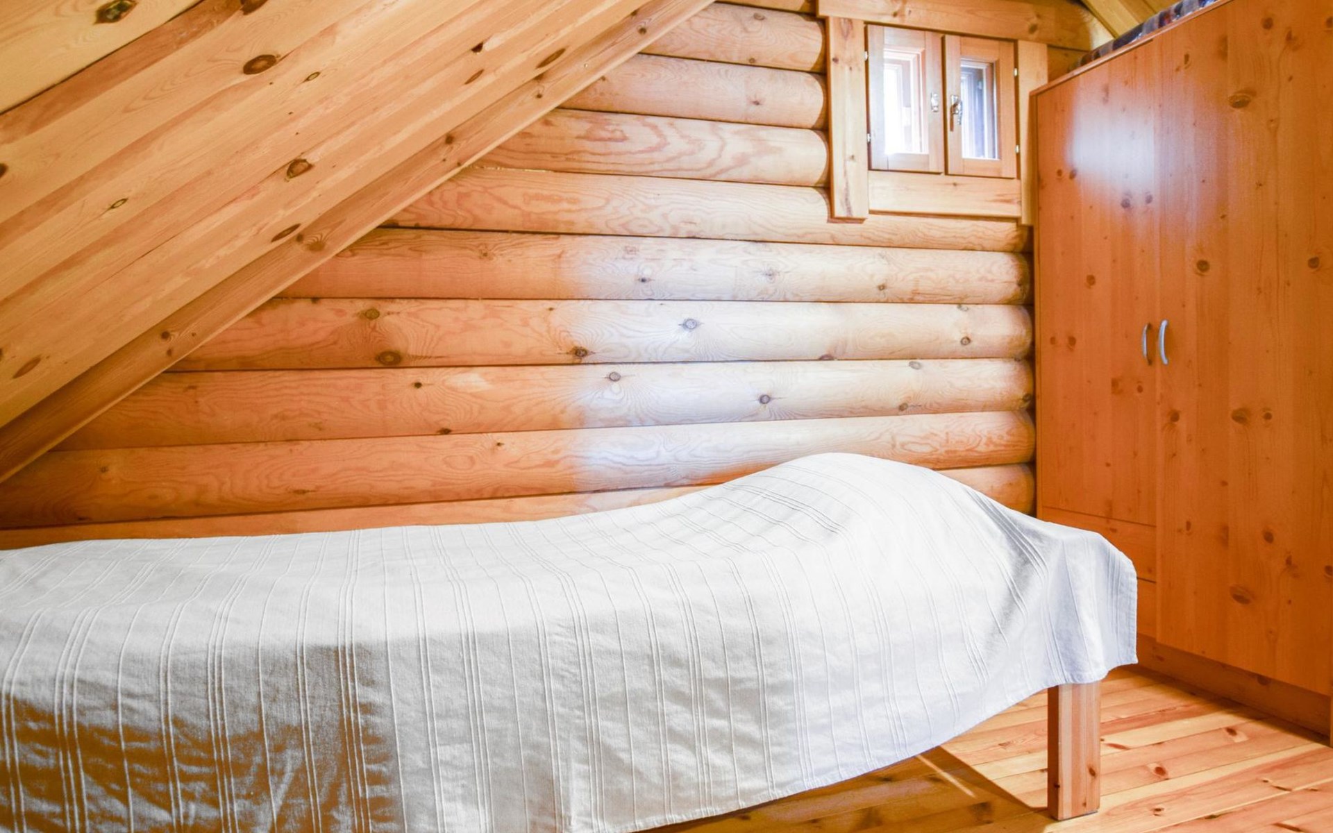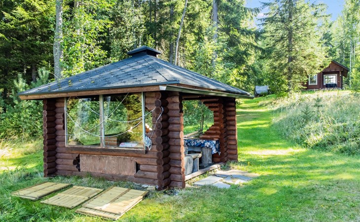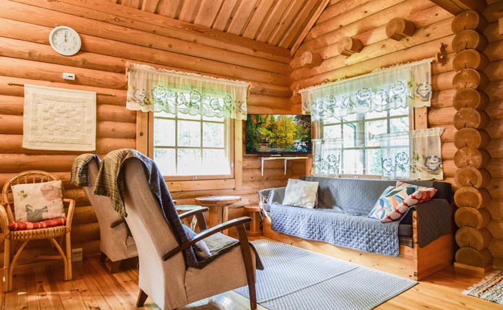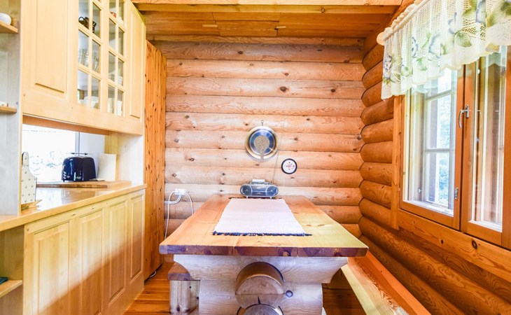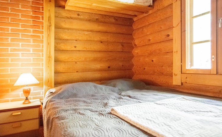 Roundlog building 1997, living room/kitchen, bedroom 2 beds, sleeping loft 2 beds and 1 extra bed plus balcony, washroom, sauna, open porch. Living room/kitchen has convertible sofa/bed as optional bed. Cottage has heating pump/inverter air conditioning system, wood-burning stove/kitchen range, underfloor heating in washroom. Lakeshore sauna with dressing room and attached room with 2 summer beds.